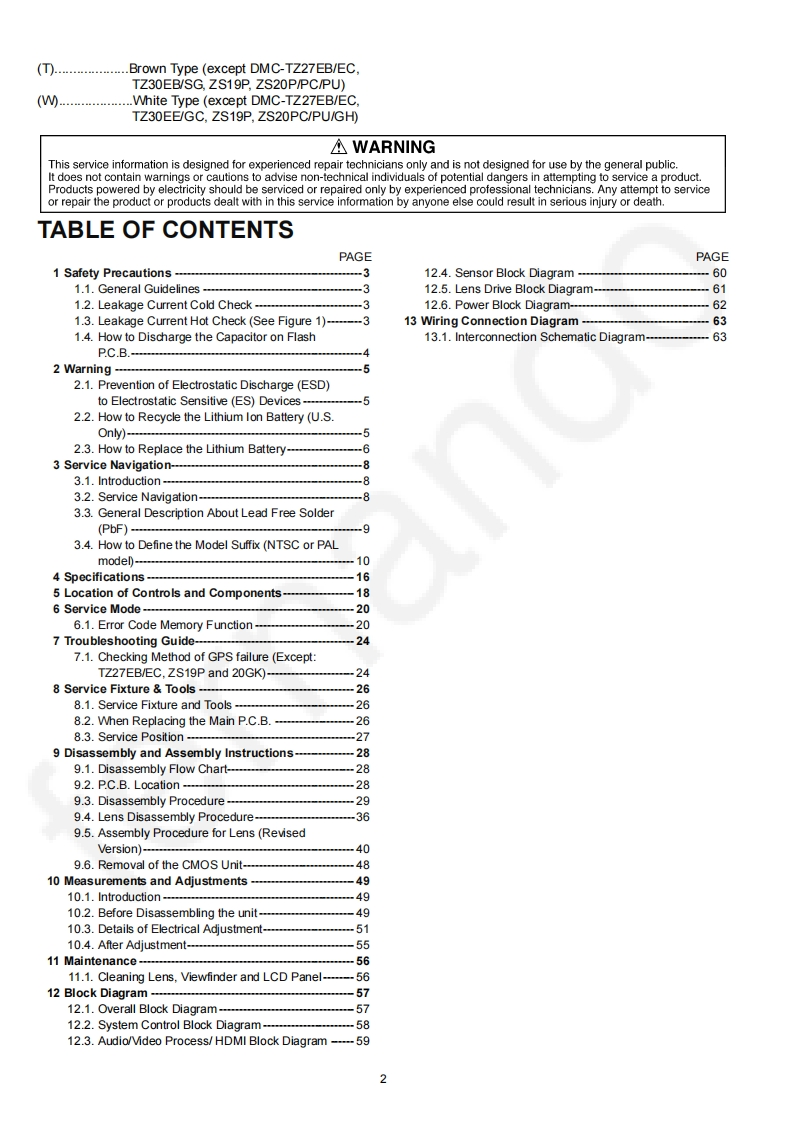 ORDER NO.DSC1203009CEB26Service ManuaDigital CameraModel No.DMC-TZ27EBLUMIX☒DH▣mIDMC-TZ27ECAVCHDTODOLBYProgressiveSTEREDCREATOSVIErA LinkDMC-TZ30EBDMC-TZ30EEDMC-TZ30EFDMC-TZ30EGDMC-TZ30EPDMC-TZ30GADMC-TZ30GCDMC-TZ30GNDMC-TZ30SGDMC-TZ31EGDMC-ZS19PDMC-ZS20PDMC-ZS20PCDMC-ZS20PUDMC-ZS20GHDMC-ZS20GKDMC-ZS20GTColours(S).…Silver Type(except DMC-TZ27EB/EC,TZ30EE/EF/GN/SG,ZS19P,ZS20GT)(K)Black Type(R)....................Red Type (except DMC-TZ27EB/EC.TZ30EP.ZS19P.ZS20GH/GK/GT)Panasonic Corporation 2012.PanasonicUnauthorized copying and distributionis a violationof law.