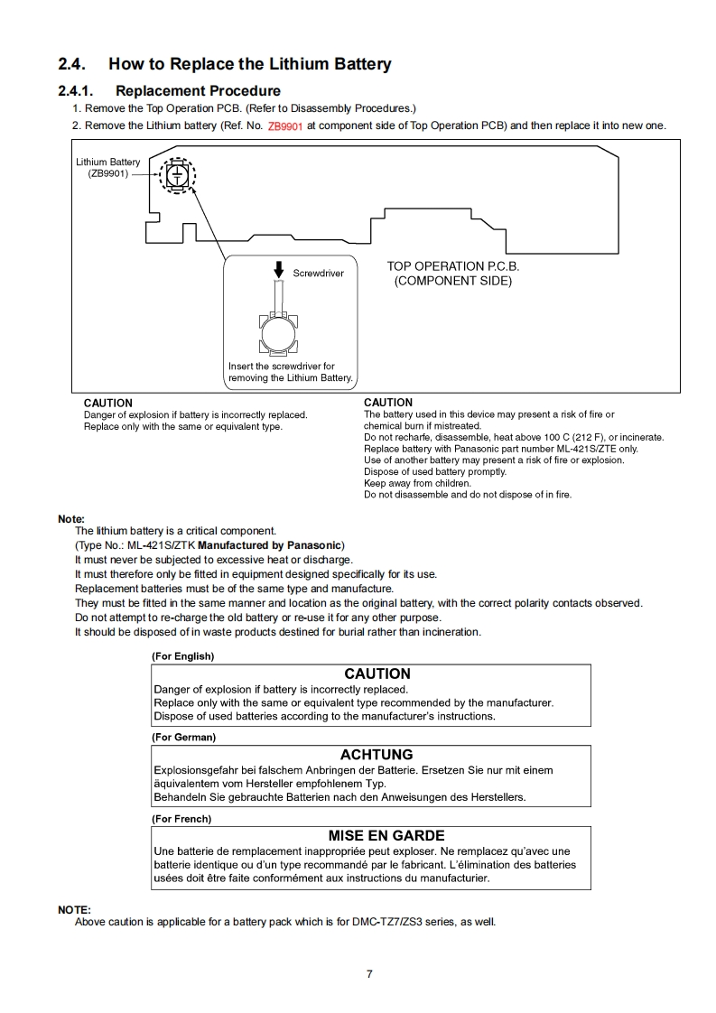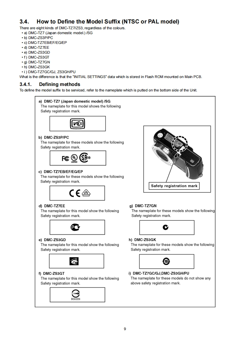 ORDER NO.DSC0903018CEB26Service ManuaDigital CameraModel No.DMC-TZ7EBLUMIX品H▣mIDMC-TZ7EEAVCHD LiteDODOLBYVIECASTEREO CREATOSLinKDMC-TZ7EFDMC-TZ7EGDMC-TZ7EPDMC-TZ7GCDMC-TZ7GJDMC-TZ7GNDMC-TZ7SGDMC-ZS3GDDMC-ZS3GHDMC-ZS3GKDMC-ZS3GTDMC-ZS3PDMC-ZS3PCDMC-ZS3PUVOL.1Colours(S)................Silver Type (except DMC-TZ7EF/GJ,ZS3GD)(K)..Black Type(A)...................Blue Type (only DMC-TZ7EE/EG/EP,ZS3P/PC/PU)(R)..Red Type(only DMC-TZ7EB/EF/EG/EP,ZS3P)(T)..................Brown Type (only DMC-TZ7EB/EF/EG/EP/GC/SG.ZS3GH/GK)Panasonic Corporation 2009.PanasonicUnauthorized copying and distribution is a violationof law.