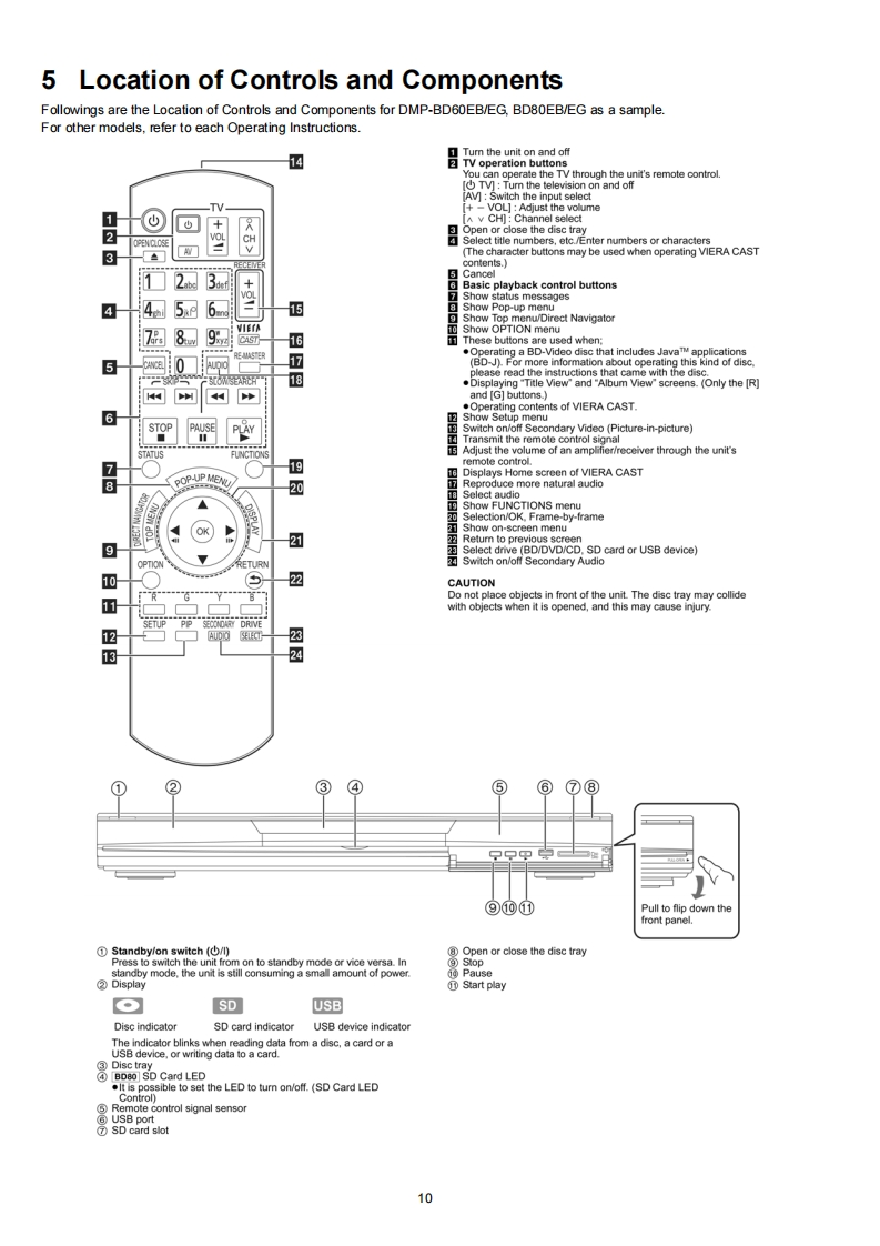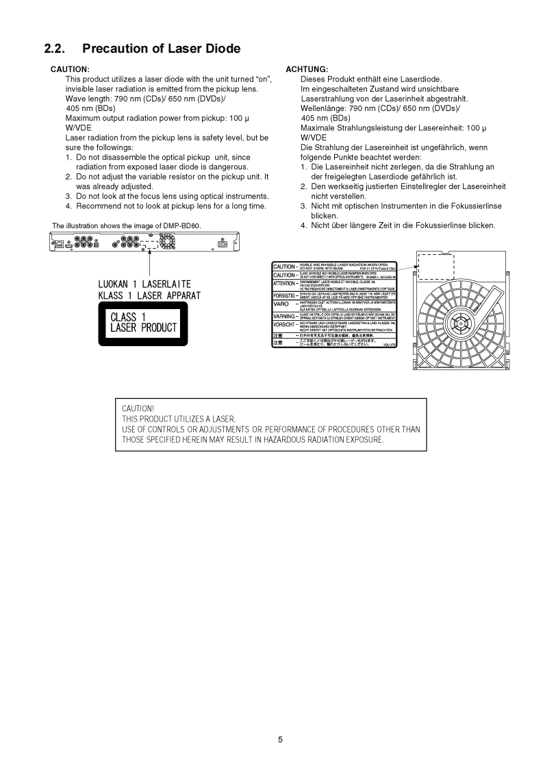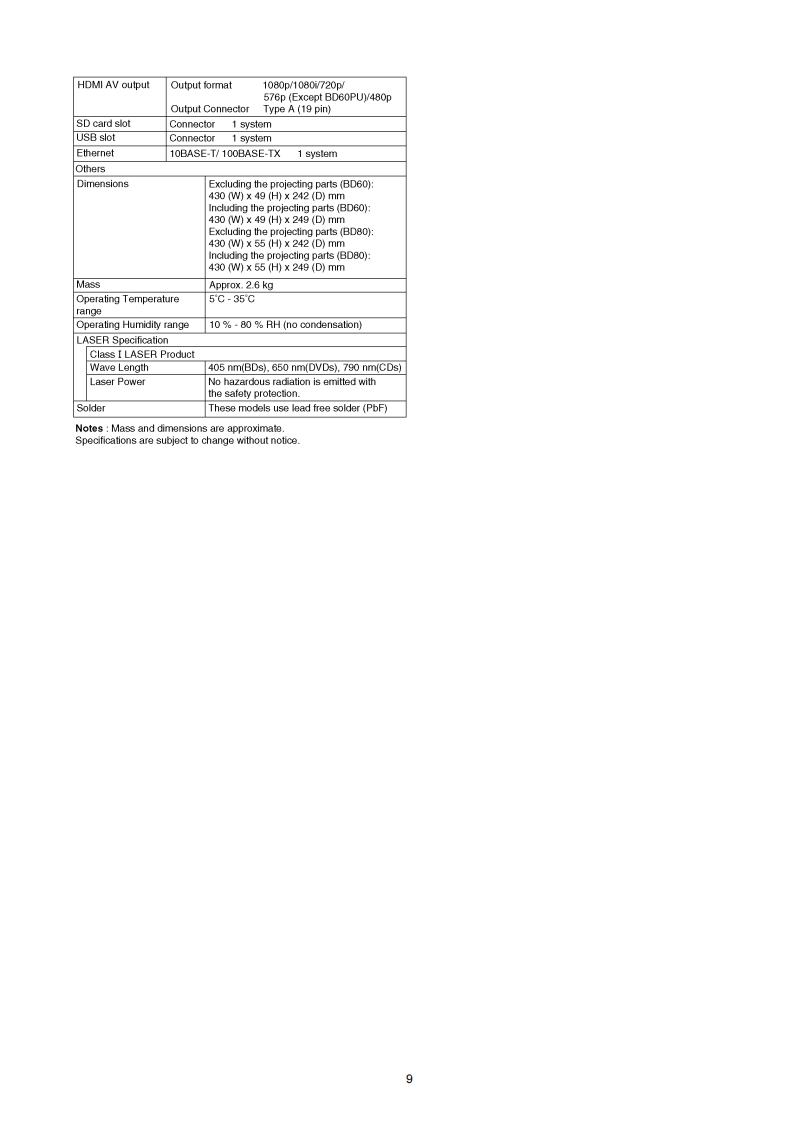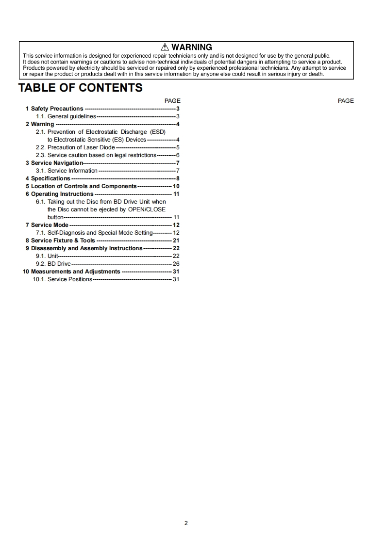 ORDER NO.CHM0903011CEService ManuaBlu-ray Disc PlayerModel No.DMP-BD60GNDMP-BD60GAThe illustration shows the image of DMP-BD80.DMP-BD60GZNotes:These model's BDP/Digital P.C.B.Module are -RFKNBD60GNDMP-BD60GC-RFKNBD60GARFKNBD60GZDMP-BD60PU、RFKNBD60GCRFKNBD6OPURFKNBD80GNDMP-BD80GNVol.1Caution:ColourPairing of BD Drive and Digital P.C.B.as "BDP/Digital P.C.B.Module"have to be replaced together.(K).Black TypeIf the either BD drive or Digital P.C.B.is changed,BD Drive unit has to be re-aligned.Because thealignment data for BD Drive Unit is stored in Digital P.C.B.Java and all Java-based trademarks and logos are trademarks or registered trademarks of Sun Microsystems,Inc.in the United States andother countries.Manufactured under license from Dolby Laboratories.Dolby and the double-D symbol are trademarks of Dolby Laboratories.Manufactured under license under U.S.Patent#s:5,451,942,5,956.674;5,974,380:5,978,762:6,226,616:6,487,535;7,392,195;7,272,5677.333,929:7,212,872 other U.S.and worldwide patents issued pending.DTS is a registered trademark and the DTS logos,Symbol.DTS-HD and DTS-HD Master Audio Essential are trademarks of DTS.Inc.1996-2008 DTS,Inc.All Rights Reserved.This product incorporates copyright protection technology that is protected by U.S.patents and other intellectual property rights.Use of thiscopyright protection technology must be authorized by Macrovision,and is intended for home and other limited viewing uses only unlessotherwise authorized by Macrovision.Reverse engineering or disassembly is prohibited.HDMI,the HDMI logo and High-Definition Multimedia Interface are trademarks or registered trademarks of HDMI Licensing LLC.This product is licensed under the AVC patent portfolio license and VC-1 patent portfolio license for the personal and non-commercial use of aconsumer to (i)encode video in compliance with the AVC Standard and VC-1 Standard ("AVC/VC-1 Video")and/or (ii)decode AVC/VC-1 Videothat was encoded by a consumer engaged in a personal and non-commercial activity and/or was obtained from a video provider licensed torideNoin is granted or shall be implied for any other use.Additional information may be obtained from MPELA.HDAVI Control TM is a trademark of Panasonic Corporation."AVCHD"and the "AVCHD"logo are trademarks of Panasonic Corporation and Sony Corporation.SDHC Logo is a trademark.Portions of this product are protected under copyright law and are provided under license by ARIS/SOLANA/4C.x.v.ColourTM is a trademark.VIERA CASTTM is a trademark of Panasonic Corporation.Plays DivX videoDivX is a registered trademark of DivX,Inc.,and is used under license.▣X"Blu-ray Disc"is trademark."BD-LIVE"logo is trademark of Blu-ray Disc Association."BONUSVIEW"is trademark of Blu-ray Disc Association.YouTube and Picasa are trademarks of Google,Inc.Panasonic Corporation 2009.PanasonicUnauthorized copying and distribution is a violationof law.