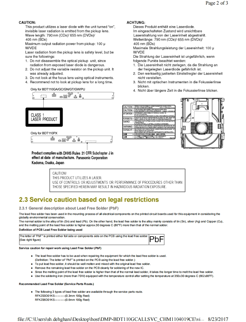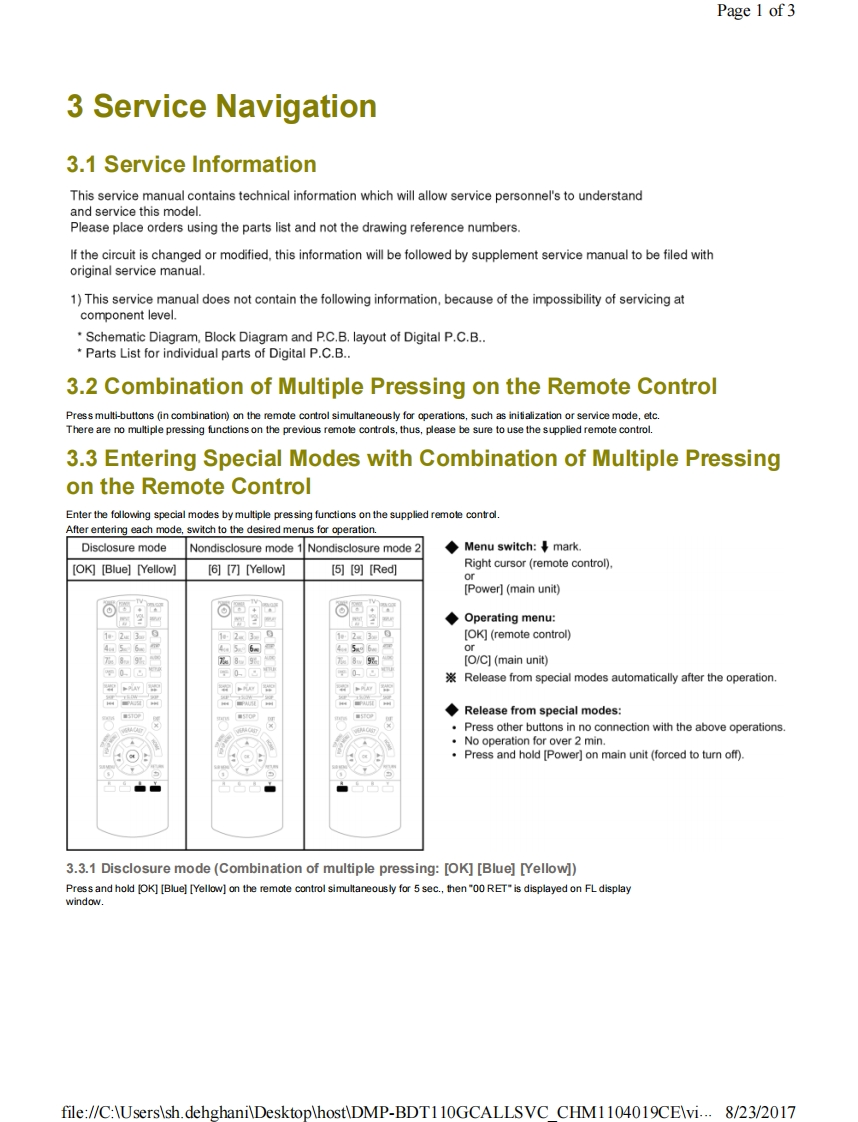 Page 1 of 3PanasonicORDER NO.CHM1104019CEService ManualBlu-ray Disc PlayerModeI No.DMP-BDT110GADMP-BDT110GCDMP-BDT110GNDMP-BDT110GTDMP-BDT110GWDMP-BDT110PUDMP-BDT110PXColourVol.1(K)......Black Typedlna以.是0AVCHD、.VIEWLinKBDLIVE.Hom←2架w具》睡mdolavafile://C:Userssh.dehghaniDesktophostDMP-BDT110GCALLSVC CHM1104019CEvi...8/23/2017