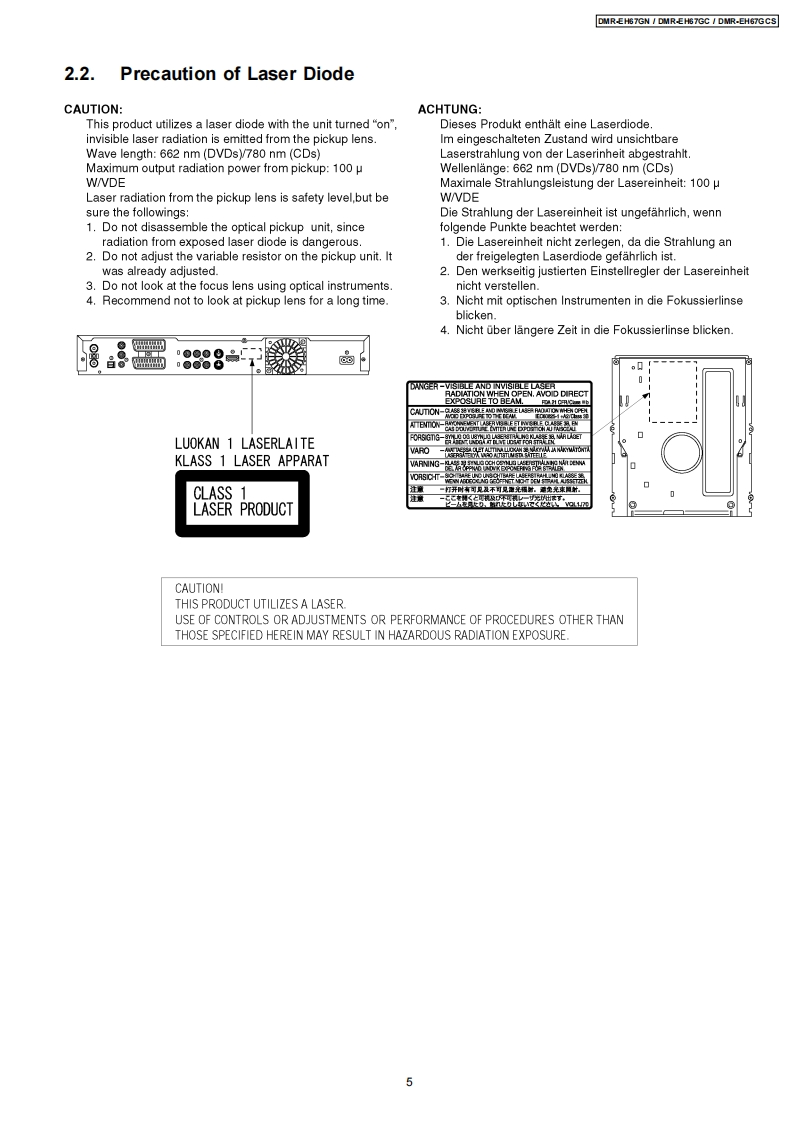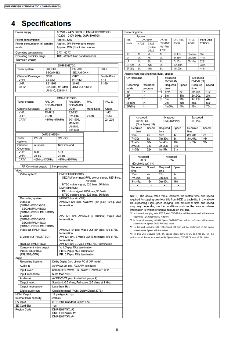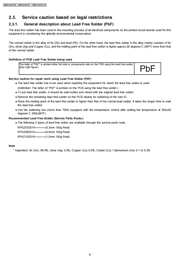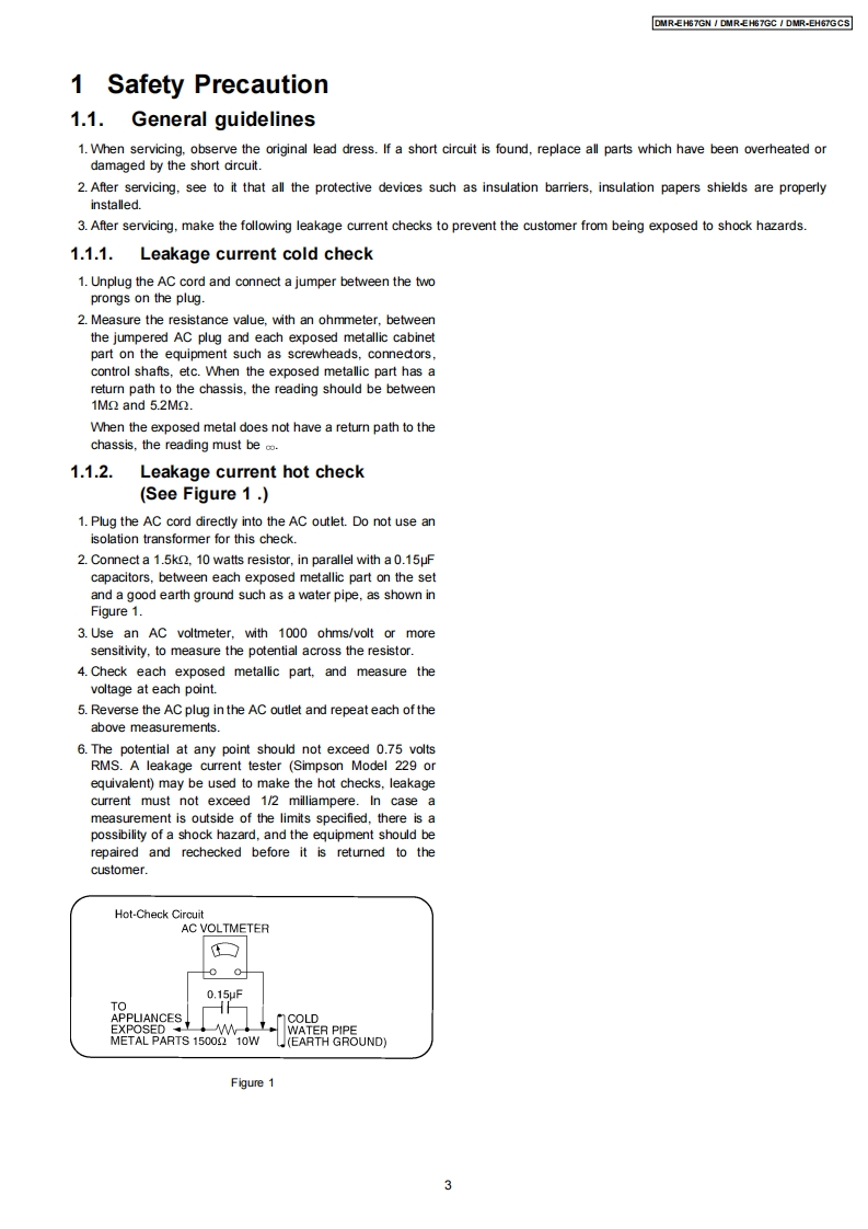 ORDER NO.CHM0707031CEService ManualDVD RecorderModel No.DMR-EH67GNDMR-EH67GCNotes:These model's RAM/Digital P.C.B.DMR-EH67GCSModule are-RFKNEH67GN(GN)-RFKNEH67GC(GC)Vol.1-RFKNEH67GCS(GCS).ColourWhen replacing Main P.C.B.or EEPROM,(K0.....Black Type"UNFORMAT"indication is displayed and HDD must beformatted.When replacing HDD,it is necessary to updatethe firmware.Please prepare the update disc.(After that,FORMAT is necessary)After that,programme in the HDD will be lost.In detail,please refer to each content in this servicemanual.Caution:Pairing of RAM Drive and Digital P.C.B.as "RAM/Digital P.C.B.Module"have to be replaced together.If the either RAM drive or Digital P.C.B.is changed,RAM Drive unit has to be re-aligned.Because thealignment data for RAM Drive Unit is stored in Digital P.C.B.Manufactured under license from Dolby Laboratories.Official DivX Certified product.Dolby and the double-D symbol are trademarks of DolbyPlays all versions of DivX video (including DivX 6)with standardLaboratories.playback of DivX media files.DivX,DivX Certified,and associated logos are trademarks of'DTS"is a registered trademark of DTS,Inc.and'DTSDivX,Inc.and are used under license.2.0+Digital Out"is a trademark of DTS,Inc.HDMI,the HDMI logo and High-Definition Multimedia InterfaceThis product incorporates copyright protection technology that isare trademarks or registered trademarks of HDMI Licensing LLC.protected by U.S.patents and other intellectual property rights.Use of this copyright protection technology must be authorizedHDAVI ControlTM is a trademark of Matsushita Electric Industrialby Macrovision,and is intended for home and other limitedconsumer uses only unless otherwise authorized byCo.,Ltd.Macrovision.Reverse engineering or disassembly is prohibited..SDHC Logo is a trademark..Portions of this product are protected under copyright law andare provided under license by ARIS/SOLANA/4C.2007 Matsushita Electric Industrial Co.,Ltd.AllPanasonicrights reserved.Unauthorized copyinganddistribution is a violation of law.