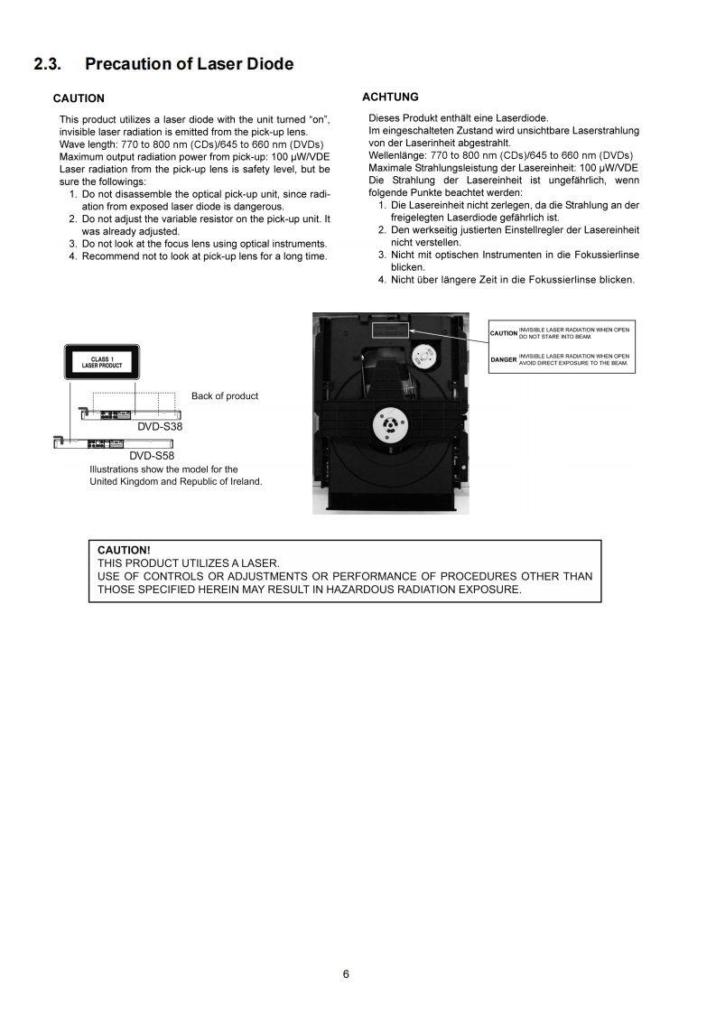 ORDER NO.DSD1003022CEService ManualDVD/CD PlayerModel No.DVD-S58EBDVD-S58EEDVD-S58EGDVD-S58EPDVD-S58DVD-S38EBDVD-S38EEDVD-S38EGDVD-S38EPColour(K)..BIackTypeWARNINGThis service information is designed for experienced repair technicians only and is not designed for use by the general public.It does not contain warnings or cautions to advise non-technical individuals of potential dangers in attempting to service a product.Products powered by electricity should be serviced or repaired only by experienced professional technicians.Any attempt to serviceor repair the product or products dealt with in this service information by anyone else could result in serious injury or death.Panasonic Corporation 2010 Unauthorized copy-Panasonicing and distribution is a violation of law.