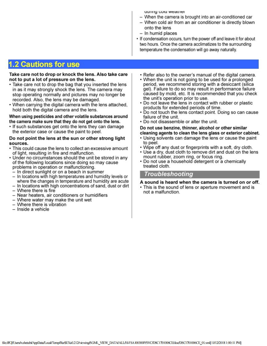 PanasonicORDER NO.DSC1701006CEB26Service ManualInterchangeable Lens for Digital CameraModel No.H-FSA100300PH-FSA100300EH-FSA100300K巡HDP88姿△WARNINGThis service information is designed for experienced repair technicians only and is not designed for use by the general public.It does not contain wamings or cautions to advise non-technical individuals of potential dangers in attempting to service a product.Products powered by electricity should be serviced or repaired only by experienced professional technicians.Any attempt to serviceor repair the product or products dealt with in this service information by anyone else could result in serious injury or deathPanasonic Corporation 2017 Unauthorized copying and distribution is a violation of law.file:///CYU...mp/RarSEXa0.212/viewing/SGML_VIEW_DATA/ALL/H-FSA 100300P/S VC/DSC1701006CE/doc/DSC1701006CE_cvr.xml[11/12/2018 12:55:52 PM]
