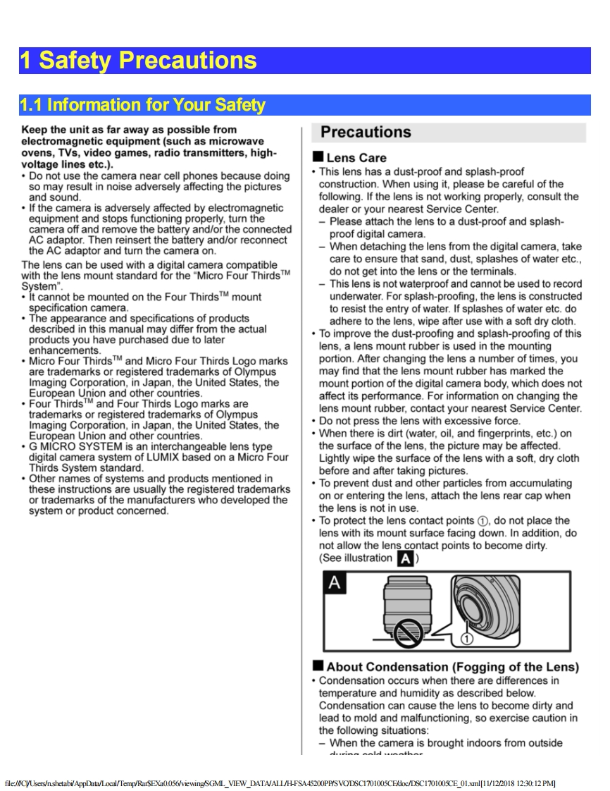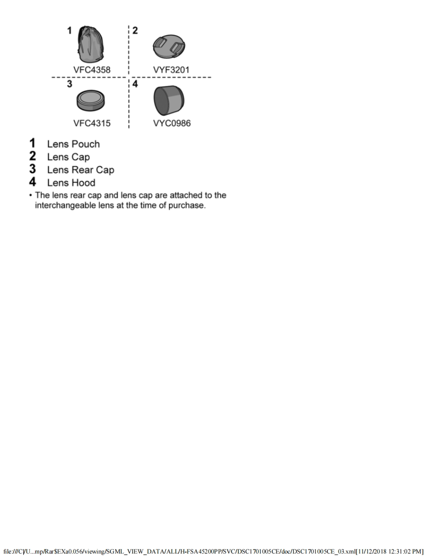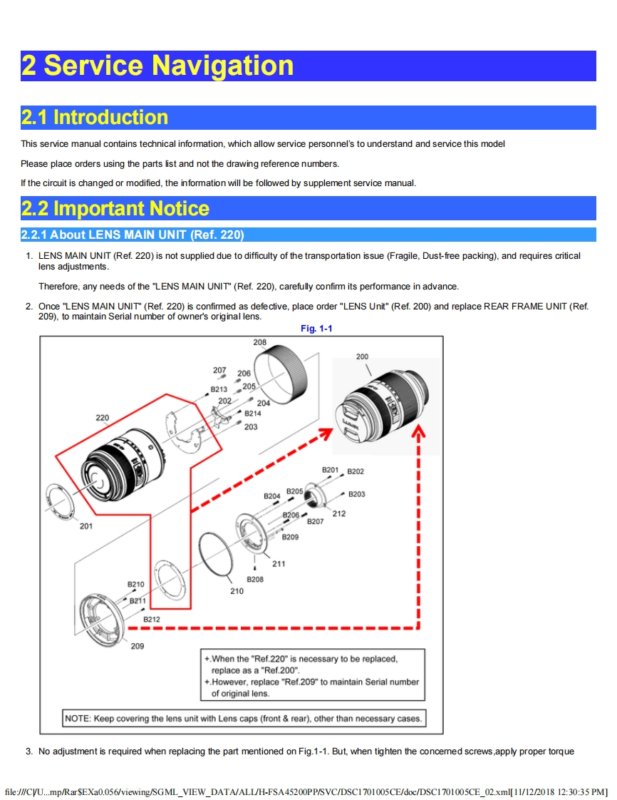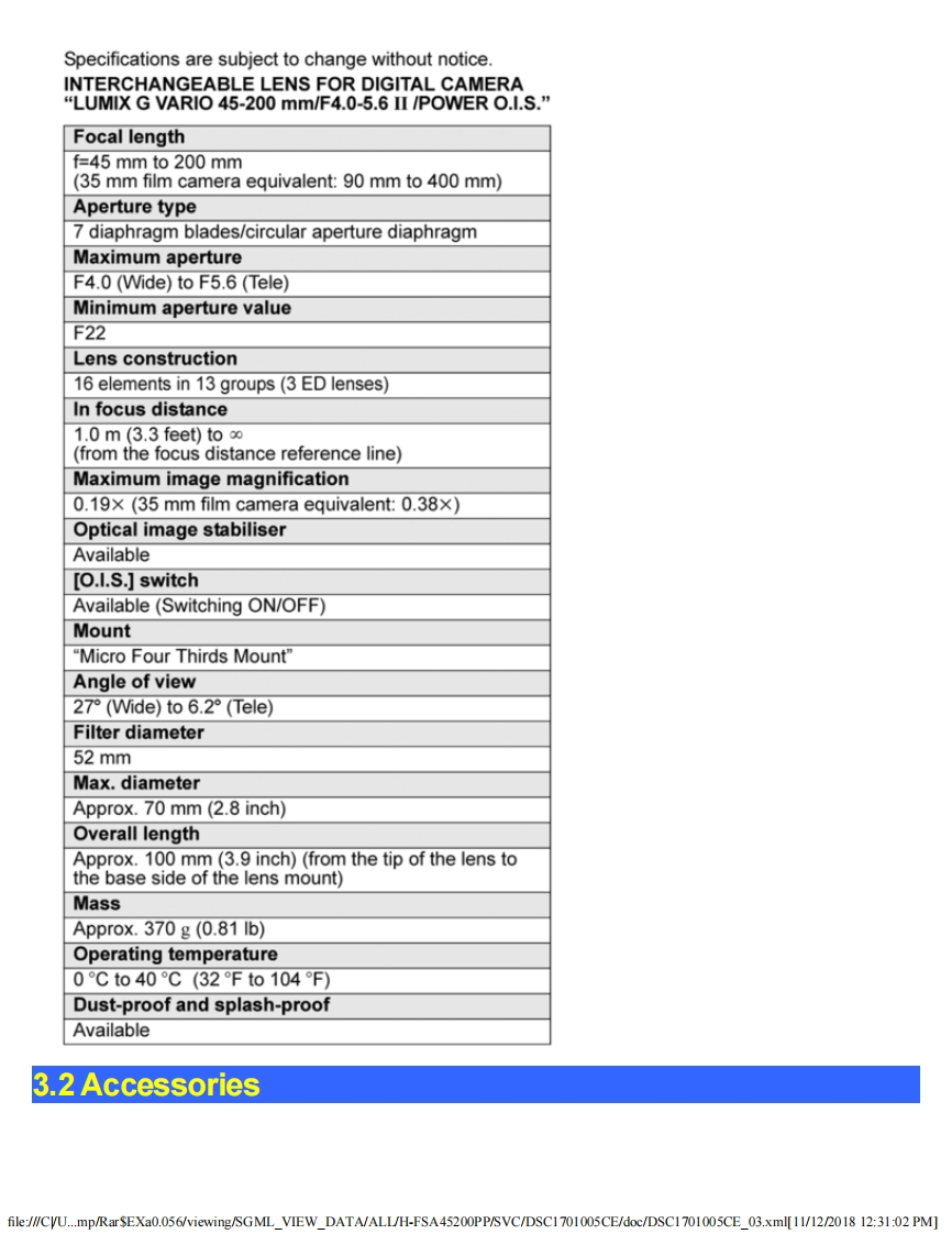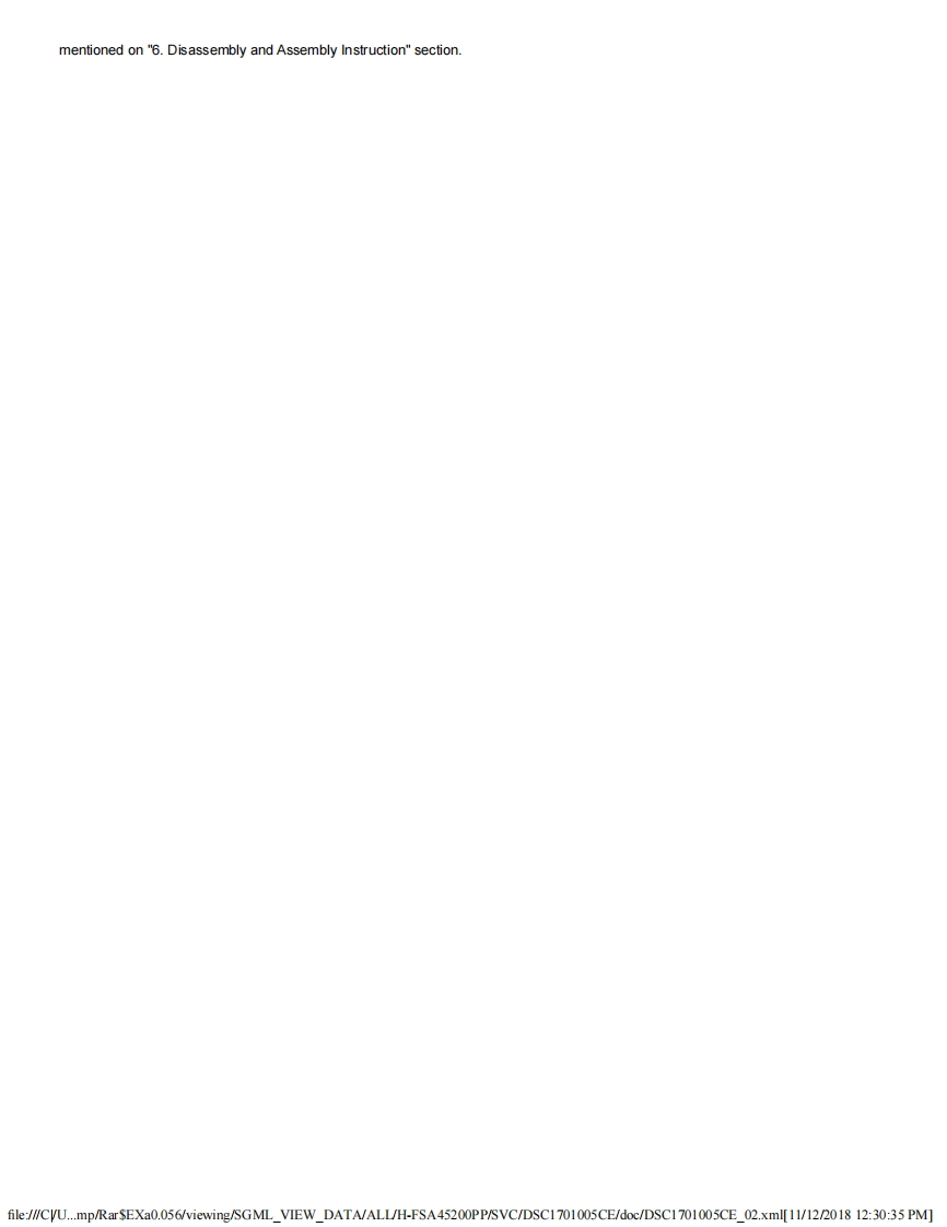 PanasonicORDER NO.DSC1701005CEB26Service ManualInterchangeable Lens for Digital CameraModel No.H-FSA45200PPH-FSA45200EH-FSA45200GKgHDPOWER8.0PUISSANTAWARNINGThis service information is designed for experienced repair technicians only and is not designed for use by the general public.It does not contain warnings or cautions to advise non-technical individuals of potential dangers in attempting to service a productProducts powered by electricity should be serviced or repaired only by experienced professional technicians.Any attempt to serviceor repair the product or products dealt with in this service information by anyone else could result in serious injury or death.Panasonic Corporation 2017 Unauthorized copying and distribution is a violation of law.file:///CVU...mp/RarSEXa0.056/viewing/SGML_VIEW_DATA/ALL/H-FSA45200PP/SVC/DSC1701005CE/doc/DSC1701005CE_cvr.xml[11/12/2018 12:29:43 PM]