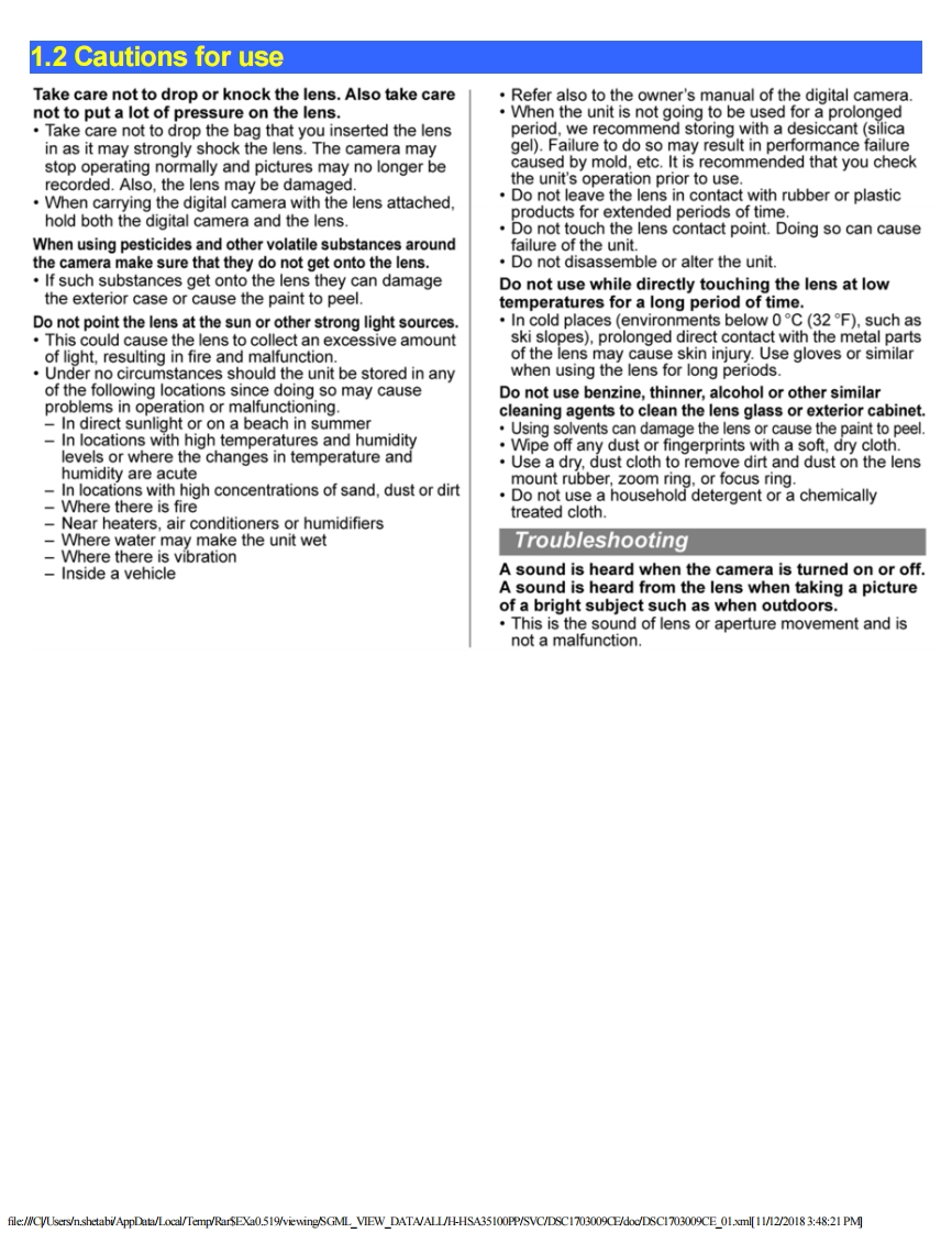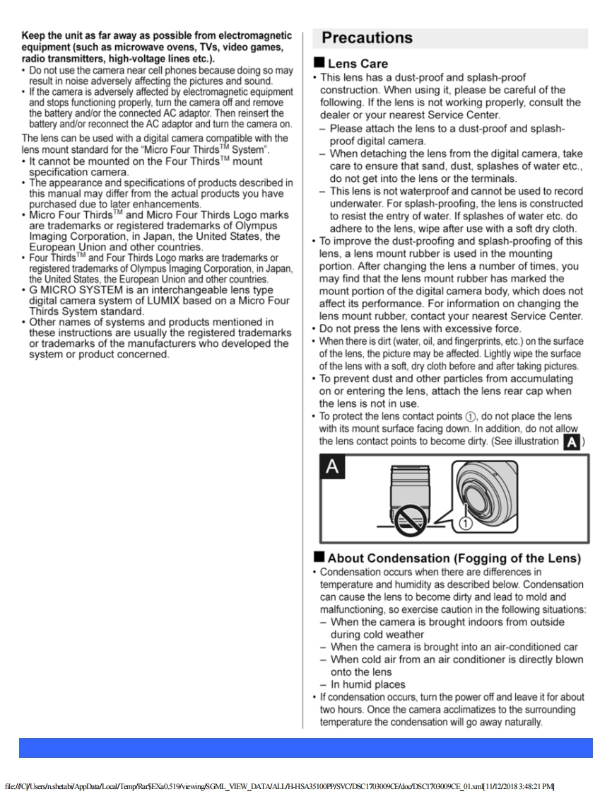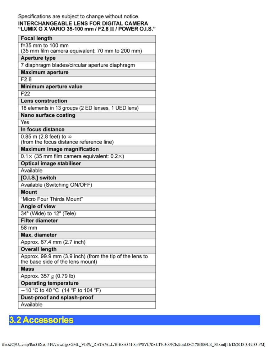 PanasonicORDER NO.DSC1703009CEB26Service ManualInterchangeable Lens for Digital CameraModel No.H-HSA35100PPH-HSA35100EH-HSA35100GKX回些HDP88△WARNINGThis service information is designed for experienced repair technicians only and is not designed for use by the general public.It does not contain wamings or cautions to advise non-technical individuals of potential dangers in attempting to service a product.Products powered by electricity should be serviced or repaired only by experienced professional technicians.Any attempt to serviceor repair the product or products dealt with in this service information by anyone else could result in serious injury or death.Panasonic Corporation 2017 Unauthorized copying and distribution is a violation of law.file:///CVU...emp/Rar$EXa0.519/viewing/SGML_VIEW_DATA/ALL/H-HSA35100PP/SVC/DSC1703009CE/doc/DSC1703009CE_cvr.xml[11/12/2018 3:47:57 PM]