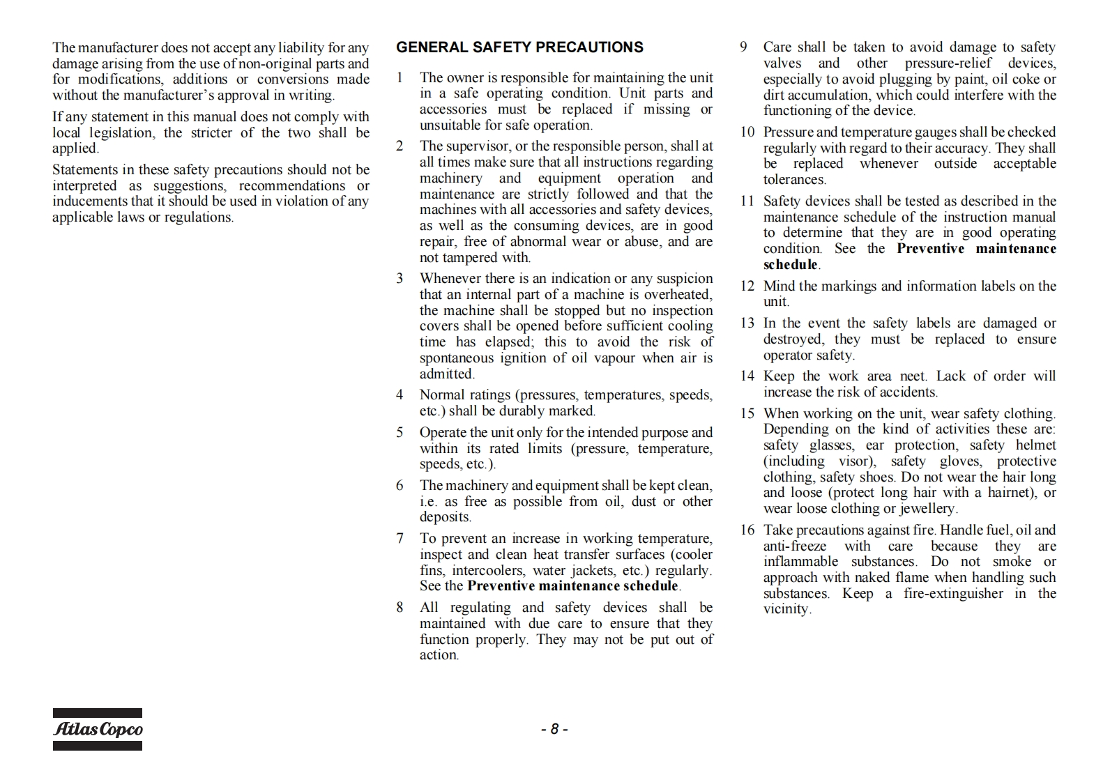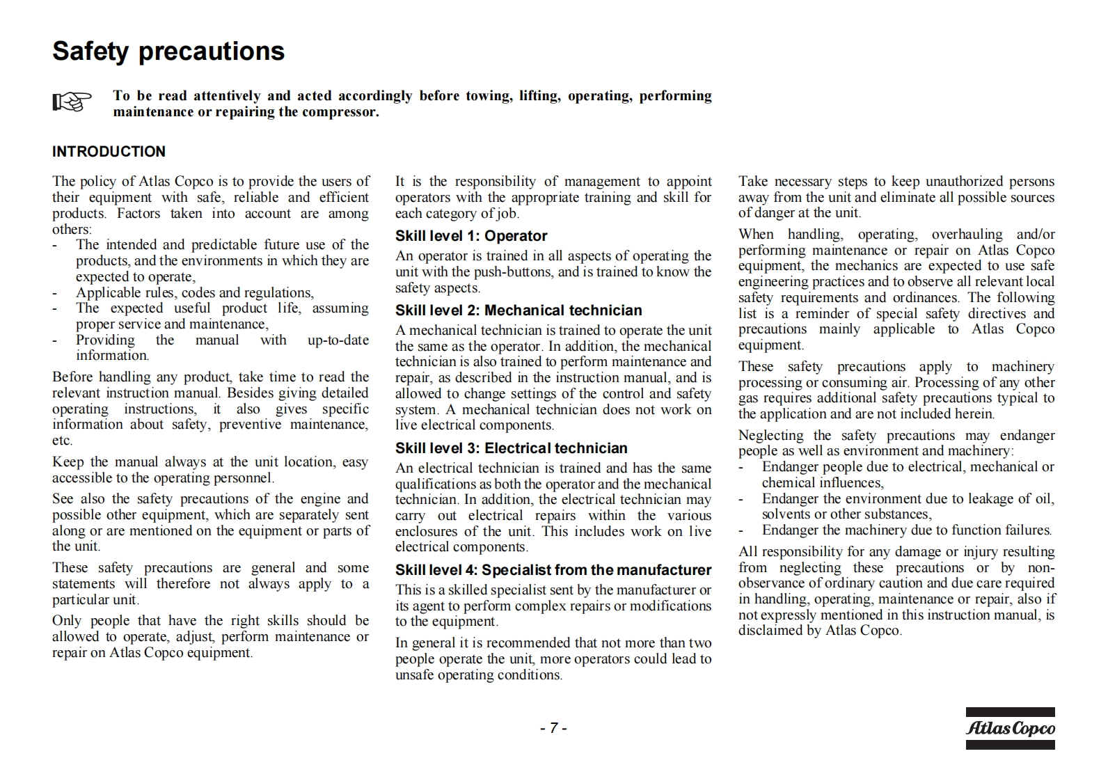 atlas-copco-air-compressor-u190-pace-instruction-book安装调试说明书手册找手册网3小时前发布关注私信8.99MB92页042atlas-copco-air-compressor-u190-pace-instruction-book安装调试说明书手册此内容为付费资源,请付费后查看¥19¥21黄金会员免费钻石会员免费立即购买您当前未登录!建议登陆后购买,可保存购买订单付费资源 第1页 / 共92页 第2页 / 共92页 第3页 / 共92页 第4页 / 共92页 第5页 / 共92页 第6页 / 共92页 第7页 / 共92页 第8页 / 共92页 第9页 / 共92页 第10页 / 共92页 试读已结束,还剩82页,您可下载完整版后进行离线阅读 THE ENDKaeser/Atlas-Copco 文本预览 Atlas CopcoInstruction ManualInstruction Manualfor Portable CompressorsEnglishAtlas CopcoU190 PACE KD WUXEngine Kubota V1505T 查看更多 收起部分 喜欢就支持一下吧收藏