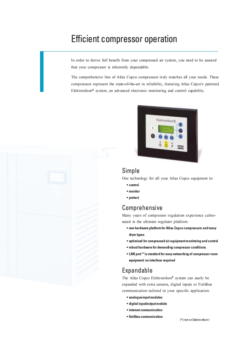 Atlas-Copco-Elektronikon-操作与维护手册-1731719806.6666找手册网3小时前发布关注私信0.33MB8页030Atlas-Copco-Elektronikon-操作与维护手册-1731719806.6666此内容为付费资源,请付费后查看¥19¥21黄金会员免费钻石会员免费立即购买您当前未登录!建议登陆后购买,可保存购买订单付费资源 第1页 / 共8页 第2页 / 共8页 第3页 / 共8页 第4页 / 共8页 第5页 / 共8页 第6页 / 共8页 第7页 / 共8页 第8页 / 共8页 已完成全部阅读,共8页 THE ENDKaeser/Atlas-Copco 文本预览 Atlas Copco Elektronikon system▣▣State-of-the-art electronic monitoring and control capabilityElektronikon'IIComresscr DutenuF2THE BENEFITSOF ADVANCEDTECHNOLOGYAtlas Copco 查看更多 收起部分 喜欢就支持一下吧收藏