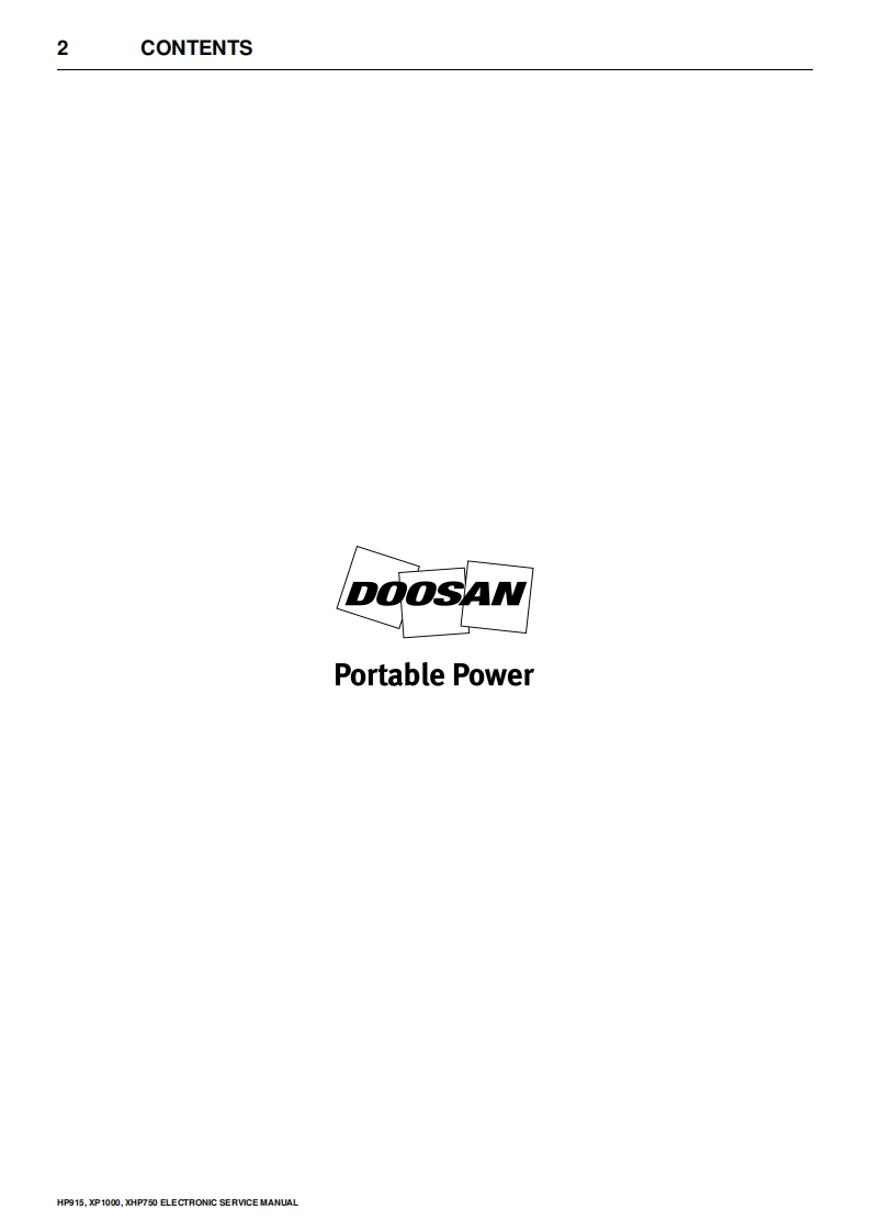 DOOSANPortable PowerHP915,XP1000,XHP750ELECTRONIC SERVICE MANUALOriginal InstructionThis manual containsimportant safety informationand must be made available topersonnel who operate andmaintain this machine.HP915,XP1000 SERIAL No:894600-894849XHP750SERIAL No:894850-89499946680663_enA11/15