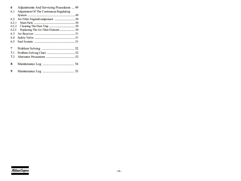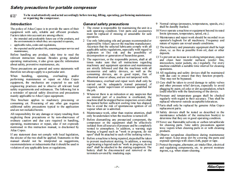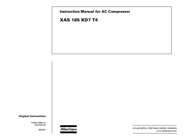 atlas-copco-xas-185-维修维护说明书手册找手册网3小时前发布关注私信4.33MB58页032atlas-copco-xas-185-维修维护说明书手册此内容为付费资源,请付费后查看¥19¥21黄金会员免费钻石会员免费立即购买您当前未登录!建议登陆后购买,可保存购买订单付费资源 第1页 / 共58页 第2页 / 共58页 第3页 / 共58页 第4页 / 共58页 第5页 / 共58页 第6页 / 共58页 第7页 / 共58页 第8页 / 共58页 第9页 / 共58页 第10页 / 共58页 试读已结束,还剩48页,您可下载完整版后进行离线阅读 THE ENDKaeser/Atlas-Copco 文本预览 2J儿1为=BInstruction Manualfor AC CompressorsEnglishXAS 185 KD7 T4Engine Kubota V2403 查看更多 收起部分 喜欢就支持一下吧收藏