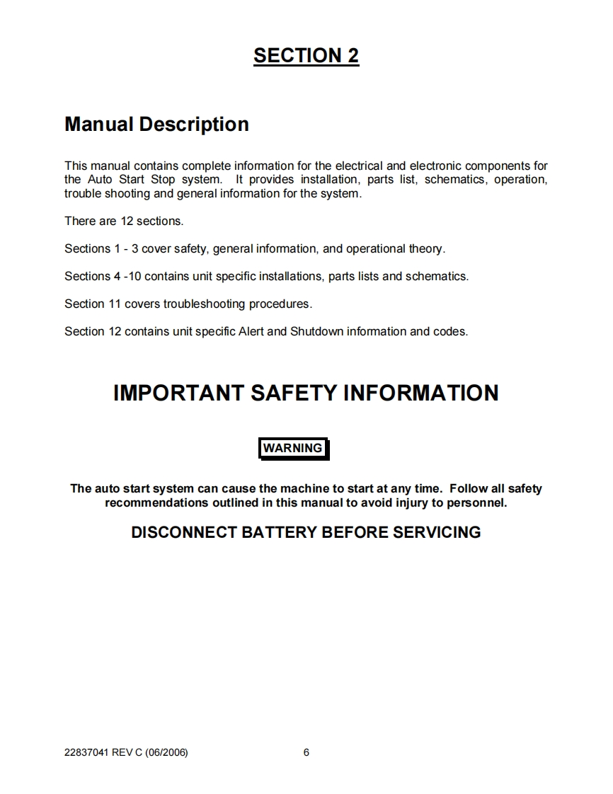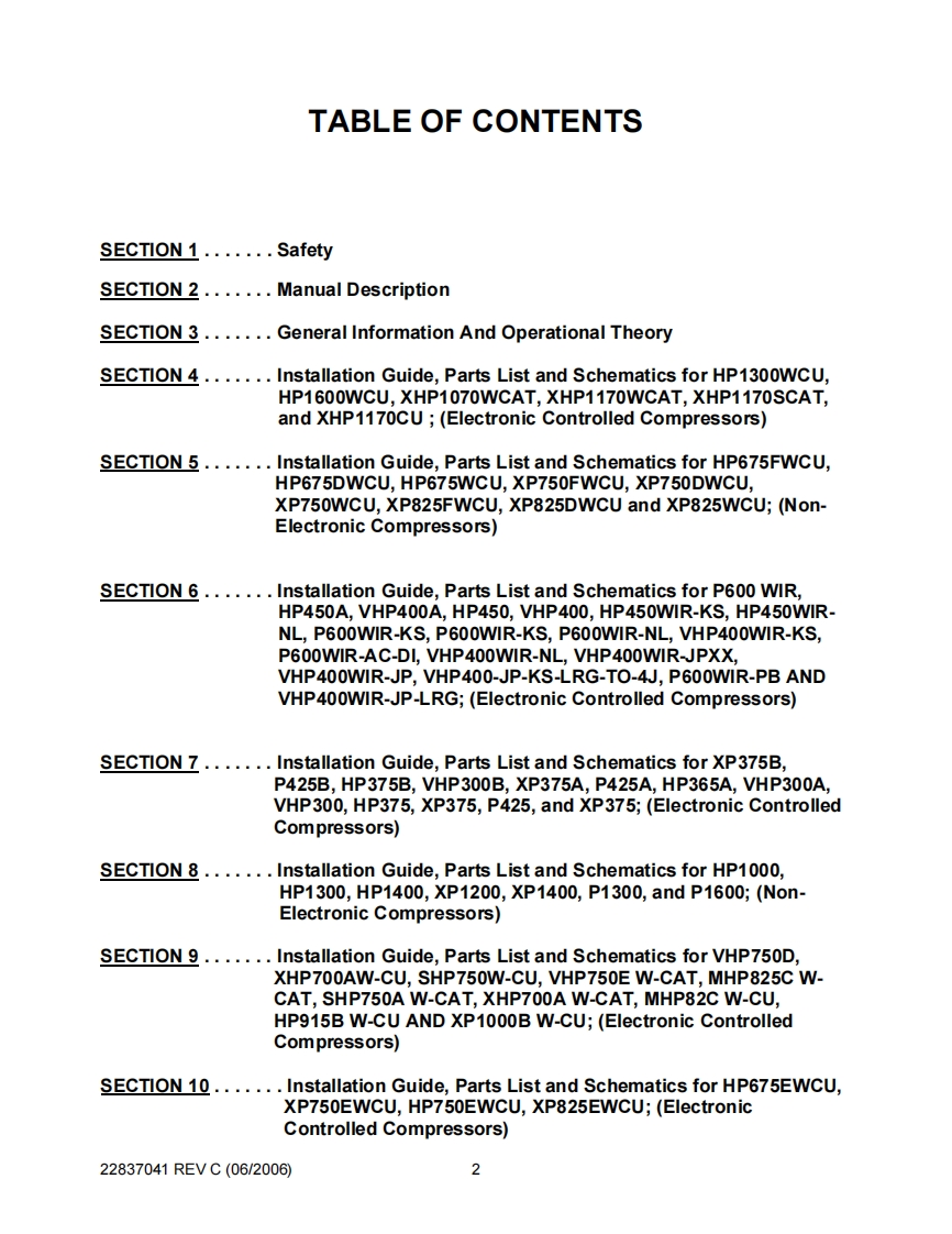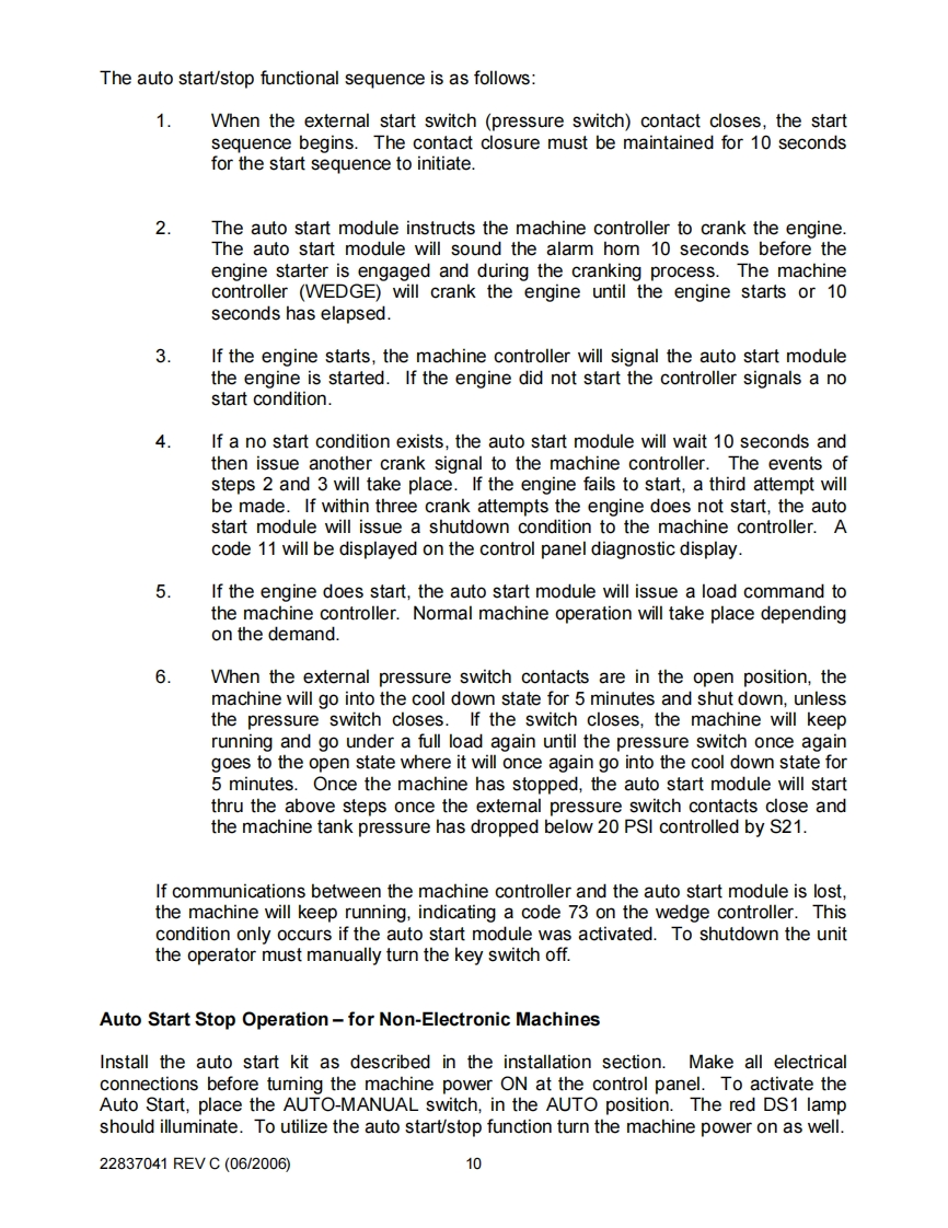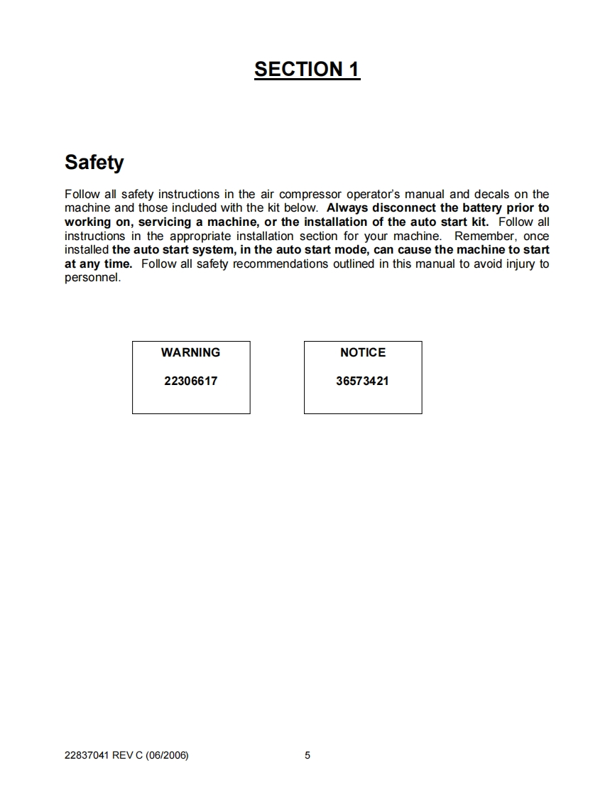 Ingersoll RandConstruction TechnologiesINSTALLATION,OPERATION AND SERVICEMANUALFORAUTO START STOP SYSTEMOPTION FOR COMPRESSORSIngersoll RandConstruction TechnologiesUtility EquipmentDoosan purchased Bobcat Company from Ingersoll-Rand Company inP.0.Box868service mark501 Sanford Aveto Ingersoll-Rand Company in this mantal is historical or nominativeMocksville,N.C.27028n natire,and is not meant o suggest a current affiliation benveenIngersoll-Rand Company and Doosan Compony or the products ofwww.portablepower.irco.cometther.22837041REVC(06/2006)Revised(09-12)1