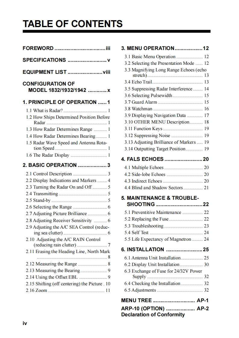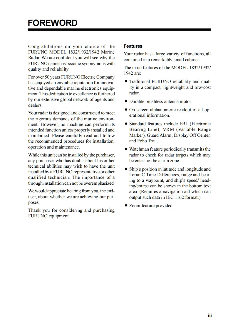 古野FURUNO-1832-1932-1942-操作说明手册操作手册找手册网3小时前发布关注私信1.32MB63页047古野FURUNO-1832-1932-1942-操作说明手册操作手册此内容为付费资源,请付费后查看¥19¥21黄金会员免费钻石会员免费立即购买您当前未登录!建议登陆后购买,可保存购买订单付费资源 第1页 / 共63页 第2页 / 共63页 第3页 / 共63页 第4页 / 共63页 第5页 / 共63页 第6页 / 共63页 第7页 / 共63页 第8页 / 共63页 第9页 / 共63页 第10页 / 共63页 试读已结束,还剩53页,您可下载完整版后进行离线阅读 THE ENDCobra/Furuno 文本预览 FURUNOODPERATOR'S MANUALMARINE RADARMODEL MODEL 1832/1932/1942FURUNO ELECTRIC CO.,LTD.NISHINOMIYA,JAPAN 查看更多 收起部分 喜欢就支持一下吧收藏