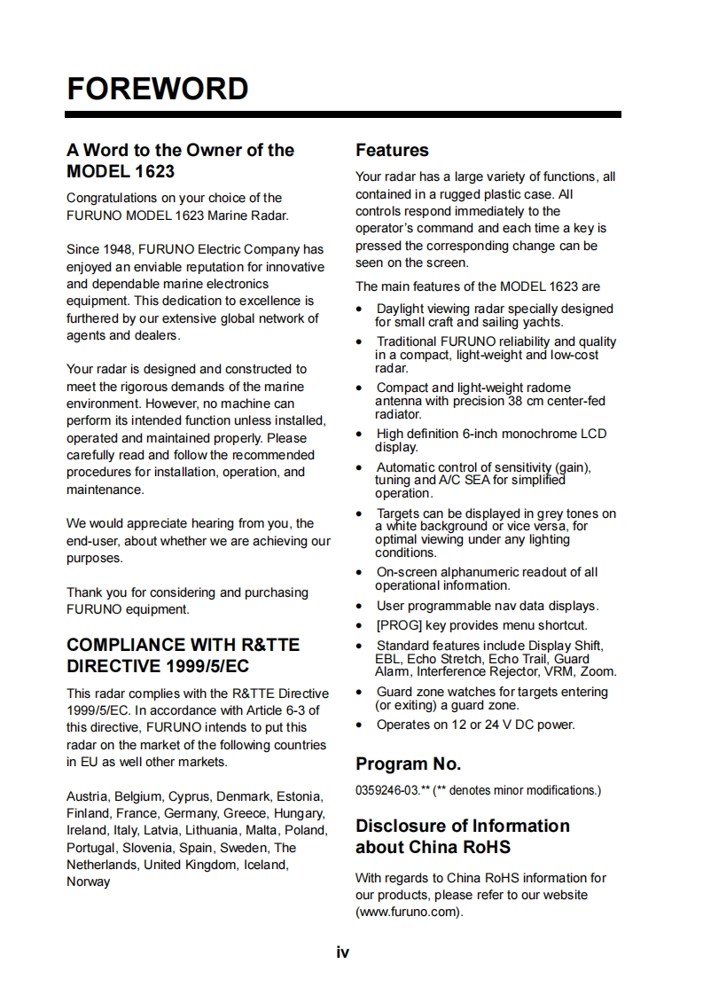 日本古野FURUNO-1623_安装调试说明书手册找手册网2小时前发布关注私信3.25MB52页041日本古野FURUNO-1623_安装调试说明书手册此内容为付费资源,请付费后查看¥19¥21黄金会员免费钻石会员免费立即购买您当前未登录!建议登陆后购买,可保存购买订单付费资源 第1页 / 共52页 第2页 / 共52页 第3页 / 共52页 第4页 / 共52页 第5页 / 共52页 第6页 / 共52页 第7页 / 共52页 第8页 / 共52页 第9页 / 共52页 第10页 / 共52页 试读已结束,还剩42页,您可下载完整版后进行离线阅读 THE ENDCobra/Furuno 文本预览 FURUNOOPERATOR'S MANUALMARINE RADARModelMODEL 1623FURUNO ELECTRIC CO.,LTD.www.furuno.com 查看更多 收起部分 喜欢就支持一下吧收藏
