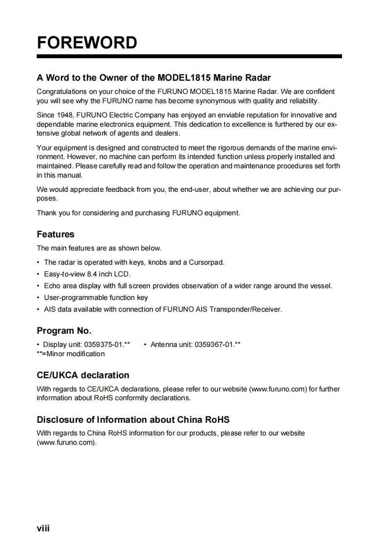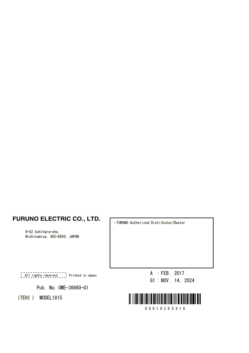 日本古野FURUNO-1815_安装调试说明书手册找手册网2小时前发布关注私信22.17MB156页022日本古野FURUNO-1815_安装调试说明书手册此内容为付费资源,请付费后查看¥19¥21黄金会员免费钻石会员免费立即购买您当前未登录!建议登陆后购买,可保存购买订单付费资源 第1页 / 共156页 第2页 / 共156页 第3页 / 共156页 第4页 / 共156页 第5页 / 共156页 第6页 / 共156页 第7页 / 共156页 第8页 / 共156页 第9页 / 共156页 第10页 / 共156页 试读已结束,还剩146页,您可下载完整版后进行离线阅读 THE ENDCobra/Furuno 文本预览 FURUNOOPERATOR'S MANUALMARINE RADARMODEL 1815(Product Name:LCD RADAR)FURUNO ELECTRIC CO.,LTD.CEnhancedTargetSunlightAUTOTrackingAISViewablewww.furuno.com 查看更多 收起部分 喜欢就支持一下吧收藏