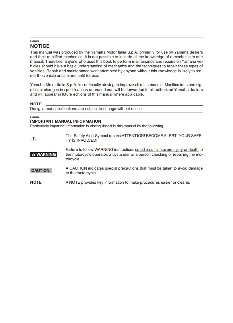 yamaha-mt-03-service-manual维修维护手册找手册网25天前发布关注私信20.42MB400页036yamaha-mt-03-service-manual维修维护手册此内容为付费资源,请付费后查看¥19¥21黄金会员免费钻石会员免费登录购买付费资源 第1页 / 共400页 第2页 / 共400页 第3页 / 共400页 第4页 / 共400页 第5页 / 共400页 第6页 / 共400页 第7页 / 共400页 第8页 / 共400页 第9页 / 共400页 第10页 / 共400页 试读已结束,还剩390页,您可下载完整版后进行离线阅读 THE END雅马哈机车 文本预览 米YAMAHA2006MT-03SERVICE MANUAL5YK-F8197-E0 查看更多 收起部分 喜欢就支持一下吧收藏