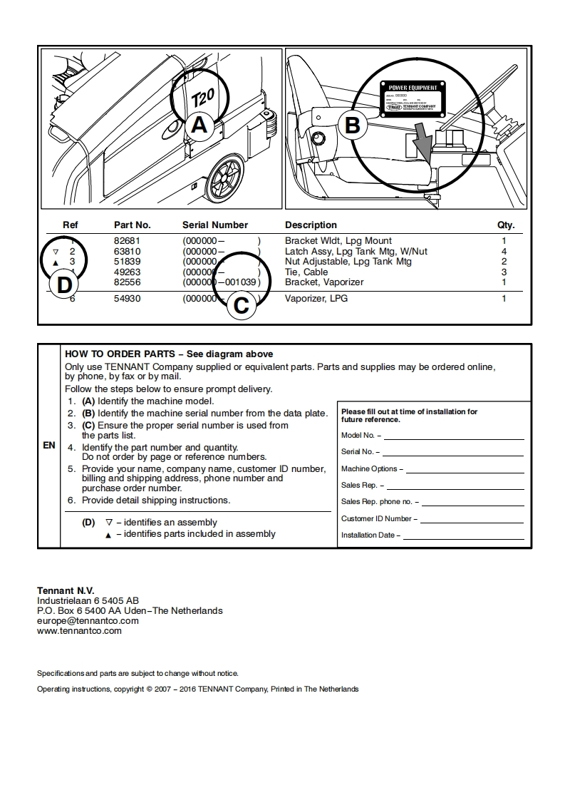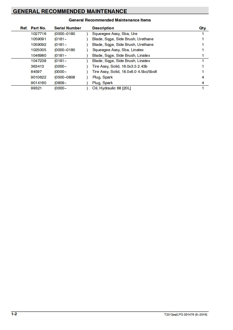 TENNANT坦能20-(Gas_LPG)-Rider-Scrubber-Parts-Manua_1零部件说明书手册含电器原理图手册找手册网25天前发布关注私信14.44MB422页035TENNANT坦能20-(Gas_LPG)-Rider-Scrubber-Parts-Manua_1零部件说明书手册含电器原理图手册此内容为付费资源,请付费后查看¥19¥21黄金会员免费钻石会员免费登录购买付费资源 第1页 / 共422页 第2页 / 共422页 第3页 / 共422页 第4页 / 共422页 第5页 / 共422页 第6页 / 共422页 第7页 / 共422页 第8页 / 共422页 第9页 / 共422页 第10页 / 共422页 试读已结束,还剩412页,您可下载完整版后进行离线阅读 THE ENDTENNANT(坦能) 文本预览 TENNANTT20(Gas/LPG)Rider ScrubberParts Manual@0aS证e卜H2○Foam Scrubbing TechnologyAn ORBIO Technologyce马织For the latest Parts manuals and other331476language Operator manuals,visitReV.17(5-2016)墙合www.tennantco.com/manuals 查看更多 收起部分 喜欢就支持一下吧收藏