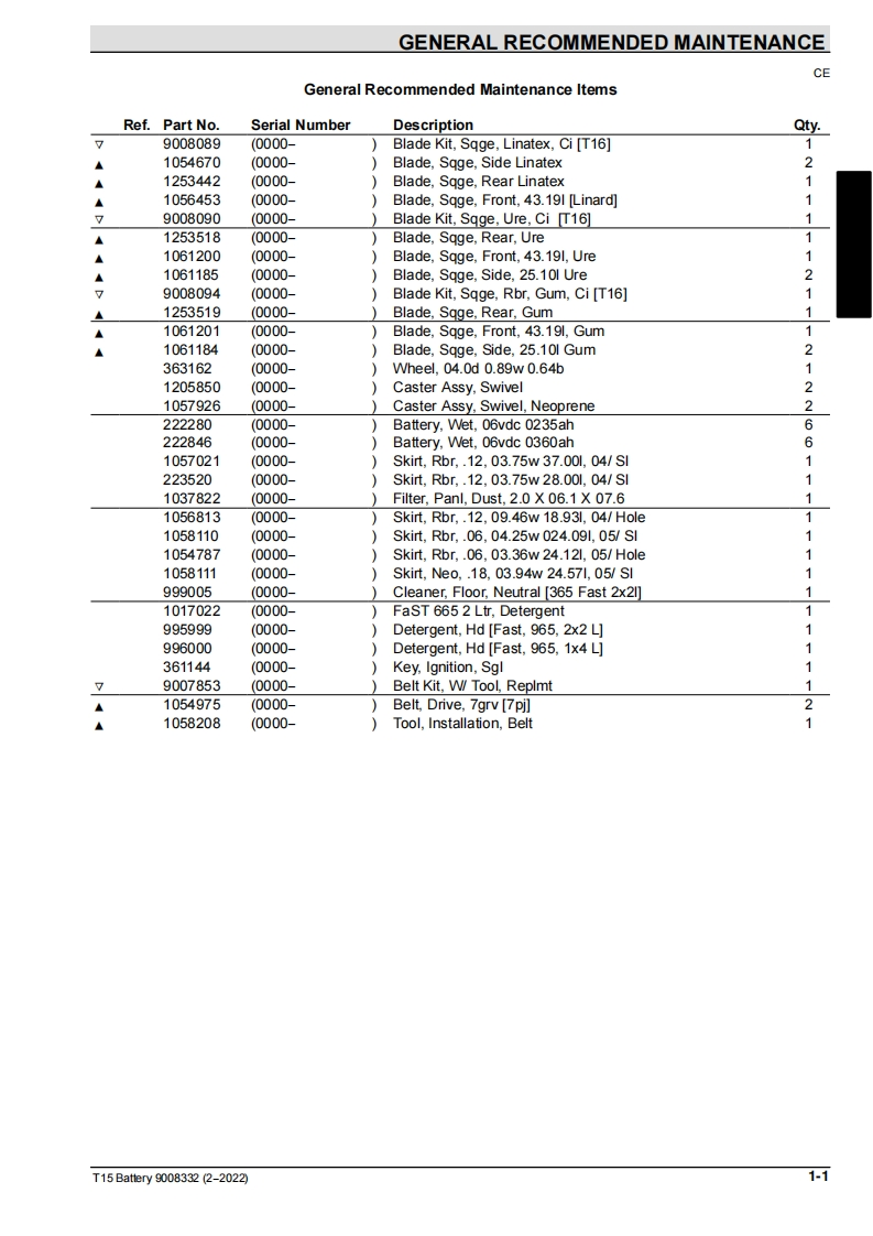 TENNANT坦能36-(Battery)-Rider-Scrubber-Parts-Manua零部件说明书手册含电器原理图手册找手册网26天前发布关注私信5.69MB152页027TENNANT坦能36-(Battery)-Rider-Scrubber-Parts-Manua零部件说明书手册含电器原理图手册此内容为付费资源,请付费后查看¥19¥21黄金会员免费钻石会员免费登录购买付费资源 第1页 / 共152页 第2页 / 共152页 第3页 / 共152页 第4页 / 共152页 第5页 / 共152页 第6页 / 共152页 第7页 / 共152页 第8页 / 共152页 第9页 / 共152页 第10页 / 共152页 试读已结束,还剩142页,您可下载完整版后进行离线阅读 THE ENDTENNANT(坦能) 文本预览 TENNANTT16(Battery)Rider ScrubberParts Manual@08FaSTH2OFoam Scrubbing TechnologyAn ORBIO TechnologyLITHIUM-IONEurope马职For latest Parts manual or other9008332Operator language manuals,visit:Rev.19(6-2025)www.tennantco.com/manualsM 查看更多 收起部分 喜欢就支持一下吧收藏