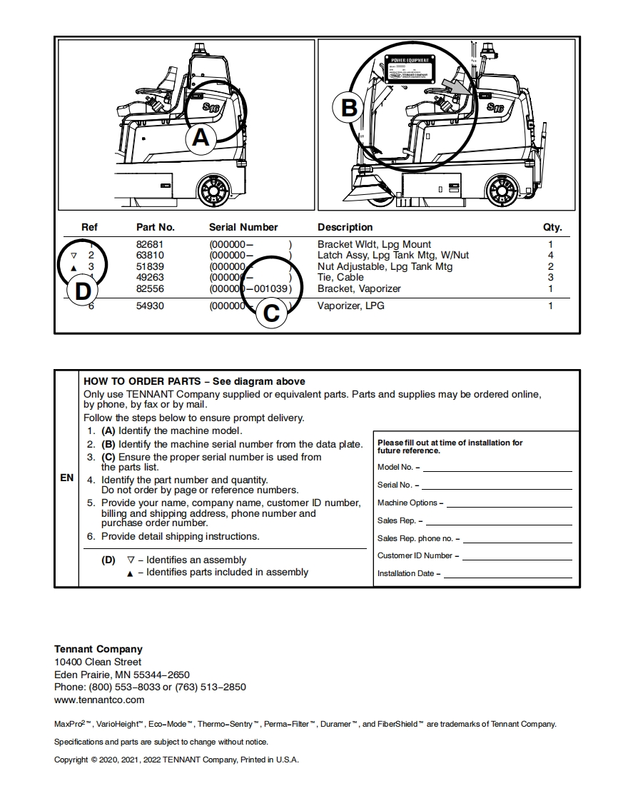 TENNANTS16(Battery)Rider SweeperParts ManualTennantTrueR PartsIRIS a Tennant Technology1-Step®Smart-Fill Automatic BatteryLITHIUM-IONNorth America International9045325For latest Parts manual or otherOperator language manual,visit:Rev.02(3-2022)www.tennantco.com/manuals