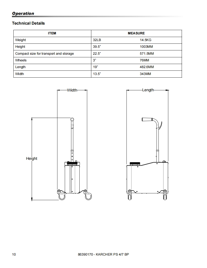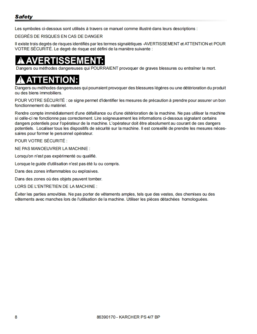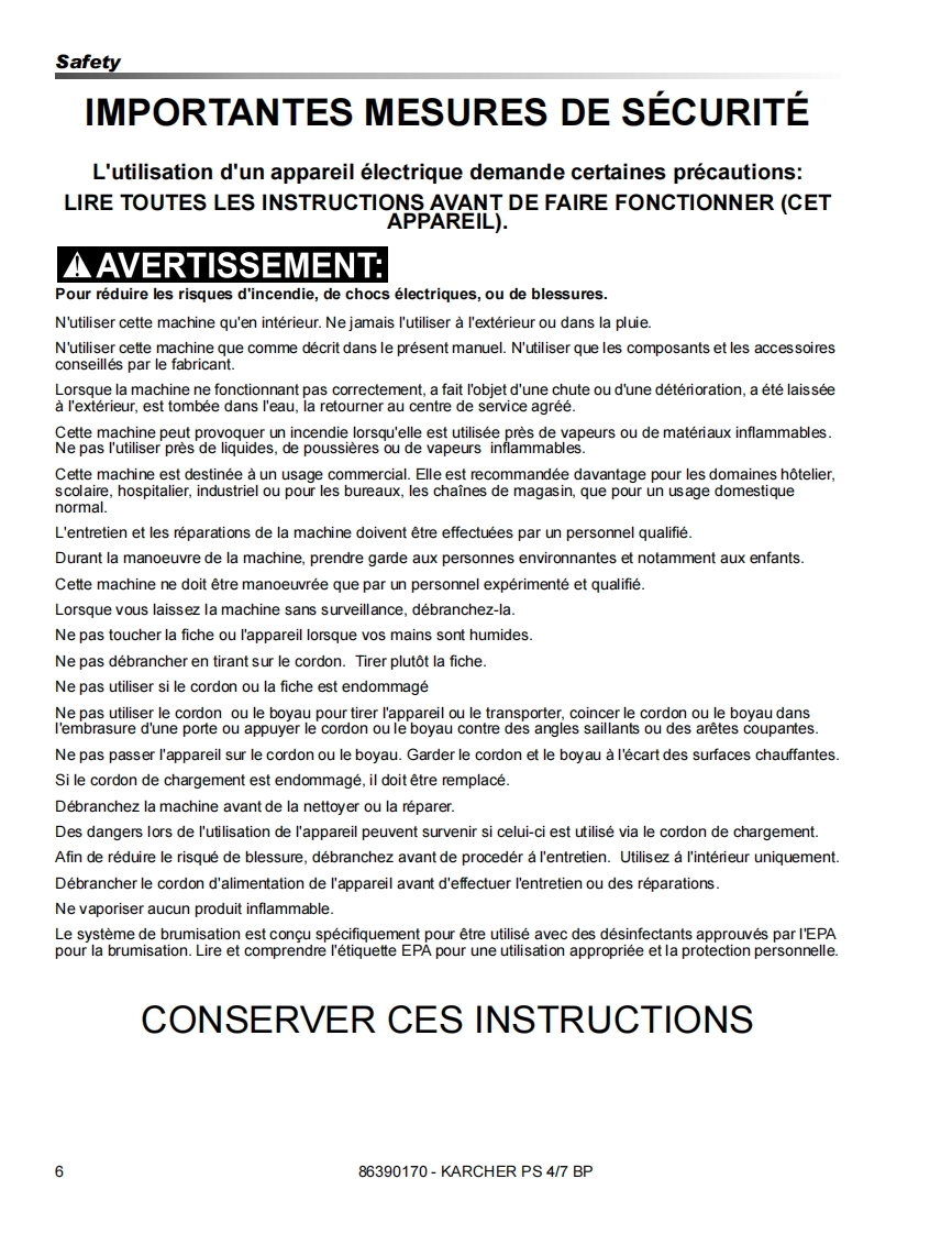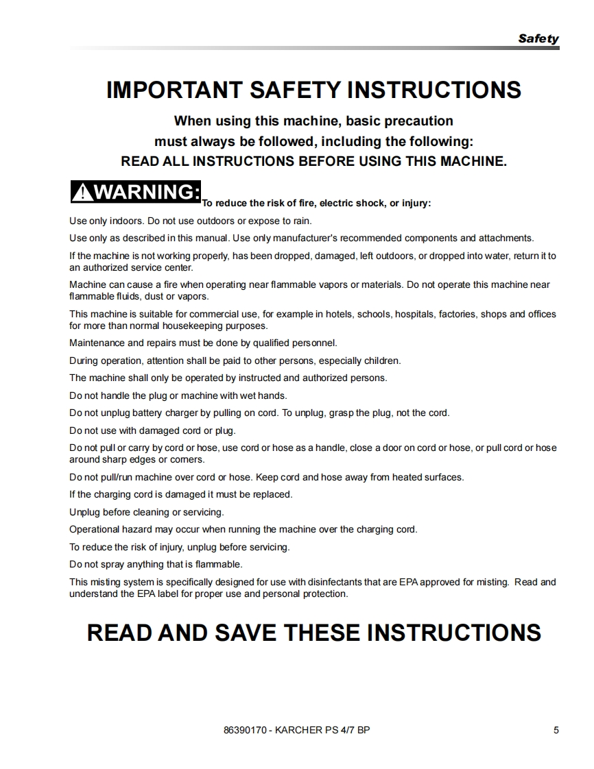 KARCHER®PS 4/7 BPOperating instructions(ENG)MODELS:TD12V1201.007-082.0WARNING:This product and accessories may contain a chemical known to theState of California to cause cancer and birth defects or otherreproductive harm.For more information about this regulation:ww.P65Warnings.ca.gov86390170-M12/08/18Read these instructions before using the machine.