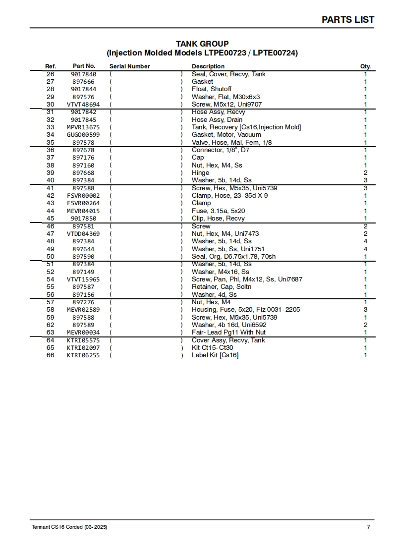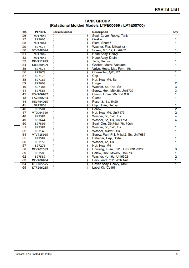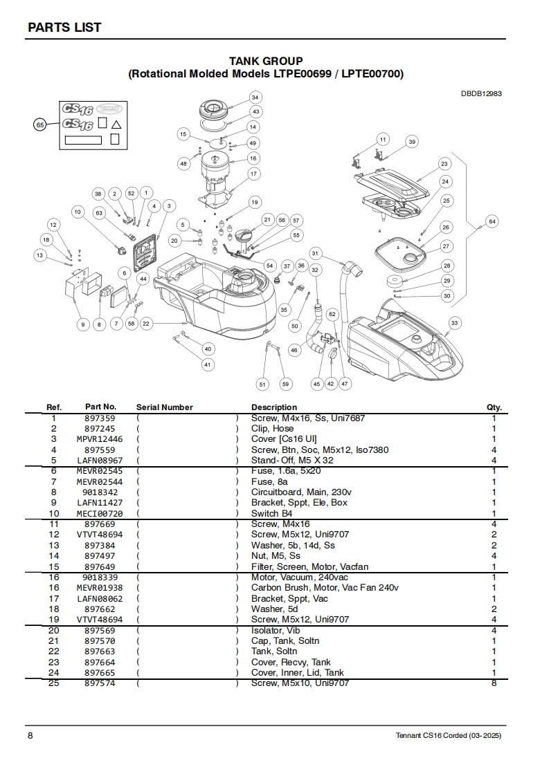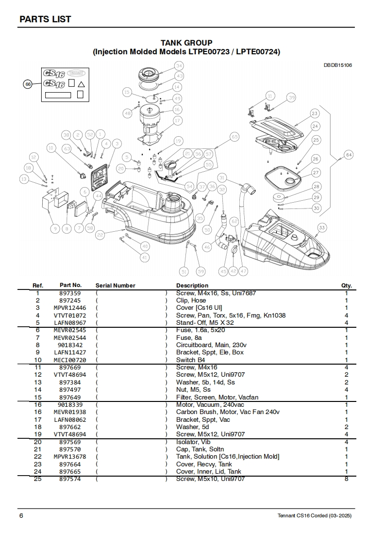 TENNANTCS16Corded Floor ScrubberParts ManualModel Part No.:LPTE00699-SCRUBBER [CS16 35CM BR.CORDED.EULPTE00700-SCRUBBER [CS16 35CM BR.CORDED.UKLPTE00723-SCRUBBER [CS16 35CM BR,CORDED,INJ MOLDED EU]LPTE00724-SCRUBBER [CS16 35CM BR,CORDED,INJ MOLDED UK]EuropeTo view,print or downloadTennant manuals,visit9021982www.tennantco.com/manualsRev.01(03-2025)