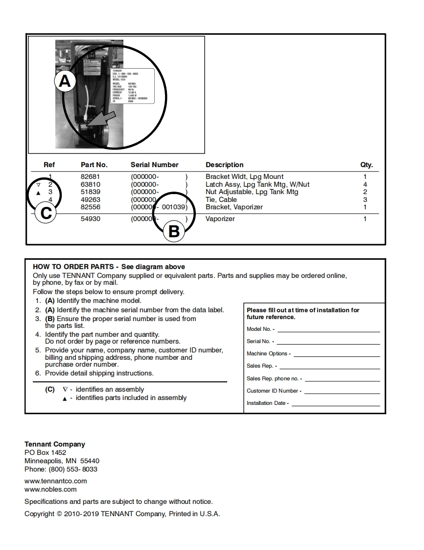 TENNANTBy Tennant CompanyEX-SC-716Self Contained Carpet ExtractorParts Manual@0Model Part No.:9007484.EX.SC-716(120V)TENNANTwww.tennantco.comN▣BLESwww.nobles.com回▣To view,.print or download9007533the latest manual.visit:Rev.02(07-2019)65可送出www.tennantco.com/manuals