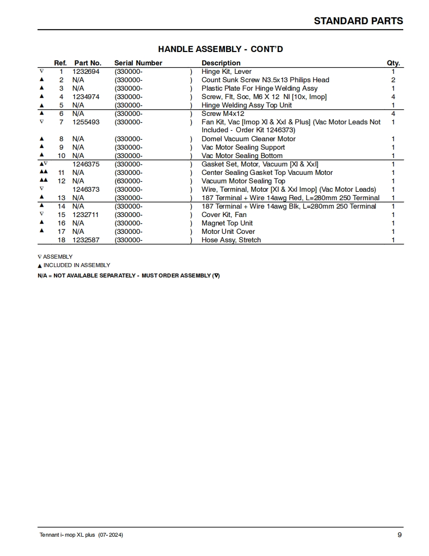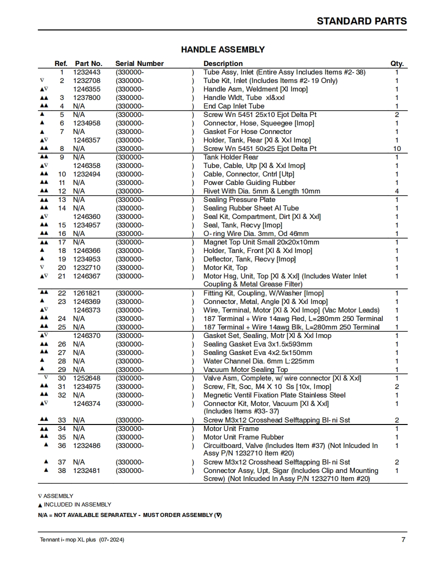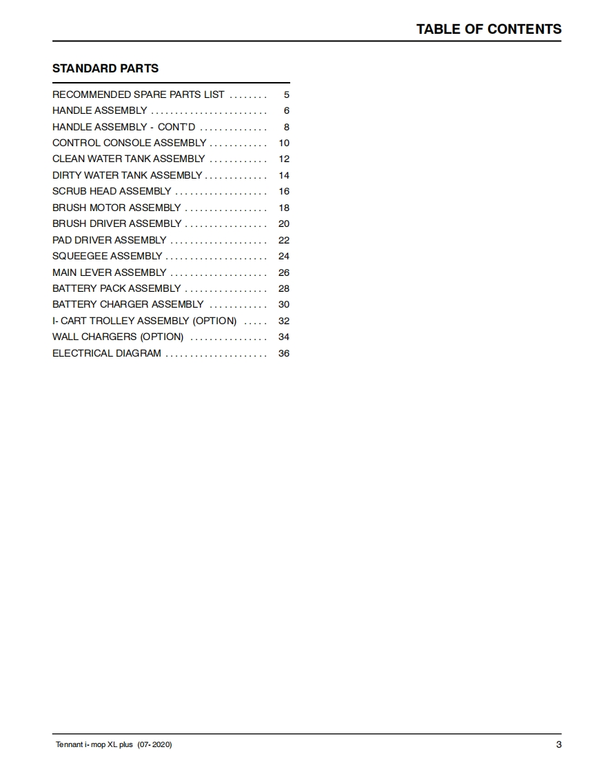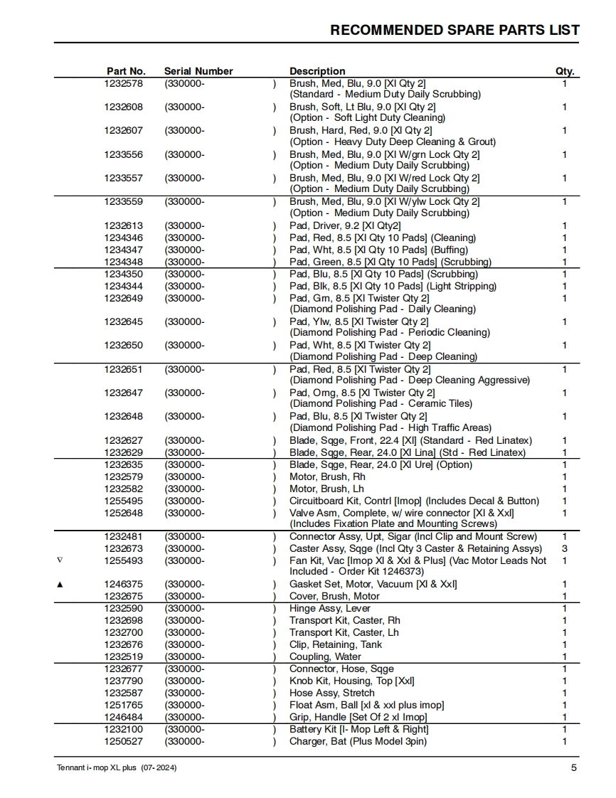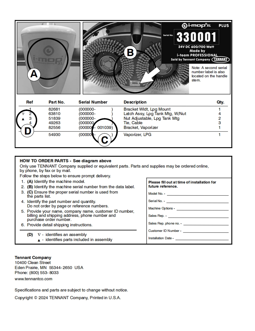 TENNANTi-mopXL plusSCRUBBERParts Manual(S/N330000-(S/NP300004-P300771)Model Part No.1251236-i-mop XL plus w/charger battery9020942-i-mop XL plus w/charger extra battery1250527-i-charge 2 battery chargerNorth America International9020954▣你▣For the latest Parts manuals and otherReV.03(07-2024)language Operator manuals,visit:www.tennantco.com/manuals