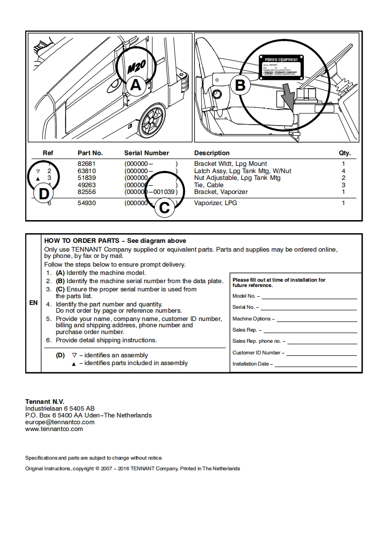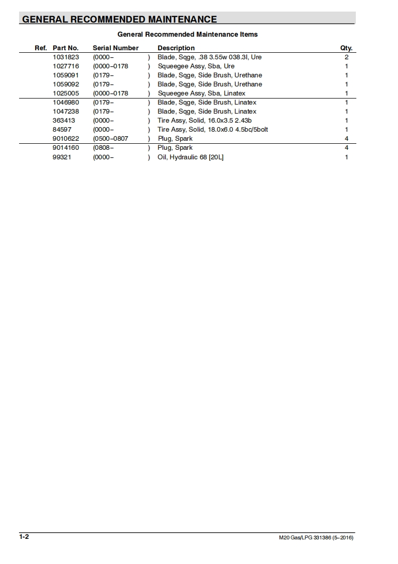 TENNANT坦能M20-(Gas_LPG)-Scrubber-Sweeper零部件与电器原理图手册找手册网25天前发布关注私信14.85MB424页044TENNANT坦能M20-(Gas_LPG)-Scrubber-Sweeper零部件与电器原理图手册此内容为付费资源,请付费后查看¥19¥21黄金会员免费钻石会员免费登录购买付费资源 第1页 / 共424页 第2页 / 共424页 第3页 / 共424页 第4页 / 共424页 第5页 / 共424页 第6页 / 共424页 第7页 / 共424页 第8页 / 共424页 第9页 / 共424页 第10页 / 共424页 试读已结束,还剩414页,您可下载完整版后进行离线阅读 THE ENDTENNANT(坦能) 文本预览 TENNANTM20(Gas/LPG)Scrubber-SweeperParts Manual@0SeH2Foam Scrubbing TechnologyAn ORBIOTechnology时职331386For the latest Parts manuals and otherlanguage Operator manuals,visitRev.18(5-2016)www.tennantco.com/manualsWOOJMW 查看更多 收起部分 喜欢就支持一下吧收藏