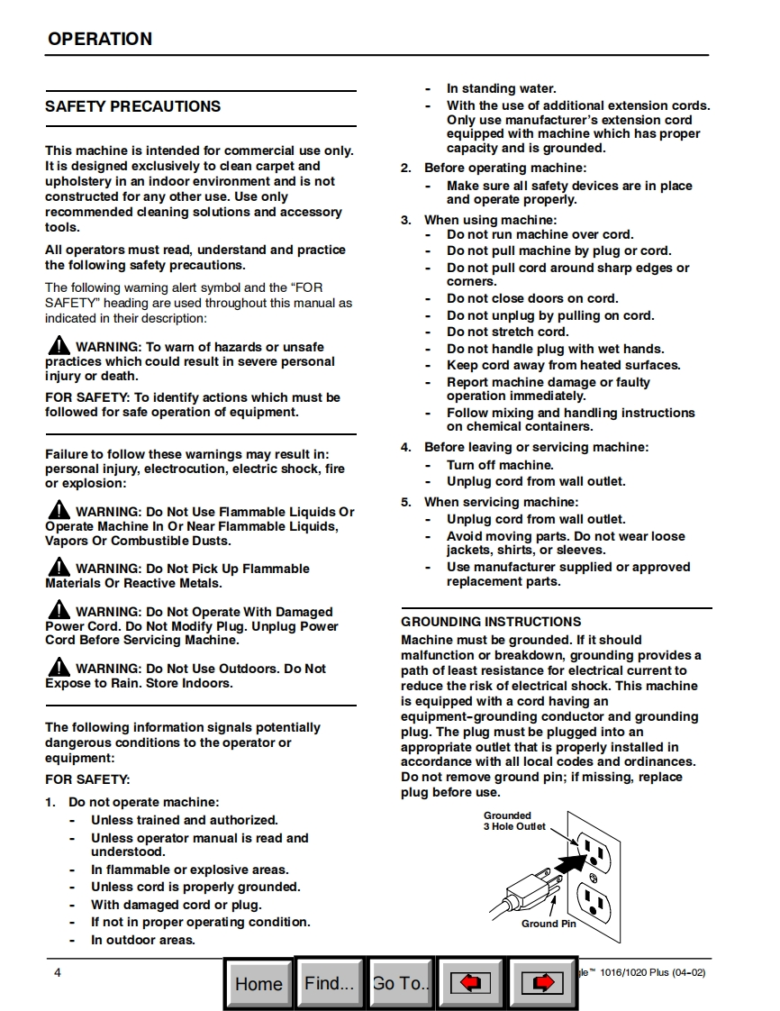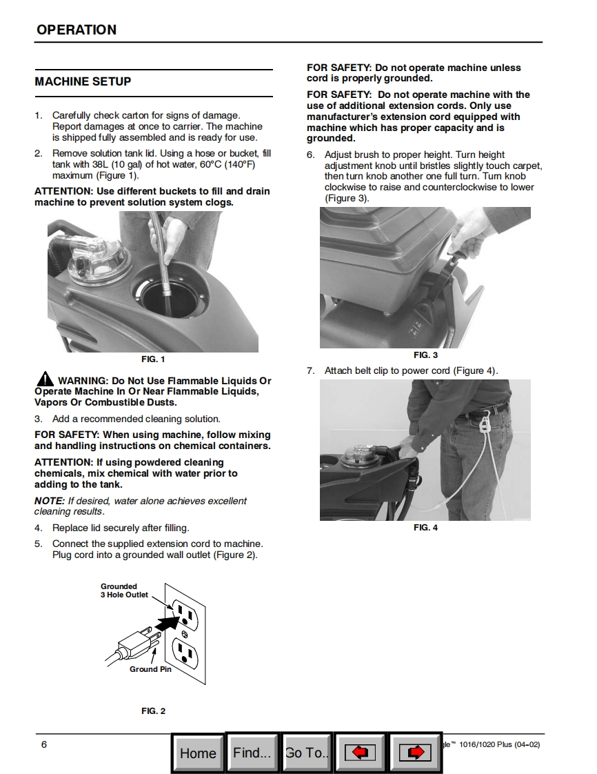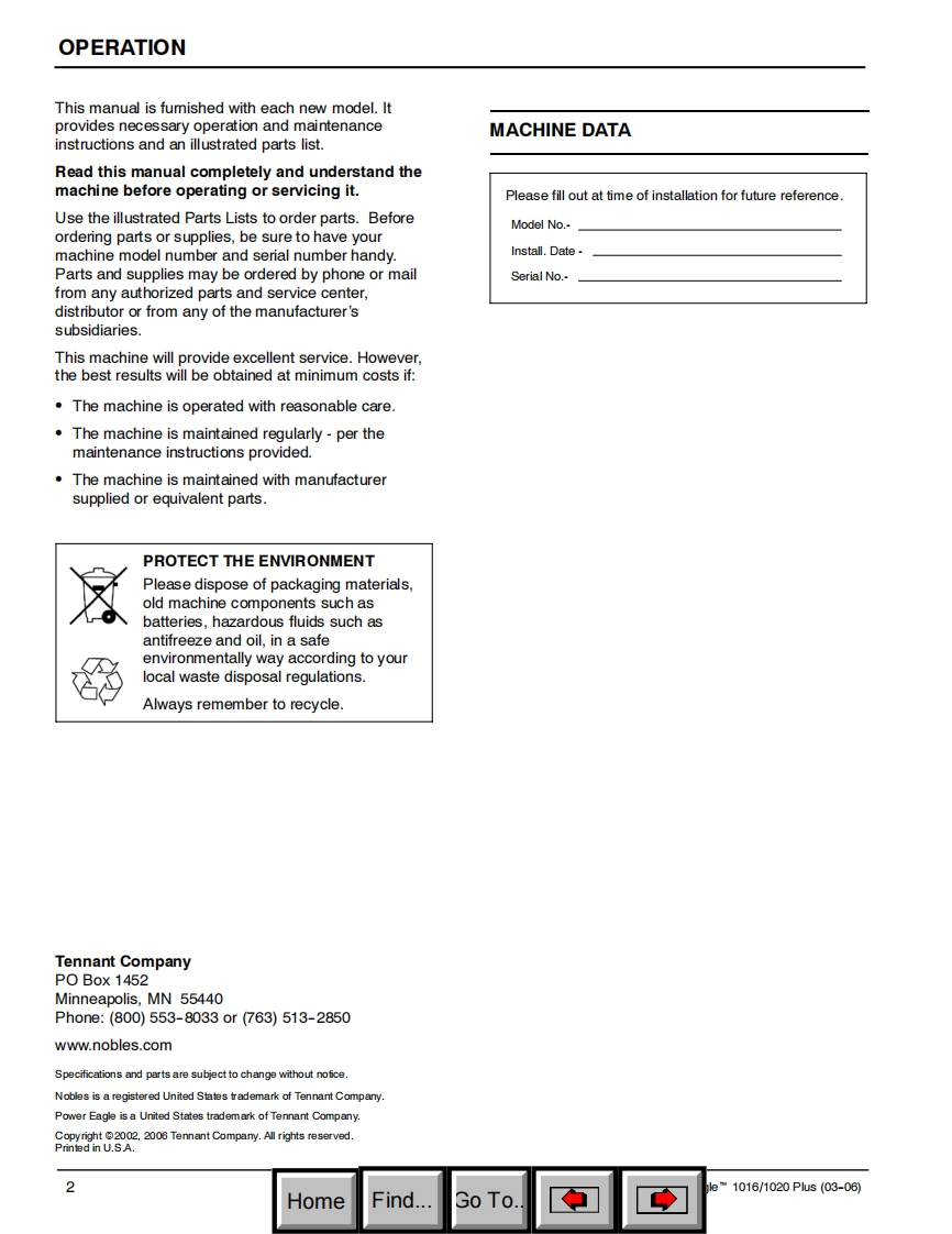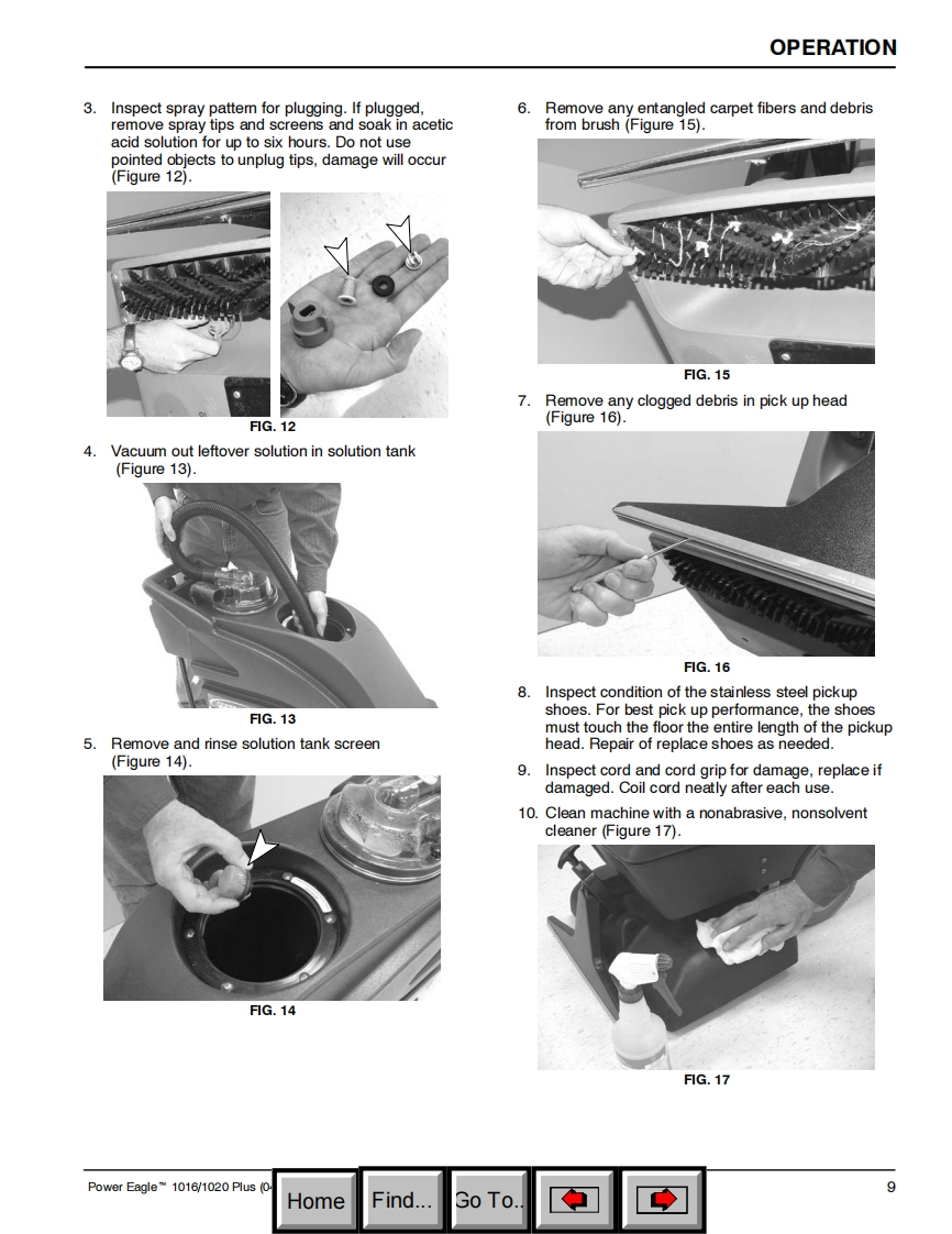 ENGLISH-ESPANOL-FRANCAISONOBLESPower EagleN1016/1020PusSelf-Contained Carpet ExtractorAspirador para moquetas con deposito incorporadoNettoyeur de moquettes autonomeModel No.:Operator and Parts Manual1002564-1016Manual del Operador y Piezas1002556-1020Operateur Manuel et Liste Des PiecesONOBLES613276ReV.02(03-2006)HomeFind...Go To.