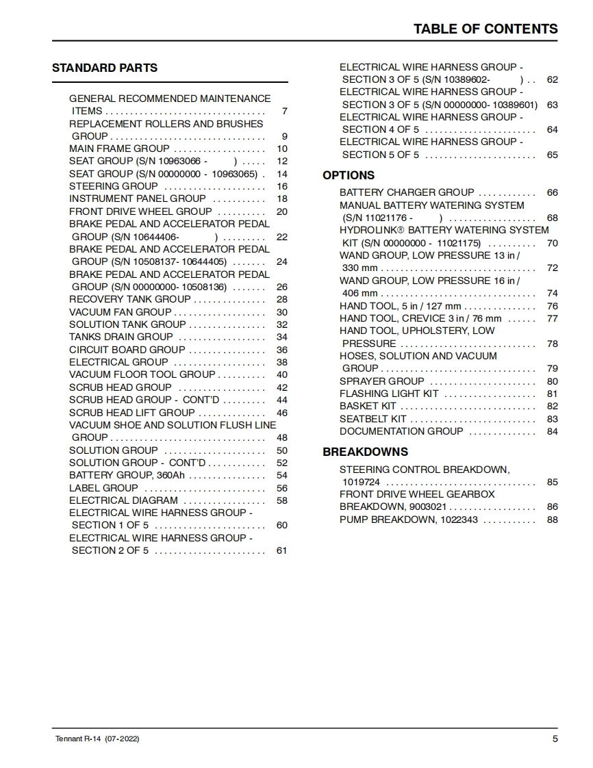 TENNANTR14Dual Technology Rider Carpet CleanerParts Manual00READY SPACEMore than clean,it's ReadySpace.Hygenic Fully Cleanable TanksNorth America APAC回▣1032125For the latest Parts manuals and otherlanguage Operator manuals,visit:Rev.12(07-2022)www.tennantco.com/manuals