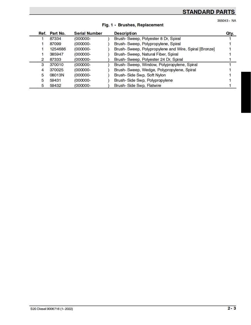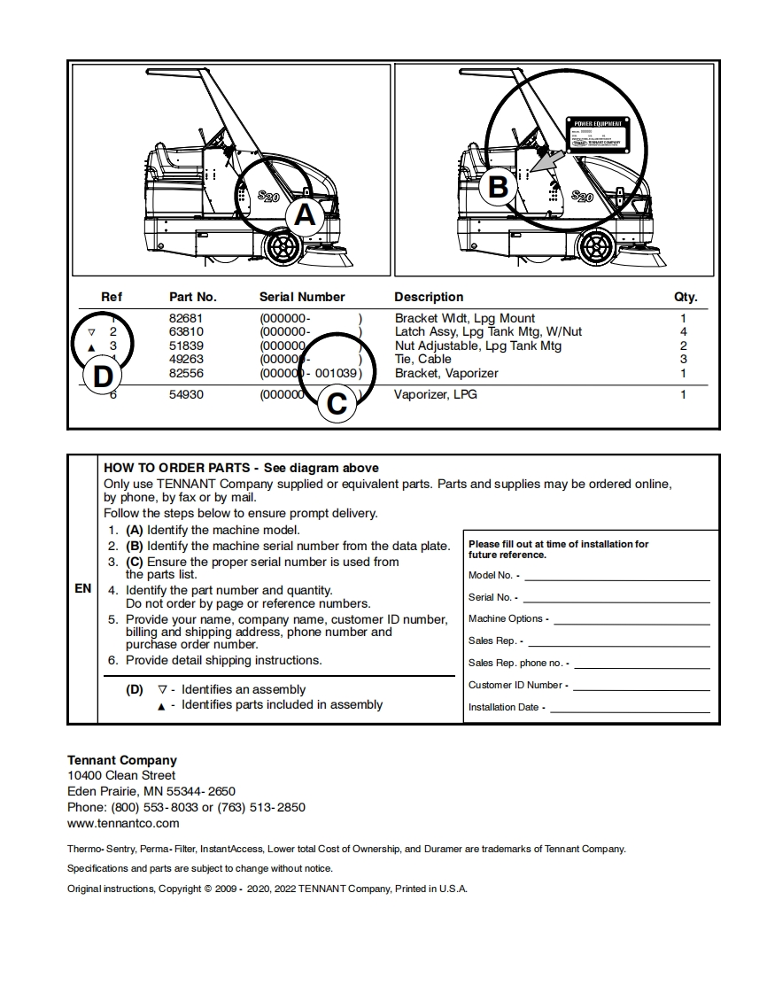 TENNANTS20(Diesel)SweeperParts Manual@0SweepMax TM SystemShakeMax TM 360TennantTrue PartsIRIS a Tennant TechnologyNorth America /InternationalFor latest parts manual or other9006716Operator language manual,visit:Rev.15(1-2022)www.tennantco.com/manuals