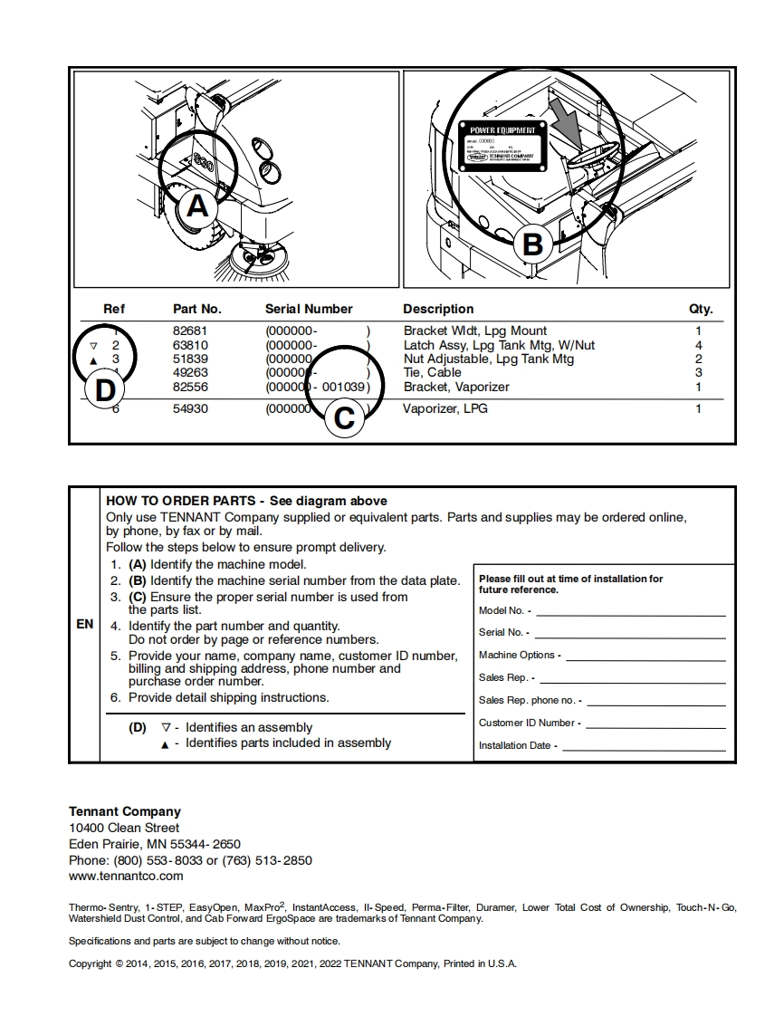 TENNANTS30(Gas/LPG)(SN/006501-SweeperParts Manual@SweepMax Plus SystemTennantTrue⑧PartsIRIS a Tennant TechnologyNorth America/International织For the latest Parts manuals and other9013316language Operator manuals,visit:Rev.08(4-2022)www.tennantco.com/manuals