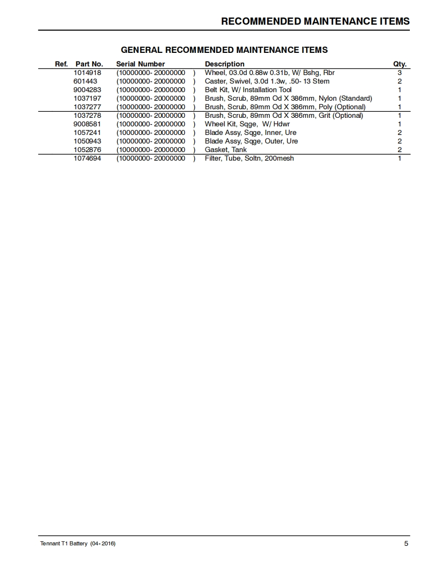 TENNANT坦能T1-Corded-Floor-Scrubber-(S_N-10000000-20000000)零部件说明书手册含电器原理图手册找手册网25天前发布关注私信1.52MB37页035TENNANT坦能T1-Corded-Floor-Scrubber-(S_N-10000000-20000000)零部件说明书手册含电器原理图手册此内容为付费资源,请付费后查看¥19¥21黄金会员免费钻石会员免费登录购买付费资源 第1页 / 共37页 第2页 / 共37页 第3页 / 共37页 第4页 / 共37页 第5页 / 共37页 第6页 / 共37页 第7页 / 共37页 第8页 / 共37页 第9页 / 共37页 第10页 / 共37页 试读已结束,还剩27页,您可下载完整版后进行离线阅读 THE ENDTENNANT(坦能) 文本预览 TENNANTT1Corded Floor Scrubber(S/N10000000-20000000)Parts ManualModels9004191-120VNorth America Japan9006285For the latest Parts manuals and otherlanguage Operator manuals,visit:Rev.06(09-2018)www.tennantco.com/manuals 查看更多 收起部分 喜欢就支持一下吧收藏
