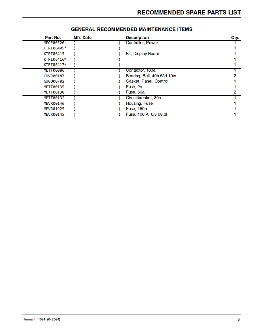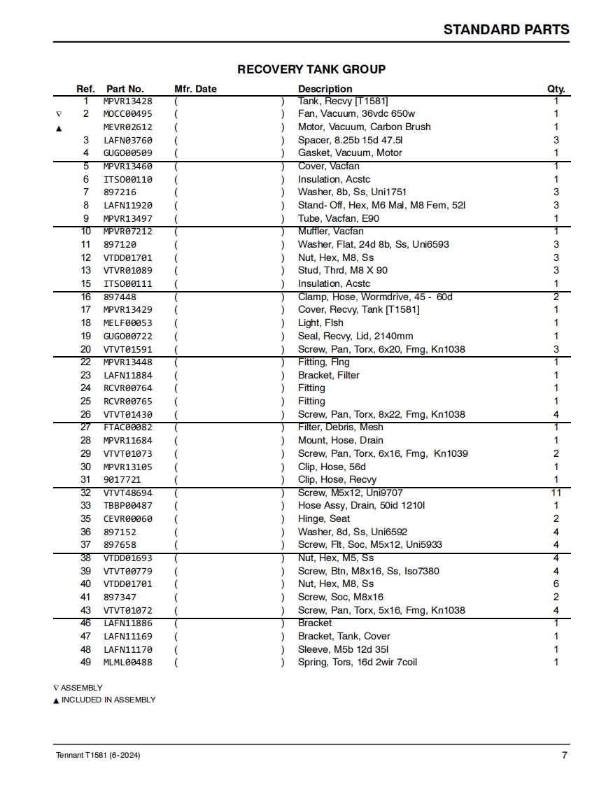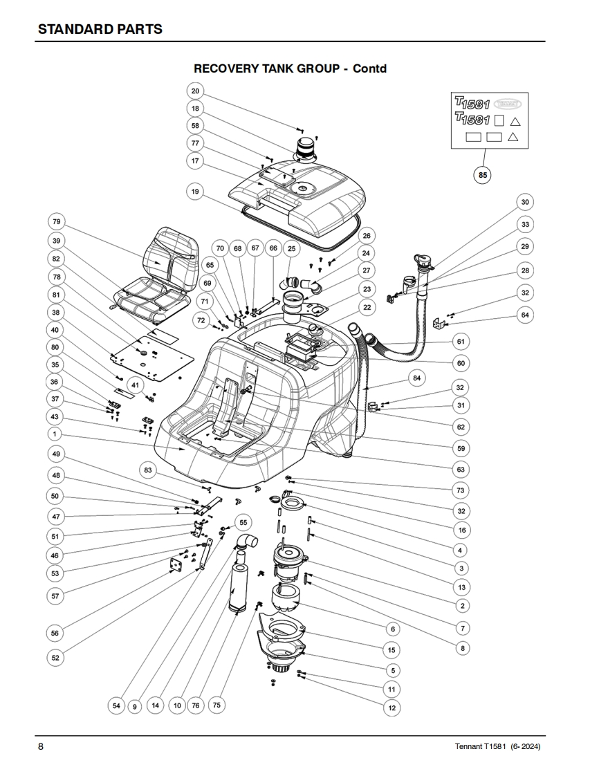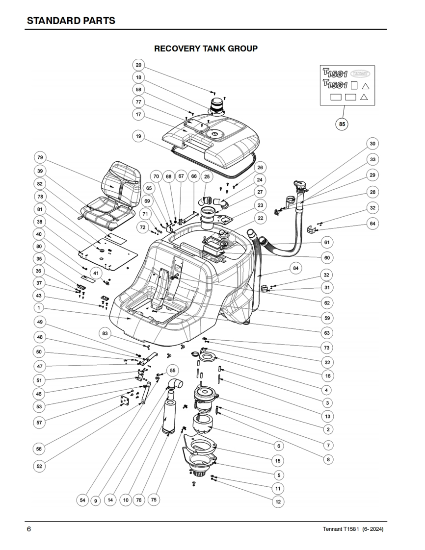 TENNANTT1581Rider Floor ScrubberParts ManualModel Part No.:LPTB03507-SCRUBBER [T1581,105CM DISK,W/O BATT,NA]LPTB03508-SCRUBBER IT1581.100CM CYL.W/O BATT.NA]TennantTrue@PartsNorth AmericaTo view.print or downloadthe parts manual,visit:9022706www.tennantco.com/manualsRev.01(06-2024)