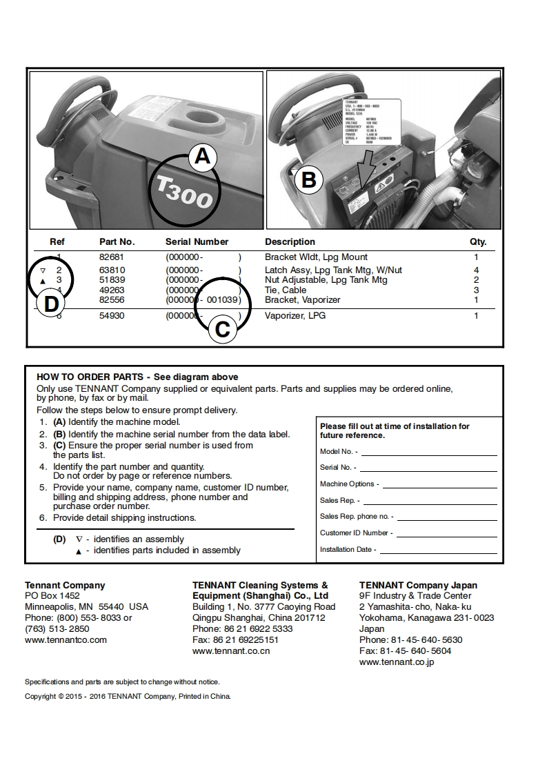 T300TENNANTT300eAUTOMATIC FLOOR SCRUBBERMachine Serial Number Range(S/N30000000-40000000)Parts Manual⑩0Hygenic Fully Cleanable Recovery TankTennant True®PartsIRISR a Tennant TechnologyH2NanoClean▣i▣For the latest Parts manuals and otherlanguage Operator manuals,visit:www.tennantco.com/manualsChina International Japan9014517ReV.03(07-2016)ww.tennantco.com