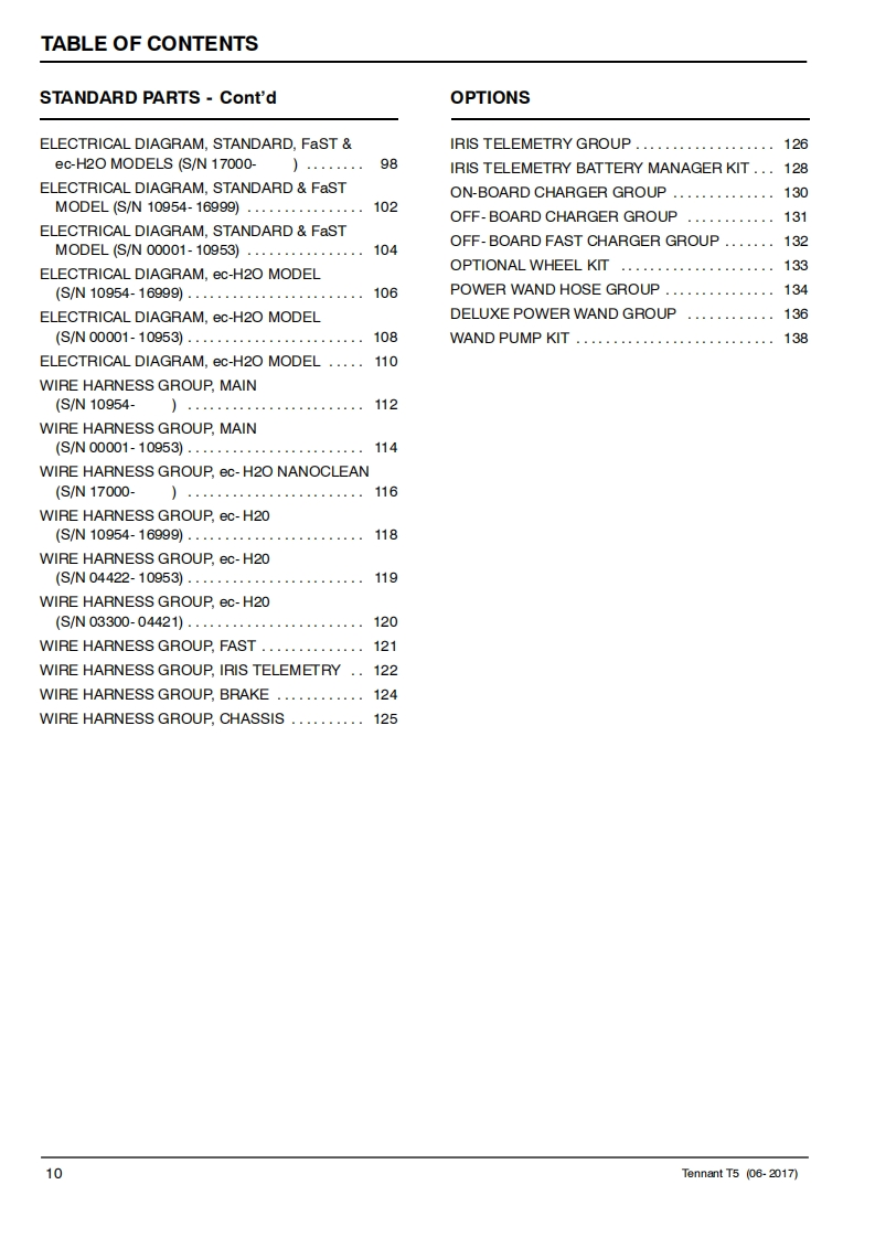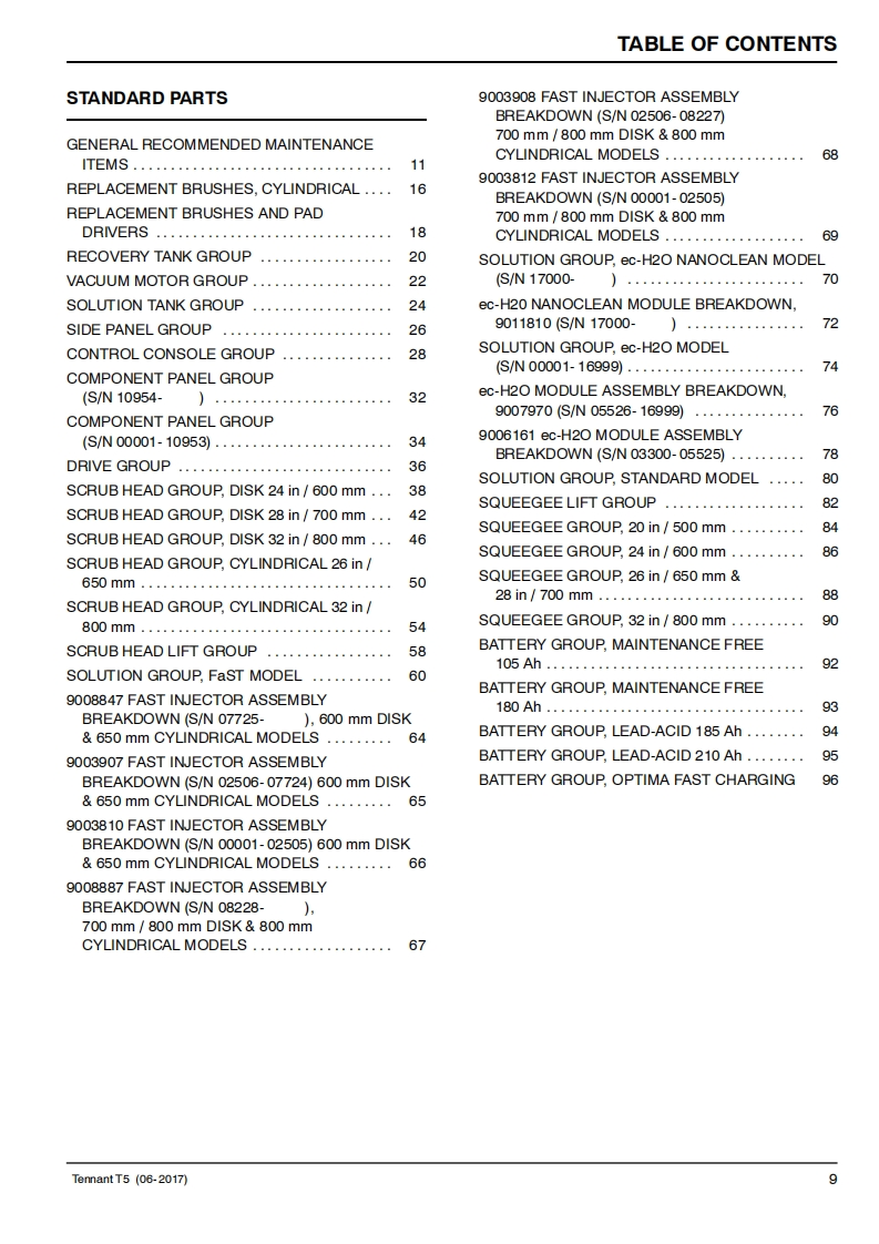 TENNANTT5Walk-Behind ScrubberParts Manual0✉0(S/N00001-Ea灰12Foam Scrubbing TechnologyNanoCleanHygenic Fully Cleanable TanksQA ControlsTennantTrue®PartsIRIS a Tennant TechnologyFor the latest Parts manuals and otherlanguage Operator manuals,visit:▣出www.tennantco.com/manuals9002369Rev.12(06-2017)www.tennantco.comDX