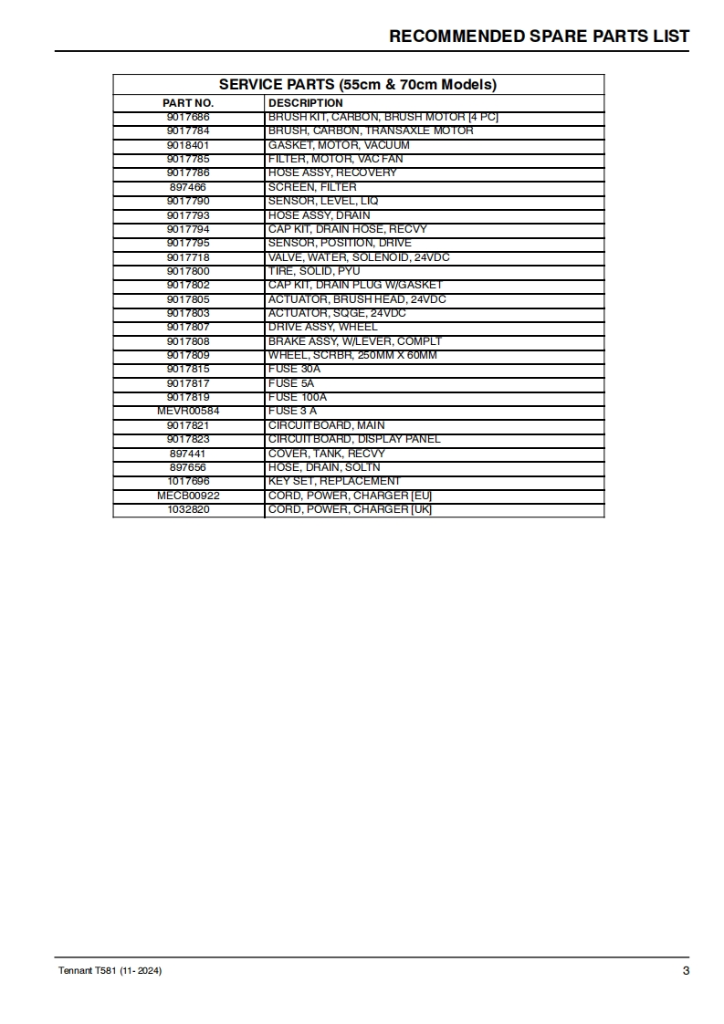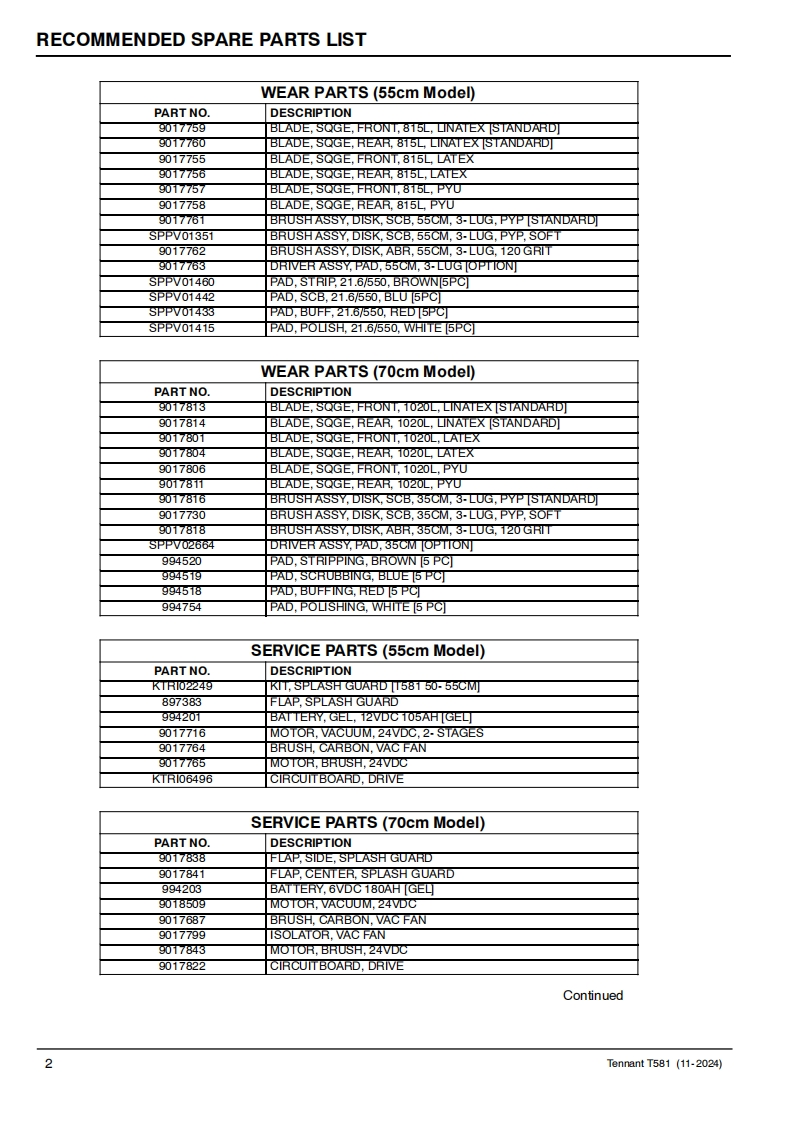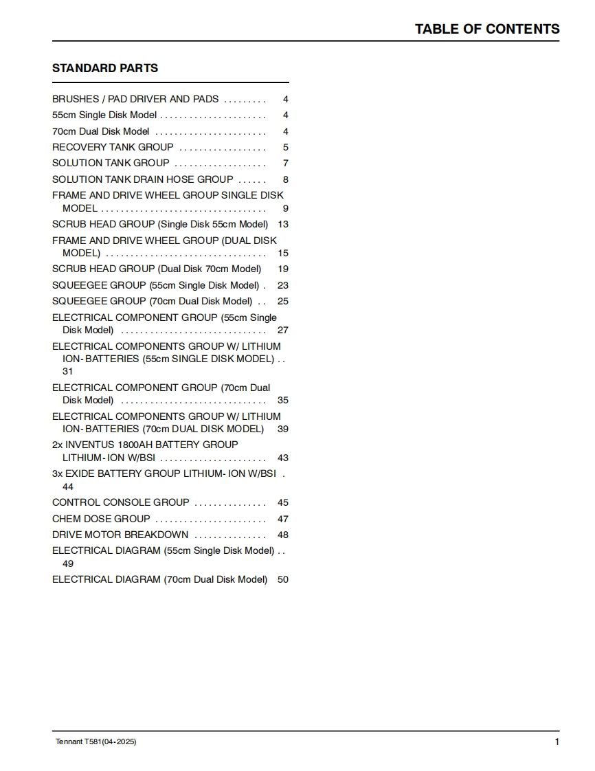 TENNANTT581Rider Floor ScrubberParts Manual0Model Part No.:9021379-SCRUBBER T581 55CM EMEA]9021380-SCRUBBER T581 70CM EMEA]LPTB03743 SCRUBBER [T581.BT55.LI-ION.90AH]LPTB03744 SCRUBBER [T581.BT70.LI-ION.90AH]LPTB03745 SCRUBBER [T581.BT55.LI-ION.50AH]LPTB03746 SCRUBBER [T581,BT70,LI-ION,50AH]LPTB03835 SCRUBBER [T581,55CM,CB]LPTB03836 SCRUBBER [T581.70CM.CB]LITHIUM-IONTennantTrue®PartsEuropeTo view,print or downloadTennant manuals,visit9021578www.tennantco.com/manualsRev.02(04-2025)