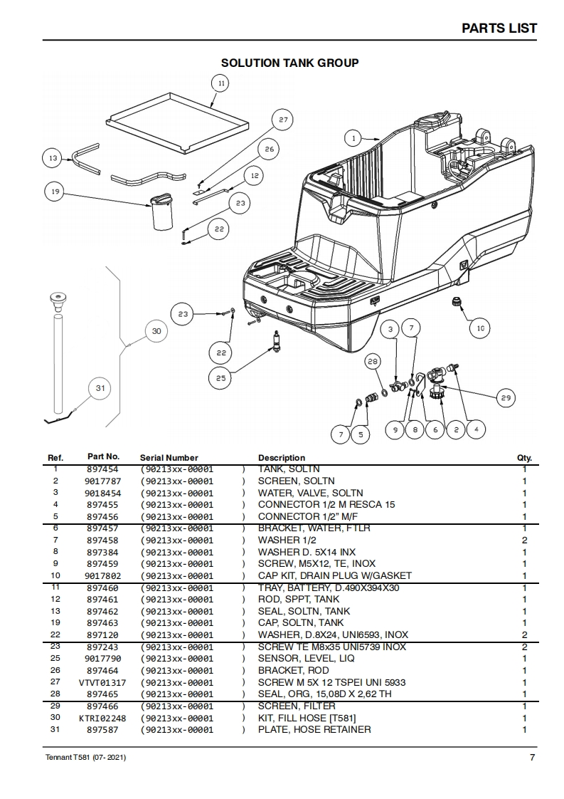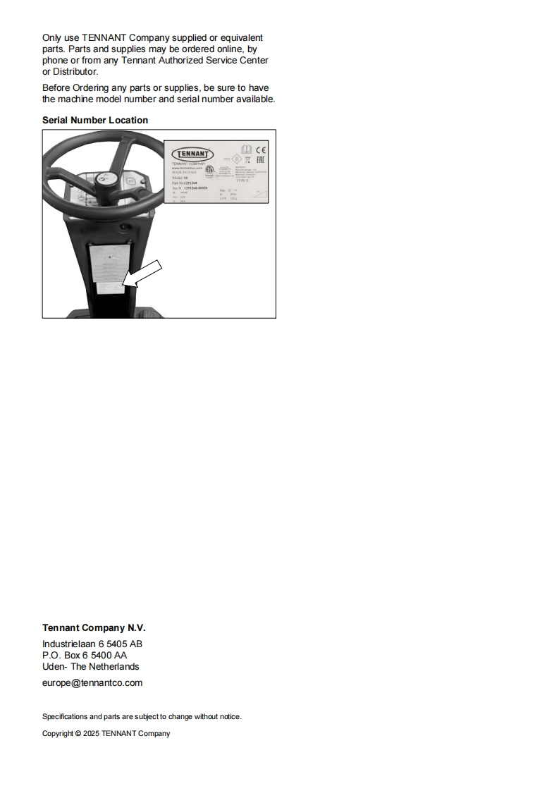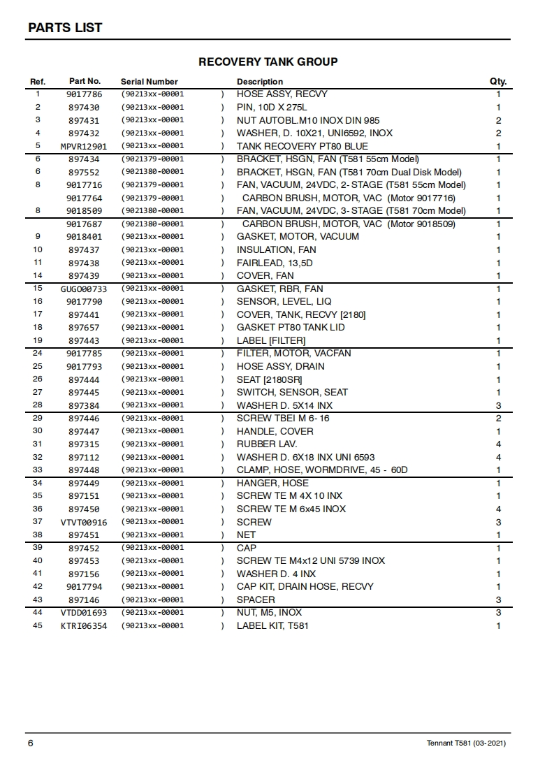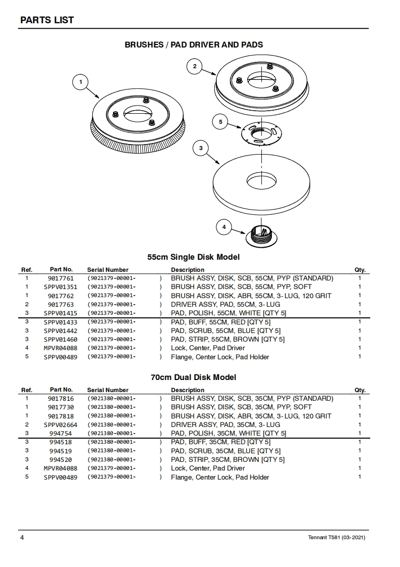 TENNANTT581Rider Floor ScrubberParts Manual0Model Part No.:9021379-SCRUBBER T581 55CM EMEA]9021380-SCRUBBER T581 70CM EMEA]LPTB03743 SCRUBBER [T581.BT55.LI-ION.90AH]LPTB03744 SCRUBBER [T581.BT70.LI-ION.90AH]LPTB03745 SCRUBBER [T581.BT55.LI-ION.50AH]LPTB03746 SCRUBBER [T581,BT70,LI-ION,50AH]LPTB03835 SCRUBBER [T581,55CM,CB]LPTB03836 SCRUBBER [T581.70CM.CB]LITHIUM-IONTennantTrue®PartsEuropeTo view,print or downloadTennant manuals,visit9021578www.tennantco.com/manualsRev.02(04-2025)