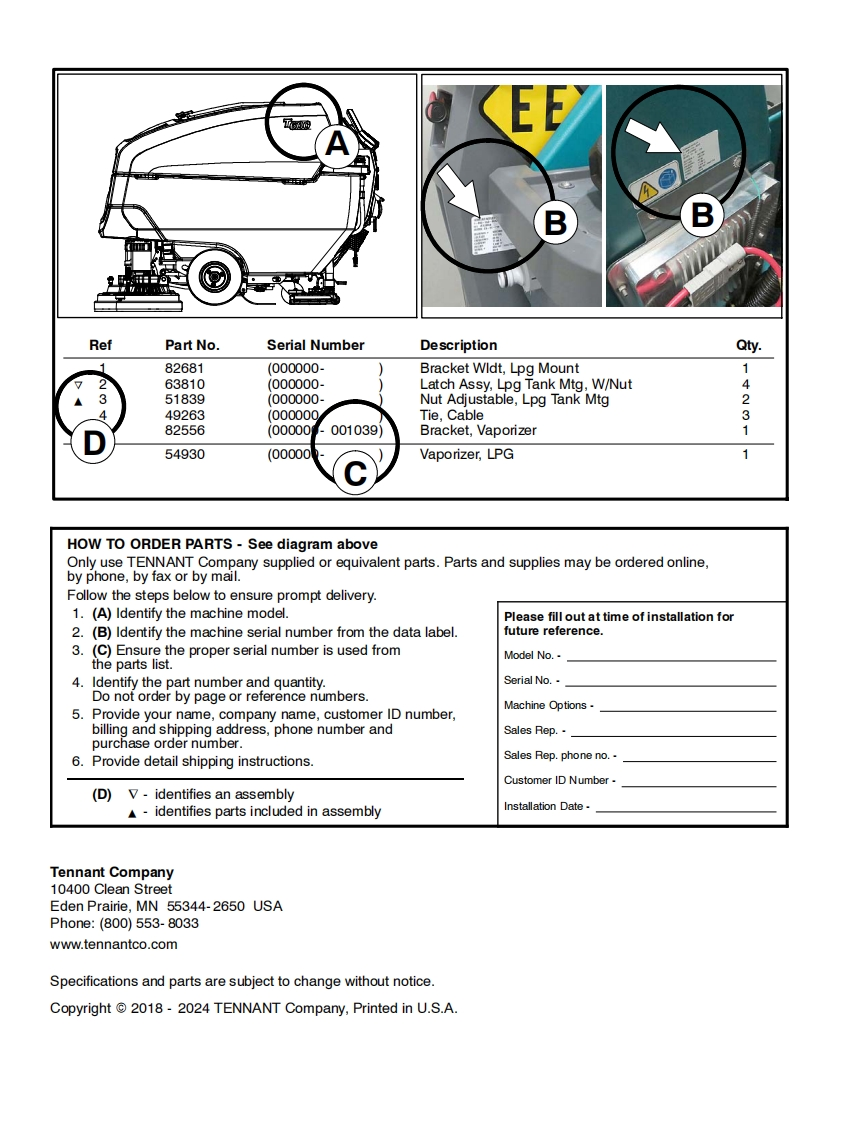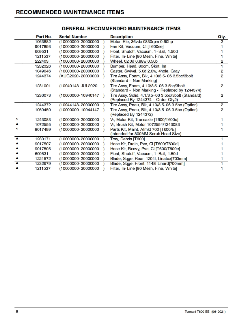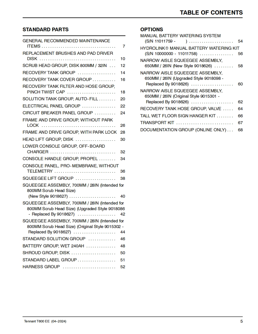 TENNANTT600 EEWalk-Behind Floor ScrubberParts Manual(S/N10000000-20000000)Hygenic Fully Cleanable Recovery TankTennantTrue PartsInsta-FitTM AdapterNorth America International马g9016609For the latest Parts manuals and otherlanguage Operator manuals,visit:ReV.08(09-2024)www.tennantco.com/manual