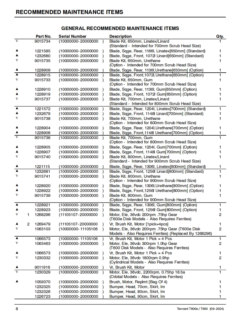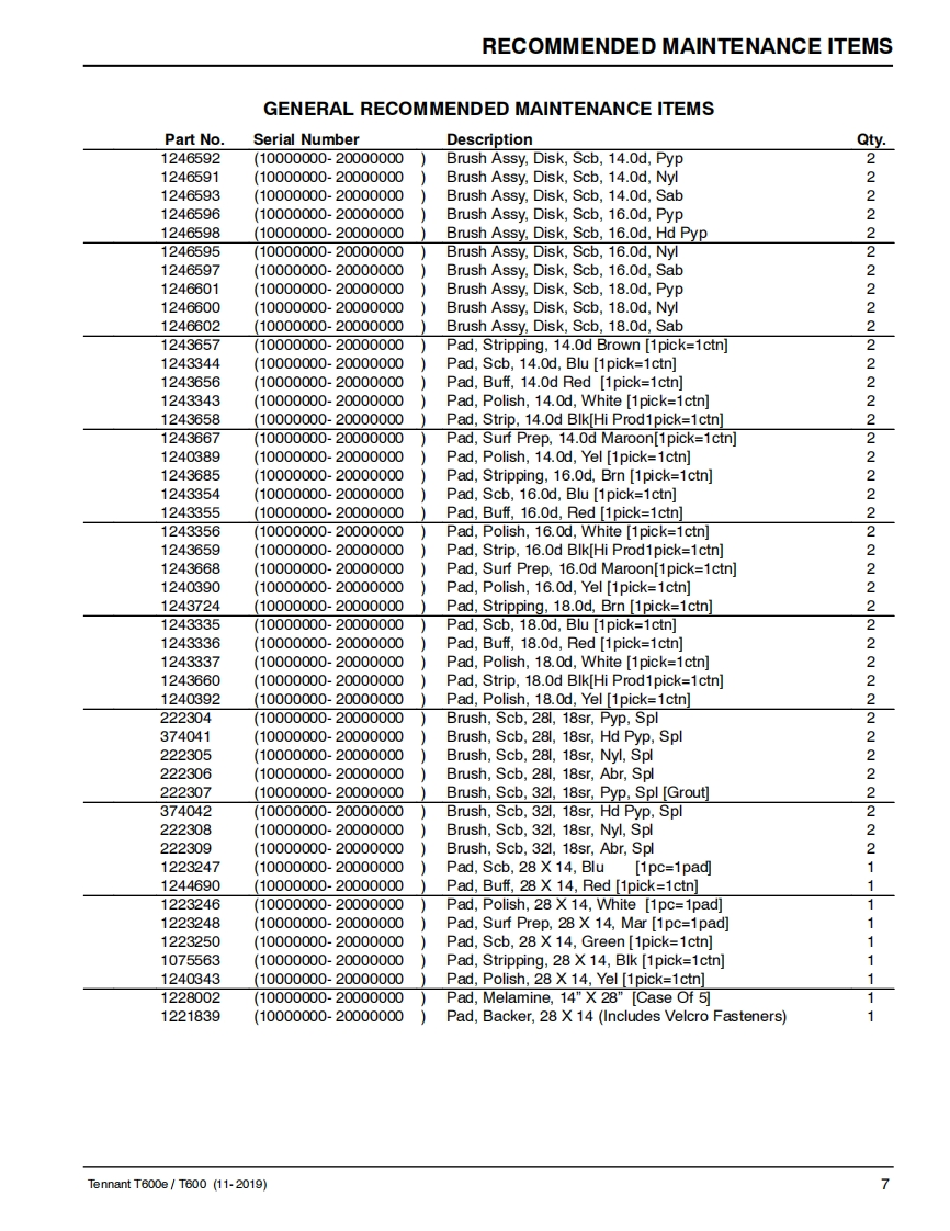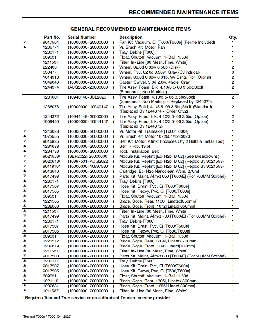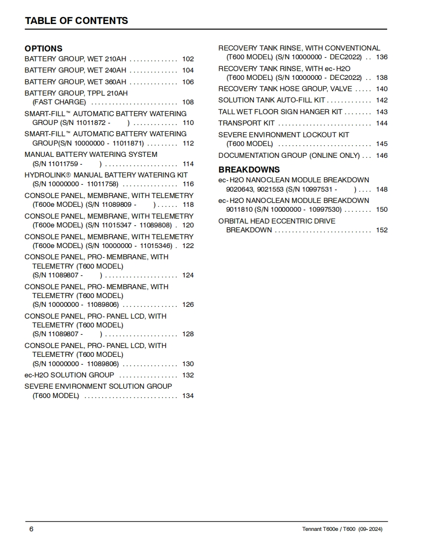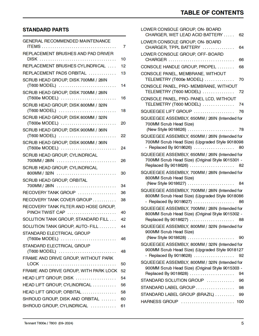 TENNANTT600e/T600Walk-Behind Floor ScrubberParts Manual(S/N10000000-20000000)Hygenic Fully Cleanable Recovery TankTennantTrue®PartsIRIS a Tennant TechnologyPro-Pane/ControlsInsta-FitTM AdapterSmart-FillTM Automatic Battery WateringH2NanoCleanNorth America International马吗9016599For the latest Parts manuals and otherlanguage Operator manuals,visit:ReV.09(09-2024)www.tennantco.com/manual