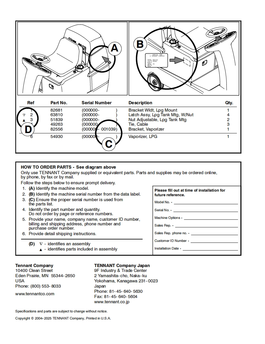 TENNANTT7Rider-ScrubberMachine Serial Number Range(SN10000000-20000000)Parts ManualHygenic Fully Cleanable Recovery TankTennantTrue@Parts/R/S@a Tennant TechnologyNanoCleanNorth America/International Japan9013606回称▣For the latest Parts manuals and otherlanguage Operator manuals,visit:ReV.23(07-2025)www.tennantco.com/manual