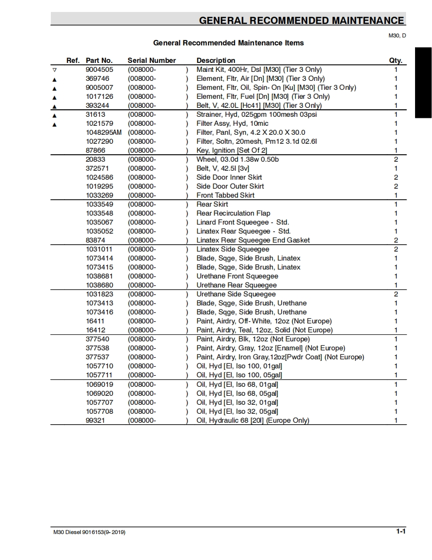 TENNANTM30(Diesel)(S/N008000-)Scrubber-SweeperParts ManualEaS五Foam Scrubbing Technology12An ORBIO TechnologyThe Safe Scrubbing AlternativeES Extended Scrub SystemTennantTrue PartsHygenic Fully Cleanable TanksFloorSmart Integrated Cleaning SystemIRIS a Tennant TechnologyGlobal织For the latest Parts manuals and other9016153language Operator manuals,visit:ReV.09(7-2022)www.tennantco.com/manuals