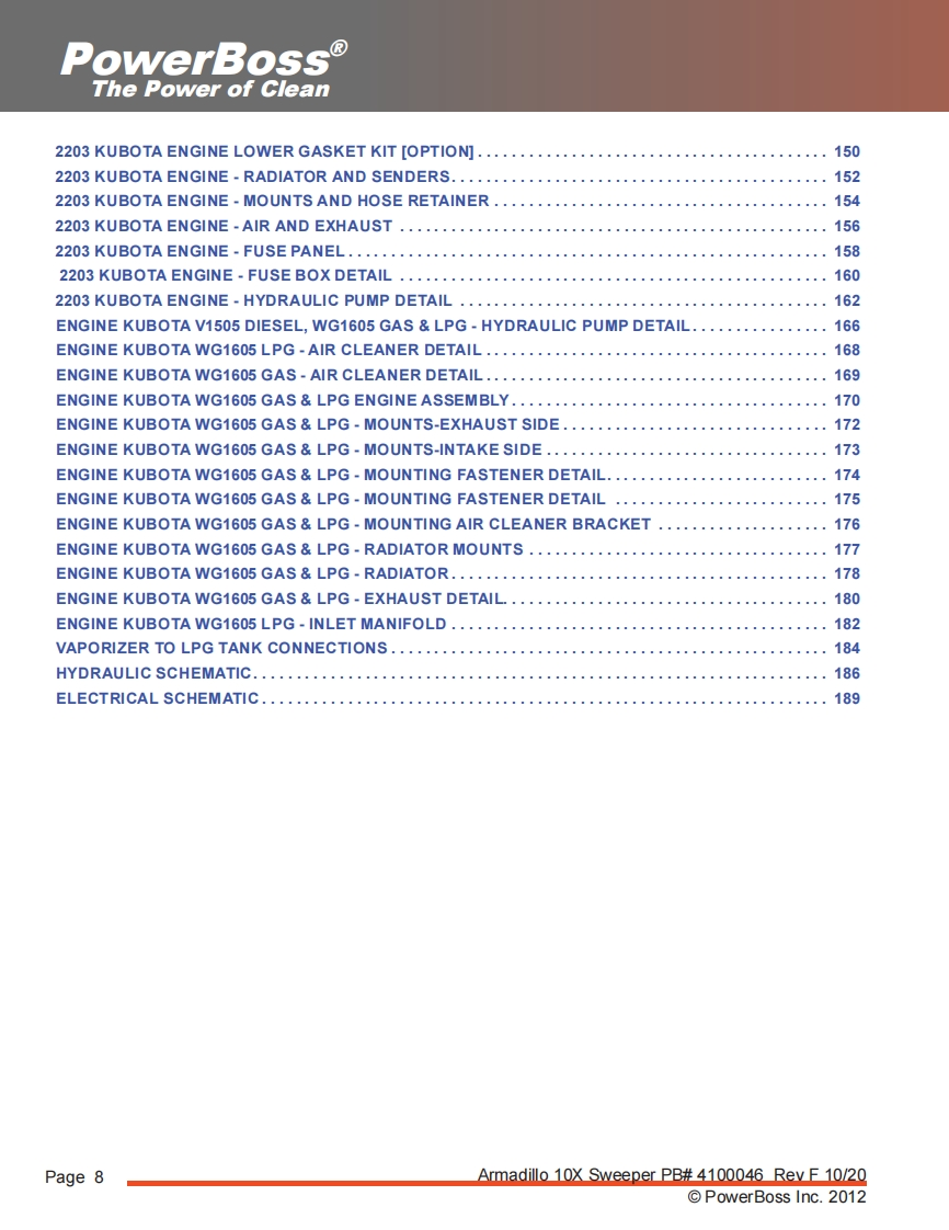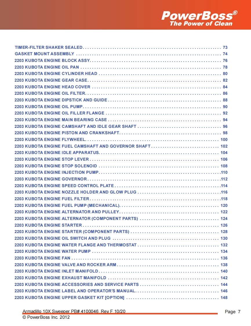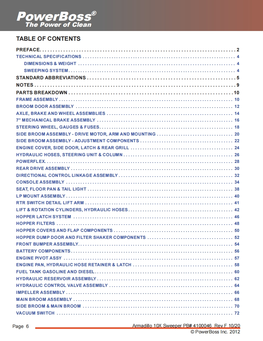 PowerBoss-Armadillo-10X-Parts-Catalog维修零部件手册-SW10X-Series-Rev-F-4100046找手册网11小时前发布关注私信6.39MB194页027PowerBoss-Armadillo-10X-Parts-Catalog维修零部件手册-SW10X-Series-Rev-F-4100046此内容为付费资源,请付费后查看¥19¥21黄金会员免费钻石会员免费立即购买您当前未登录!建议登陆后购买,可保存购买订单付费资源 第1页 / 共194页 第2页 / 共194页 第3页 / 共194页 第4页 / 共194页 第5页 / 共194页 第6页 / 共194页 第7页 / 共194页 第8页 / 共194页 第9页 / 共194页 第10页 / 共194页 试读已结束,还剩184页,您可下载完整版后进行离线阅读 THE ENDPower-Boss 文本预览 PowerBoss®The Power of CleanParts CatalogArmadillo 10X SeriesModels:Gasoline,LP DieselPowerBossPowerBoss®,Minuteman International,lnc.A Member of the Hako Group4100046Rev.F1020Effective Serial No.20PB1343 查看更多 收起部分 喜欢就支持一下吧收藏