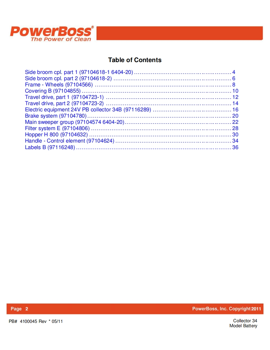PowerBoss-Collector-34-Parts-Manual维修零部件手册找手册网11小时前发布关注私信1.74MB40页026PowerBoss-Collector-34-Parts-Manual维修零部件手册此内容为付费资源,请付费后查看¥19¥21黄金会员免费钻石会员免费立即购买您当前未登录!建议登陆后购买,可保存购买订单付费资源 第1页 / 共40页 第2页 / 共40页 第3页 / 共40页 第4页 / 共40页 第5页 / 共40页 第6页 / 共40页 第7页 / 共40页 第8页 / 共40页 第9页 / 共40页 第10页 / 共40页 试读已结束,还剩30页,您可下载完整版后进行离线阅读 THE ENDPower-Boss 文本预览 PowerBoss°The Power of CleanParts CatalogCollector 34Model BatteryPowerBossPowerBoss,IncA Member Of The Hako GroupPB#4100045Rev*05/11 查看更多 收起部分 喜欢就支持一下吧收藏