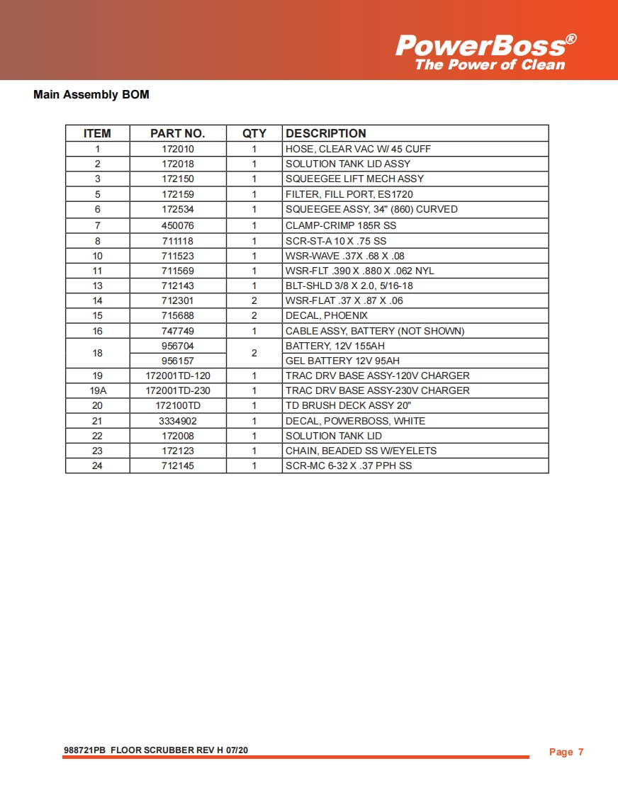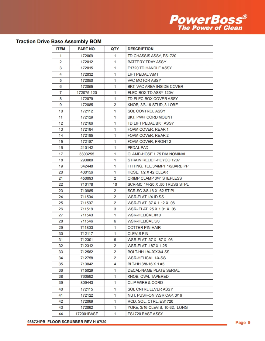PowerBoss-Phoenix-20D-TD-Parts-Catalog维修零部件手册-Rev-H-988721找手册网11小时前发布关注私信2.26MB48页025PowerBoss-Phoenix-20D-TD-Parts-Catalog维修零部件手册-Rev-H-988721此内容为付费资源,请付费后查看¥19¥21黄金会员免费钻石会员免费立即购买您当前未登录!建议登陆后购买,可保存购买订单付费资源 第1页 / 共48页 第2页 / 共48页 第3页 / 共48页 第4页 / 共48页 第5页 / 共48页 第6页 / 共48页 第7页 / 共48页 第8页 / 共48页 第9页 / 共48页 第10页 / 共48页 试读已结束,还剩38页,您可下载完整版后进行离线阅读 THE ENDPower-Boss 文本预览 PowerBoss®The Power of CleanPHOENIX 20FLOOR SCRUBBER DISC TRACTION DRIVEPHOENIXPowerBossPowerBoss,Inc.A Member of The Hako Group988721PB Rev H 07/20 查看更多 收起部分 喜欢就支持一下吧收藏