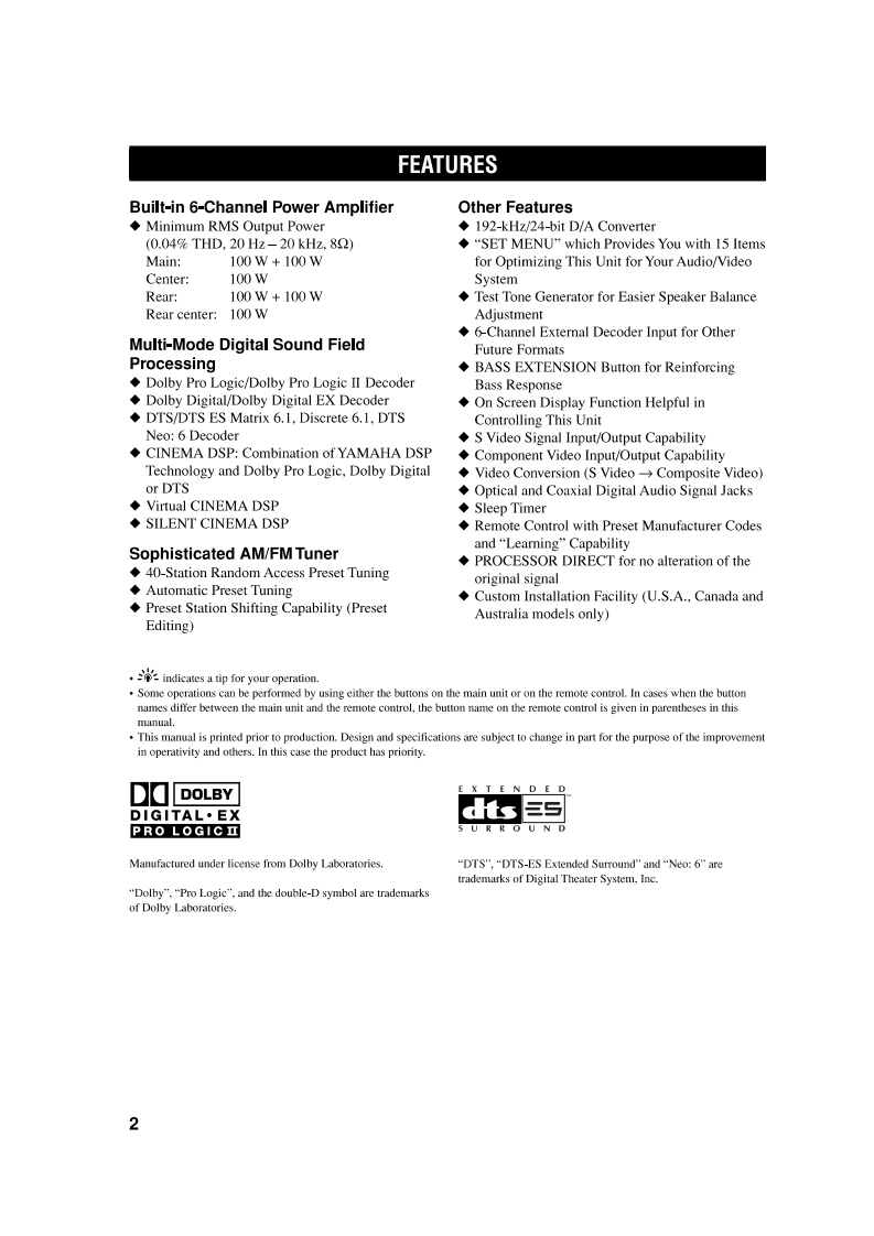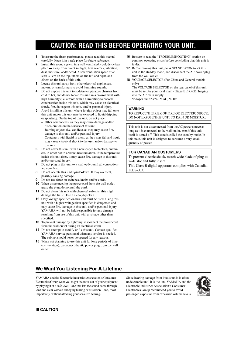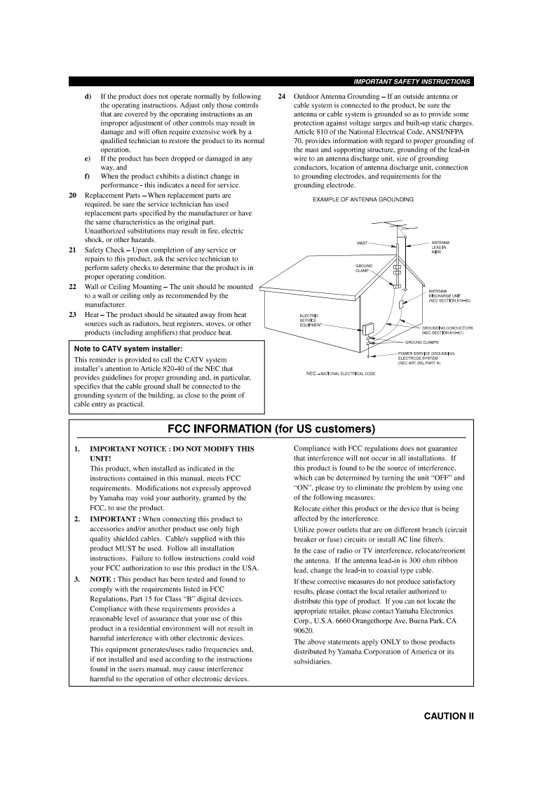 回YAMAHARX-V1300AV ReceiverIMPORTANTPlease record the serial number of this unit in thespace below.MODEL:Serial No.:The serial number is located on the rear of the unitRetain this Owner's Manual in a safe place for futureOWNER'S MANUALreference.