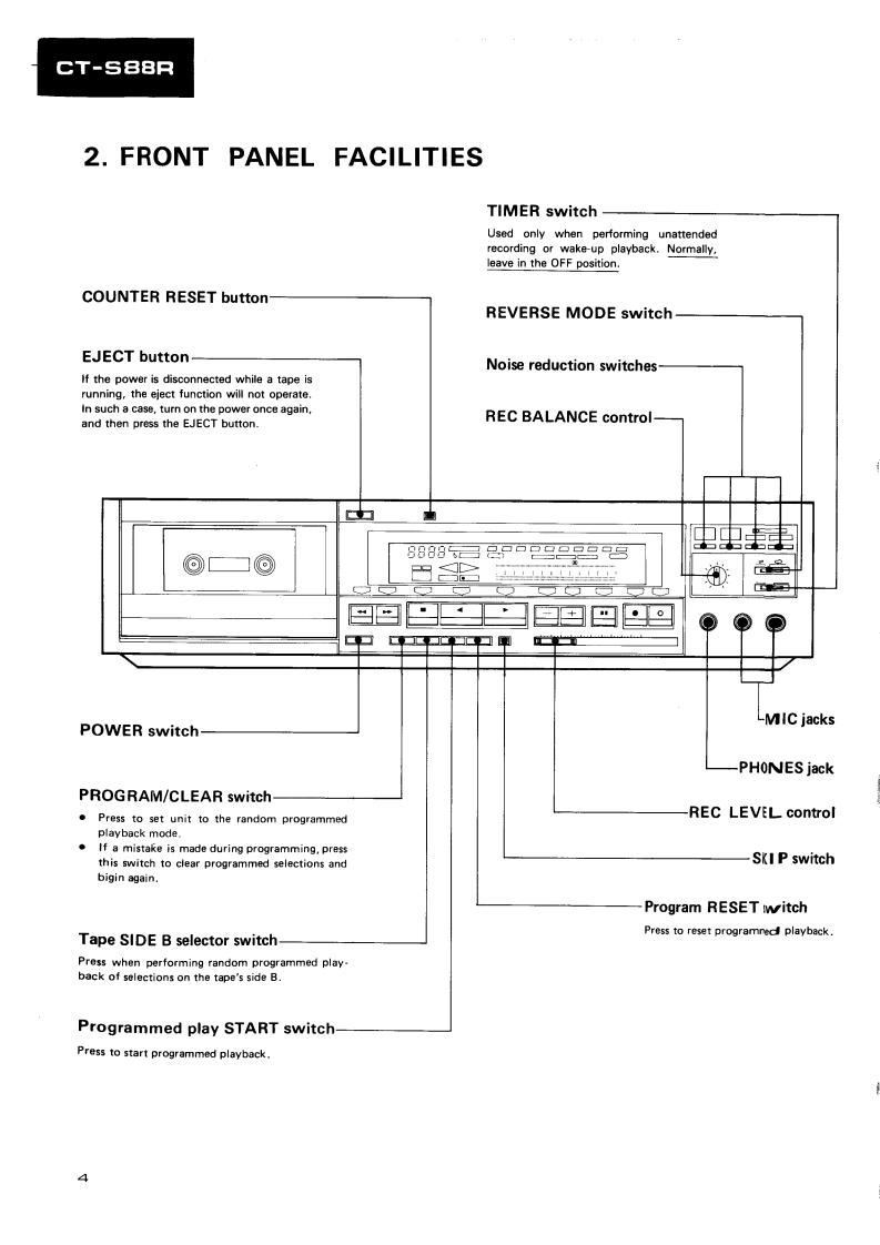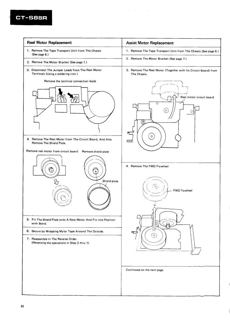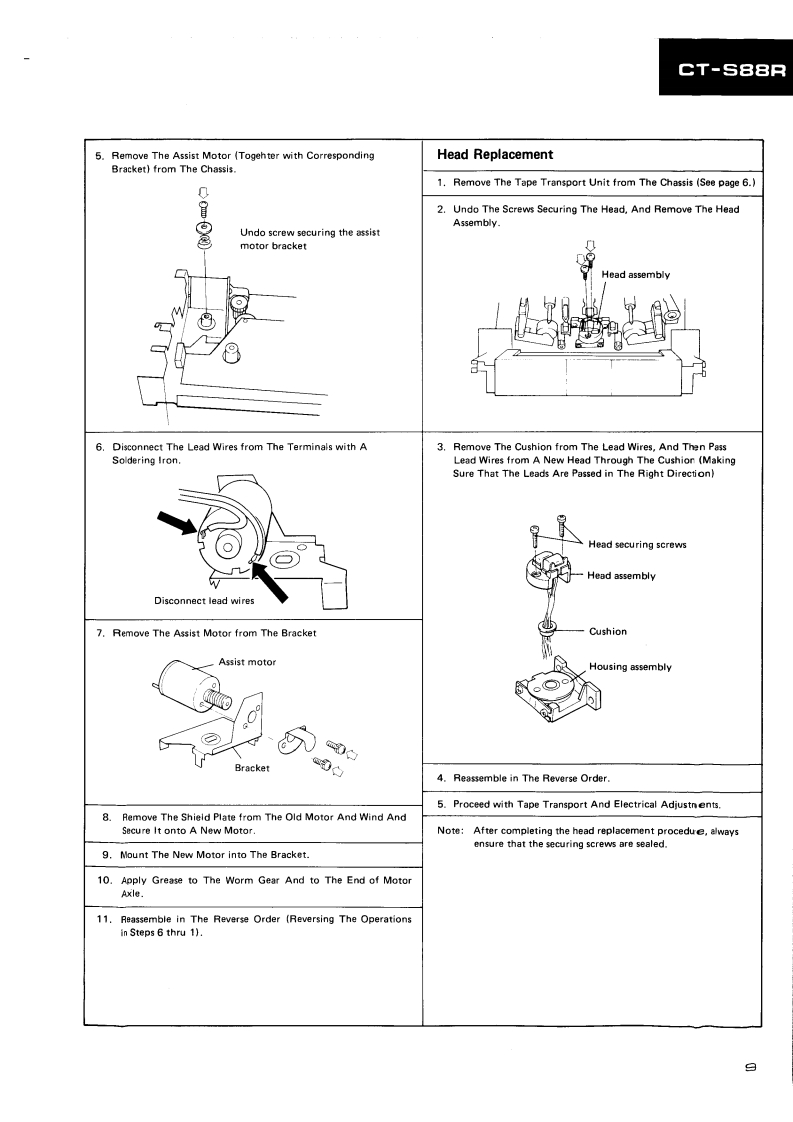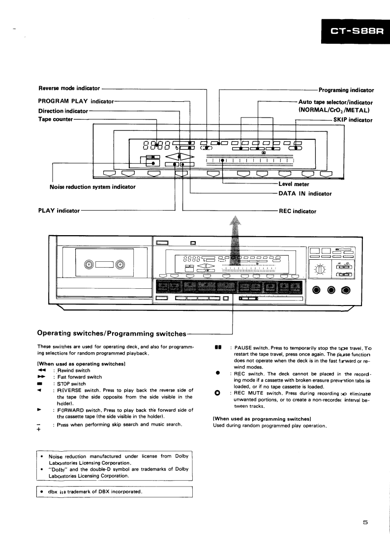 PIONEERD39ServiceManualREPAIR ADJUSTMENTSORDER NO.ARP-835-0STEREO CASSETTE TAPE DECKCT-S88RCT-S88RCBKJ.Model CT-S88R [BK]is a black version of the CT-S88R..Model CT-S88R [BK]/D/G (U.S.Military model)has wooden side panels and the remote control IN/OUTterminals..Models CT-S88R [BK](black)and CT-S88R (silver)come in versions distinguished as follows:Applicable modelTypePower requirementDestinationCT-S88RIBK】CT-S88RKU0AC120V onlyU.S.A.KCOAC120V onlyCanadaHEM00AC220V(240V)European continentHB0AC240V(220V)United KingdomD0AC120V/220V/240V (switchable)General marketD/G0AC120V/220V/240V (switchable)U.S.MilitaryChange the primary wiring of the powertra nsformer..This service manual is applicable to the KU,KC,HEM,HB,D and D/G types..As to the KC,HEM,HB,D and D/G types,please refer to pages 57-61..As to the circuit descriptions,please refer to the CT-S88R service manual (ARP-836).Ce manual d'instruction se refere au mode de reglage en frangais.●Este manual de servicio trata del metodo ajuste escrito en espanol.PIONEER ELECTRONIC CORPORATION 4-1.Meguro 1-chome.Meguro-ku.Tokyo 153.JapoPIONEER ELECTRONICS [USA]INC.P.O.Box 1760,Long Beach,California 90801 U.S.A.TEL:B00421-1404.o1237-0424PIONEER ELECTRONIC [EUROPE]N.V.Keetberglaan 1.2740 Beveren.Belgum TEL:03/775280BPIONEER ELECTRONICB AUSTRALIA PTY.LTD.178-184 Boundary Road,Braeside.Victoria 3195.AustraaTEL:1031590-9911YHMAY 1985 Prated in Japan