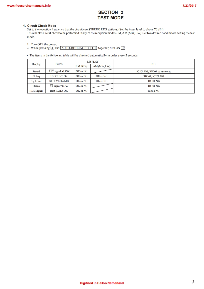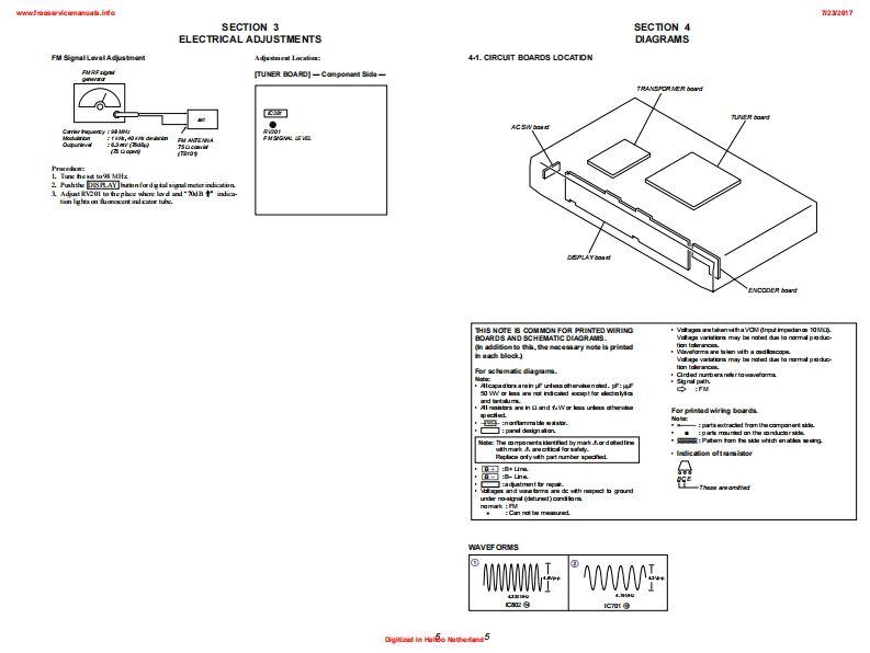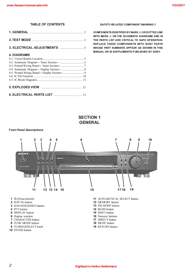www.freeservicemanuals.info17ST-SE520SERVICE MANUALAEP ModelUK ModelSPECIFICATIONSFM tuner sectionAM tuner sectionGeneralFrequency range875-108.0MHzFrequency rangeMW:522-1,611kHzPower requirements220-230V.(9 kHz step)AC 50/60 HzAerial terminals750,unbalancedLW:144-288kHz(1 kHz step)Power consumption10WIntermediate frequency10.7 MHzIntermediate frequencyDimensions430×82×295mm450 kHz(w/h/d)Sensitivityat 26 dB quieting(mono)10.3 dBfUsable Sensitivity(with AM loopWeight2.5kg0.9uV/750aerial)·Audio cord(I)at 46 dB quietingMW:200 uV/mSupplied accessories(stereo)38.5 dBfLW:700 uV/m·AM loop aerial(I)23μV/75QFM wire aerial (1)Signal-to-noise ratioMW:54 dBUsable sensitivity (IHF)10.3 dBf,0.9 pV/750EON connecting cord (1)(50 mV/m.9993HZ】Design and specifications areS/Nat 40 kHz deviationLW:50 dBsubject to change without notice.74 dB (mono),(50 mV/m,69 dB(stereo)216 kHz)Harmonic distortion0.09%(mono,0.18%(stereo】Harmonic distortion0.3%(50mV/mFrequency response30 Hz -15 kHz400Hz)(+0.5/-1.0dB)Separation45 dB at 1 kHzSelectivitv50 dBSelectivityat 400 kHz85 dBat 300 kHz70 dBOutputat 40 kHz deviation600mVFM STEREO FM-AM TUNERSONYDigitized in Heiloo Netherland