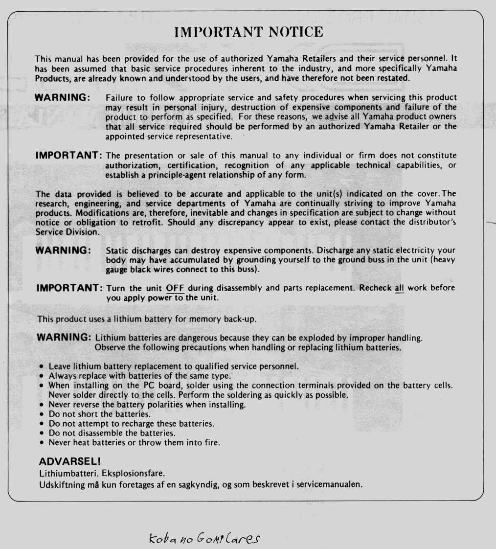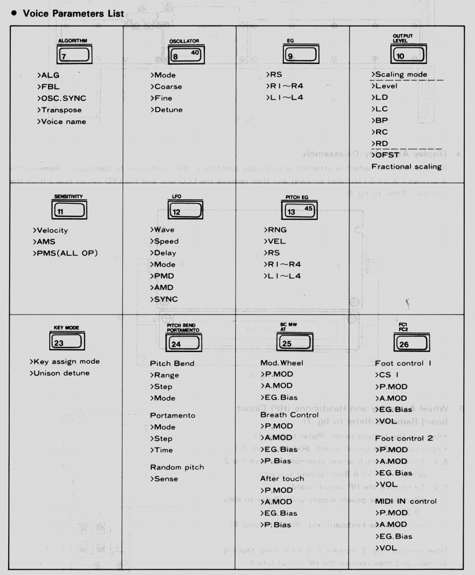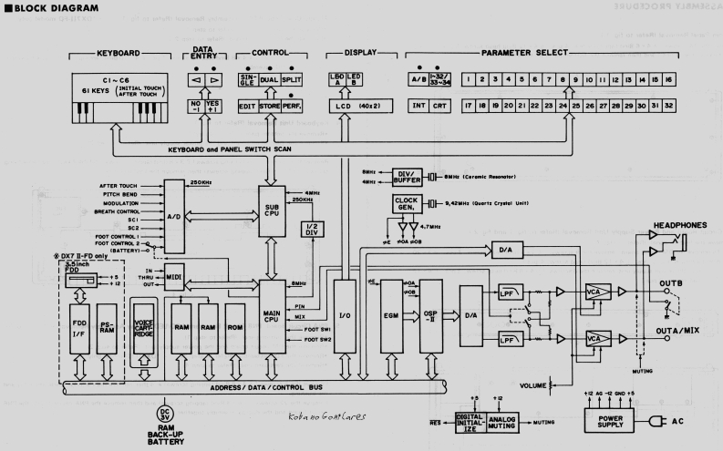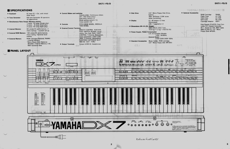 DIGITAL PROGRAMMABLE ALGORITHM SYNTHESIZERy○>X☑皿=→/→SERVICE MANUALd用时ma话。n静甲中-DX7ⅡFDYAMAH积DX7II·D■CONTENTS●SPECIFICATIONS·PANEL LAYOUT22.CIRCUIT BOARDS LAYOUT·BLOCK DIAGRAM6.DISASSEMBLY PROCEDURE●PARAMETERS LIST.INITIALIZING…2.MEMORY CONFIGURATION·ERROR MESSAGES1●MIDI DATA F0RMAT….MIDI IMPLEMENTATION CHART24LSI DATA TABLE.5·IC BLOCK DIAGRAM2·CIRCUIT BOARDS0·PARTS LIST006725Koba no GontCaresSINCE 1887YAMAHANIPPON GAKKI CO..LTD.HAMAMATSU.JAPAN2.0K-872 e Printed in Japan '87.1