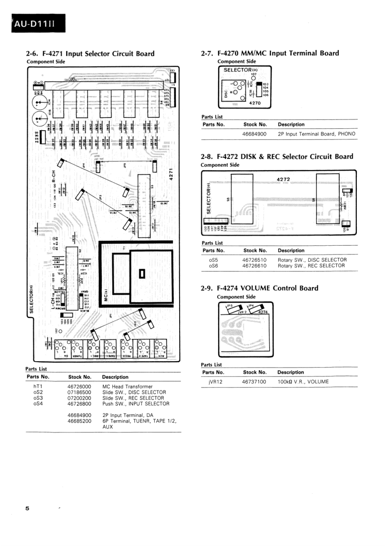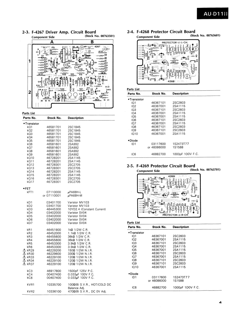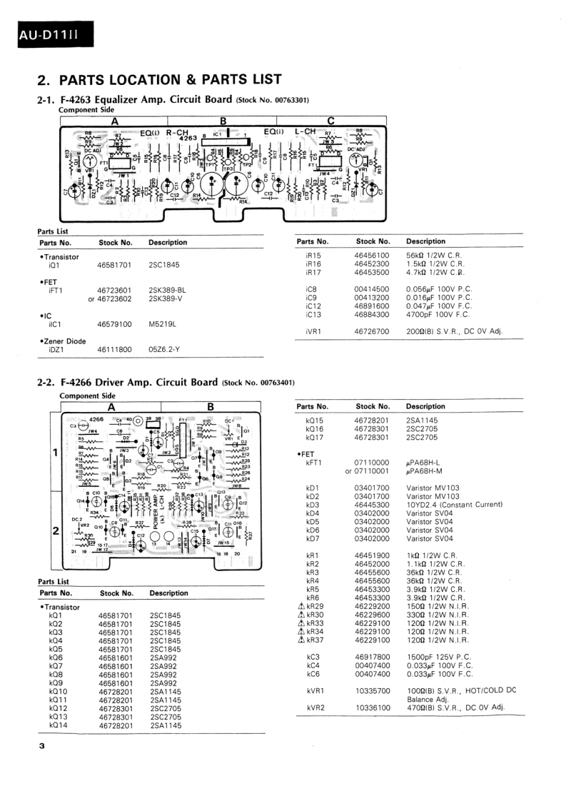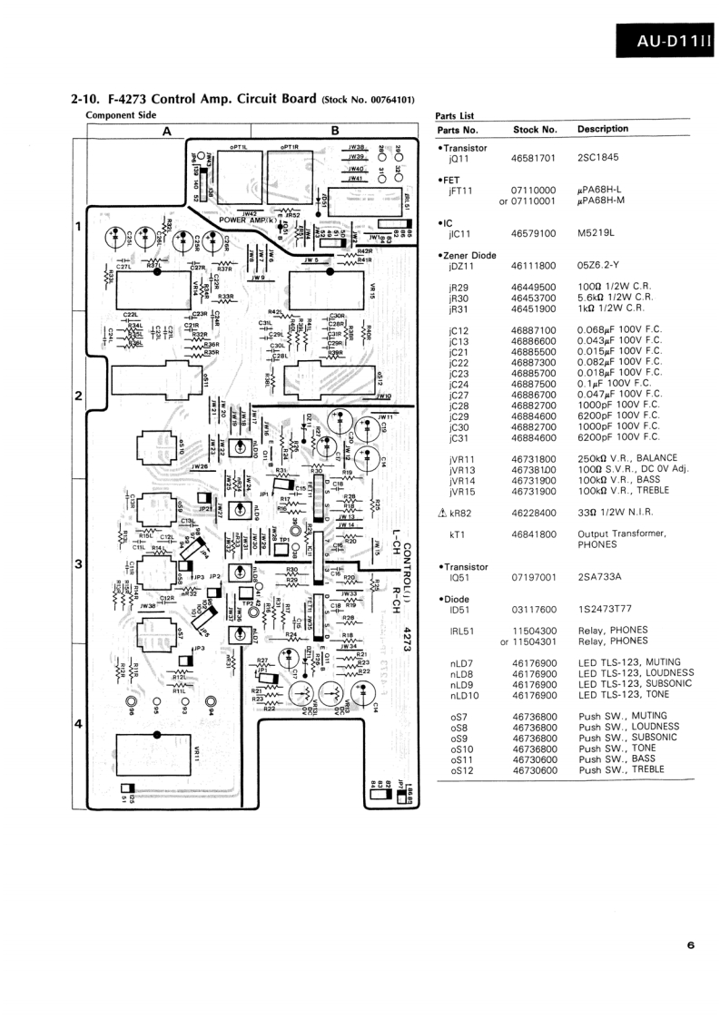 AU-D11IlSERVICE MANUAL·SPECIFICATIONSPower outputMin.RMS,both channels driven,from 10to 20,000 Hz,withno more than 0.0028%total harmonic distortion.INTEGRATED AMPLIFIER130 watts per channel into 8 ohms.Load impedance.........8 ohmsTotal harmonic distortionSANSUI AU-D11I...less than 0.0028%at or below rated min.RMS poweroutputIntermodulation distortion(60 Hz:7 kHz=4:1 SMPTE method)..........less than 0.0028%at ratedpower outputFrequency response (at 1 watt)Overall (from AUX).....DC to 300,000 Hz,+0 dB-3.0dBRIAA curve deviation (DISC-MM,20 Hz to 20 kHz).+0.2dB,-0.2dBInput sensitivity and impedance(at 1 kHz)DISC-MC-HIGH........250 V/40 ohmsDISC-MC-LOW............70 uV/3.2 ohms(Max.input capability (LOW):25 mV at 1 kHz,lessthan 0.01%total harmonic distortion)DISC-MM.......2.5 mV/47 kilohms(Max.input capability:200 mV at 1 kHz,less than0.01%total harmonic distortion)DISC-DA......…150mV/47 kilohmsAUX,TUNER,TAPE PLAY-1,2..150 mV/47 kilohmsOutput level (1,000 Hz)CAUTIONTAPE REC-1,2............150 mV into 47 kilohms1.Parts identified by the symbol on the schematicSignal to noise ratio(short-circuit,A-network)DISC-MC.diagram and the parts list are critical for safety.80dBDISC-MM..90 dBUse only replacement parts that have criticalAUX,TUNER,TAPE PLAY-1,2characteristics recommended by the manufacturer..110dBControls and Filter2.Make leakage-current or resistance measurementsBAS5±10dBat50Hzto determine that exposed parts are acceptably in-Tone selector..125Hz,250HzTREBLE...sulated from the supply circuit before returning the.±10dBat10kHzTone selector........3 kHz,6 kHzappliance to the customer.SUBSONIC-3 dB at 16 Hz (6 dB/oct)MUTING-20dBLOUDNESS+8 dB at 50 Hz(VOLUME:-30 dB+6 dB at 10kHzposition)Power requirementsPower voltage...120/220/240V(50/60Hz)For U.S.A.Canada.120V(60HzPower consumption....470 watts 560 VA Rated700 watts MaximumDimensions..........466mm(18-3/8)W161mm(6-3/8)H431mm(17)DWeight.17 kg (37.4 Ibs)net19 kg (41.8 Ibs)packedDfiic to chnge h ice ormSansuiSANSUI ELECTRIC CO.,LTD.