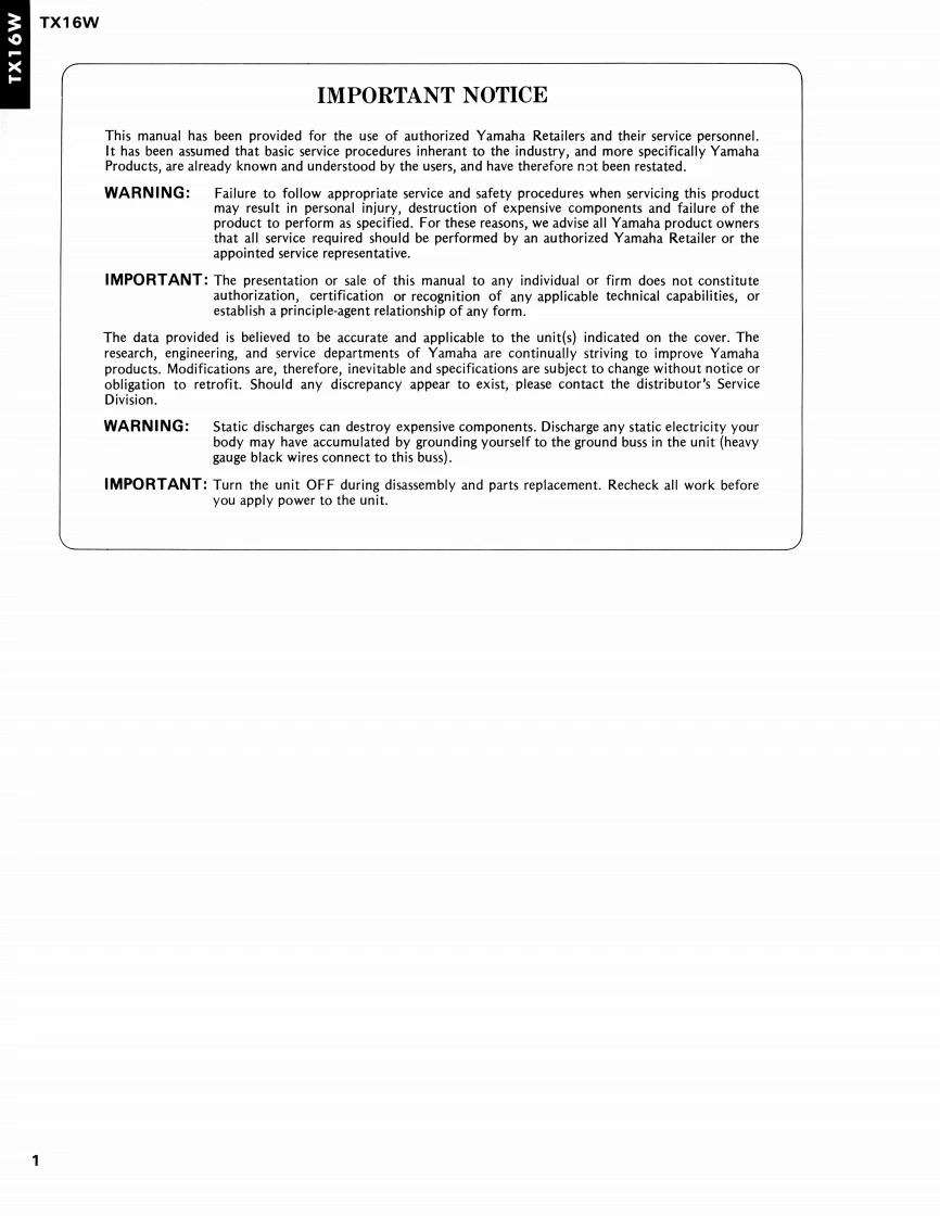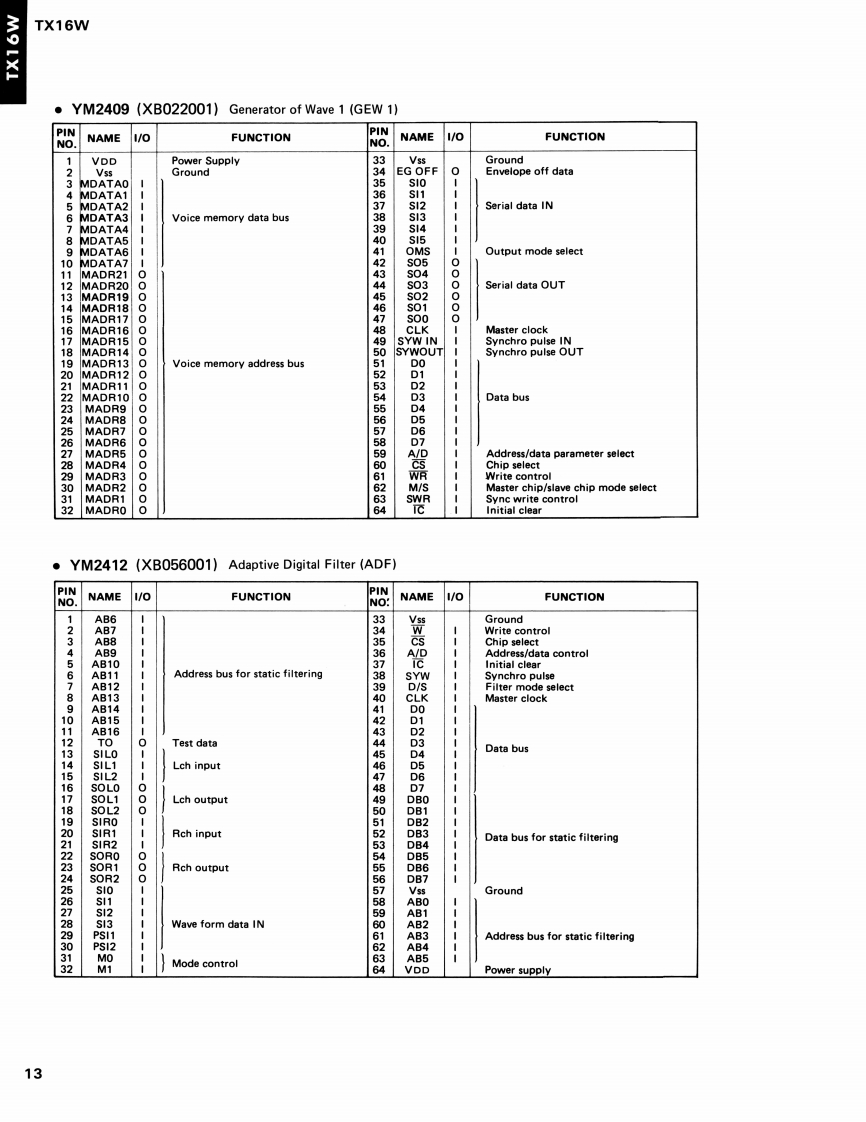 M9LXIDIGITAL WAVE FILTERING SAMPLERTXI6WSERVICE MANUALYAMAHA■CONTENTS(目次)SPECIFICATIONS(絕合仕樣)…CIRCUIT BOARD LAYOUT(ユ二yk亻了ヴ卜)…23PANEL LAYOUT(/バ礻儿亻了ヴ卜)…4DRM CIRCUIT BOARD DIAGRAM(DRM>-卜回路☒)6BLOCK DIAGRAM(ブ口y夕夕亻了夕ラ)…LS引DATA TABLE(LSI端子梭能表)……12IC BLOCK DIAGRAM(ICブ口y夕☒)…5CIRCUIT BOARDS(之一卜基板☒)…20DISASSEMBLY PROCEDURE(分解手順)·34MIDI IMPLEMENTATION CHART....................38PARTS LISTYAMAHA CORP.006771HAMAMATSU.JAPAN2.65K-143 Printed in Japan '87.12