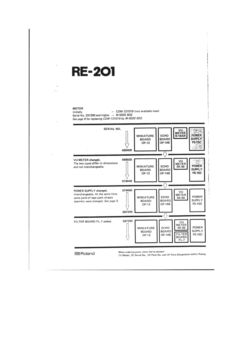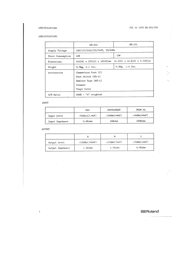 JUL301978RE-201/101ECHO CHAMBERRE-2o1/1O1SERVICE NOTESCONTENTSSPECIFICATI0Ns(E-201/101).,,·RE-2013BLOCK DIAGRAM......................................................................MINIATURE BOARD OP-13 ECHO BOARD OP-14B /FILTER BOARD PL-7.......................30P-16/0P-14B/L-7/CIRCUIT DLAGRAM..:···POWER SUPPLY PS-15D(SERIAL N0.576450A0H肛C)·PUWER SUPPLY BS-15D CIRCUIT DIAGAM ..................................................6P0wSP2LYS-15C(53IALN0.PT0576449)·7POWER SUPPLY PS-15C CIRCUIT DIACUM ................................................E-101PCB CHANGBS.....................................................................9BLoCK DIAGM .......................................................................9MINIATUHE BOARD OP-16/ECHO BOARD OP-17B FILTER BOARD PL-7 CIRCUIT DIAGRAM ....10RE-201/101以PLACEMENT11TAPC PACK CHASSIS ASSEMBLY .........................................................12ADJUSTMENT AND CHECKING1.MCHANICAL ADJUSTMNT ............................................................132.ELECTRICAL ADJUSTMENT…15PARTS .............................19PARTS LIT.21SECOND EDITION July 30,1978All of the information contained inthe first edition and the supplementis collected in this second edition.Rolandonhn8et8股g83